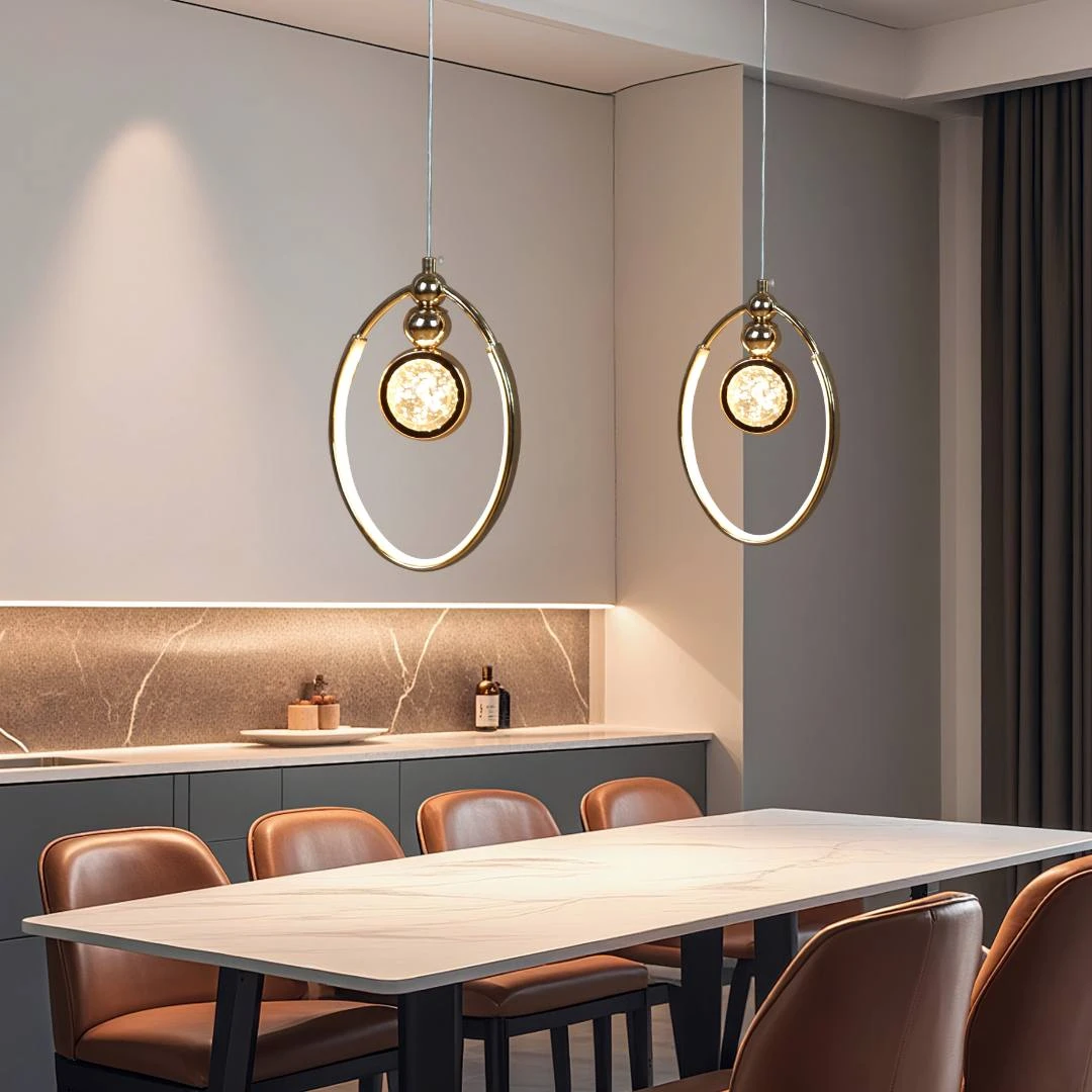 A modern, minimalist design gives the room visual warmth and an elegant look. This gold pendant lamp with a modern touch balances beauty and functionality, featuring selectable LED lighting in three color temperatures to provide the perfect illumination for every moment.