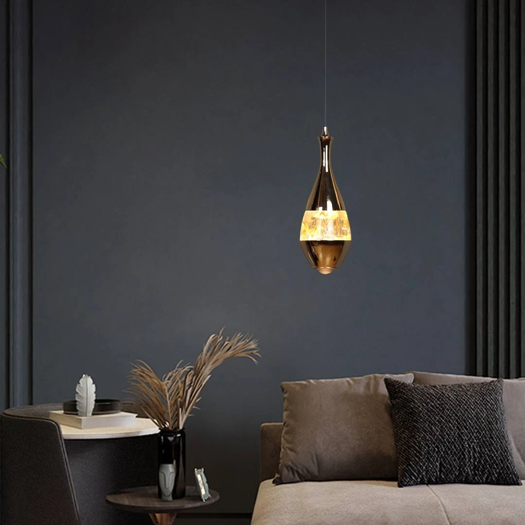 This modern pendant light with a gold finish reflects contemporary elegance and complements a variety of décor styles. It provides 5W warm (yellow) LED lighting, creating a comfortable and inviting atmosphere in interior spaces without being overly bright.
