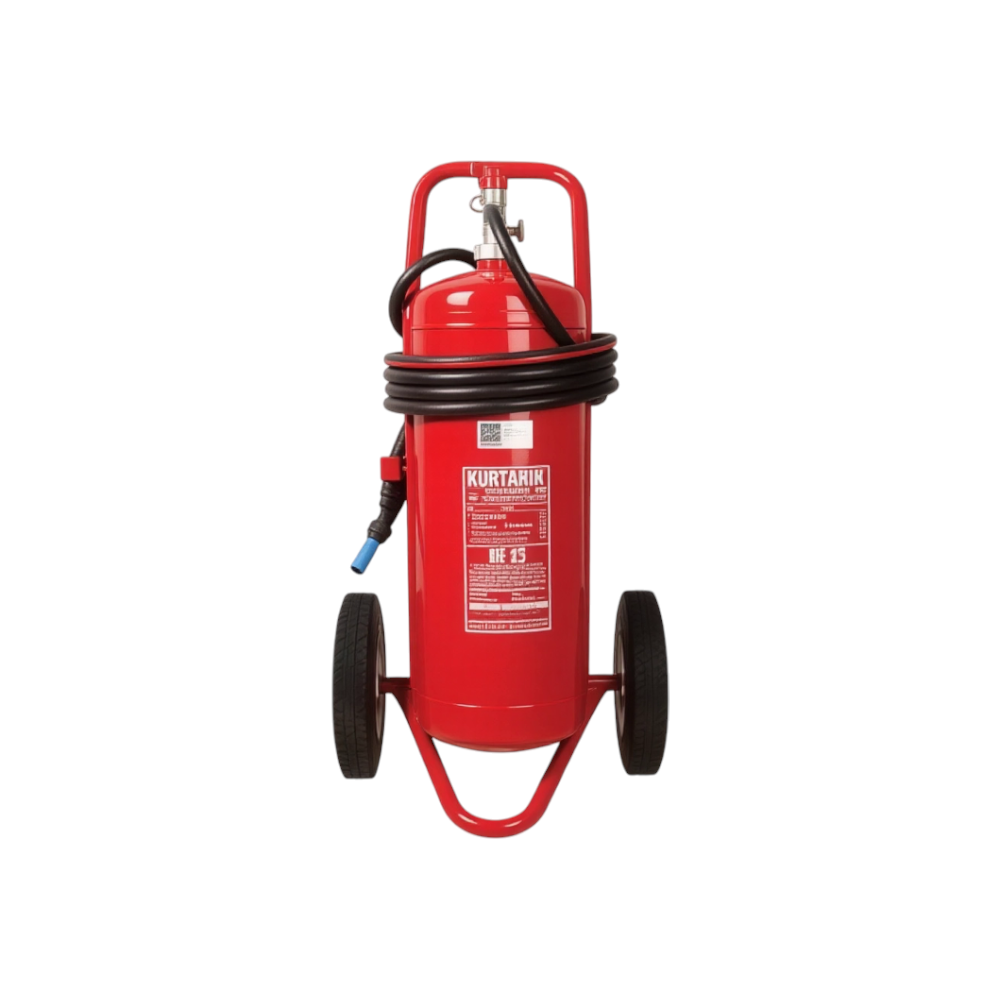 The 50-liter portable foam fire extinguisher is designed to provide a powerful and reliable firefighting solution in large industrial and commercial environments requiring a rapid response. It combines high coverage, easy transport via wheels, and an effective foam system for extinguishing flammable liquid and solid fires.