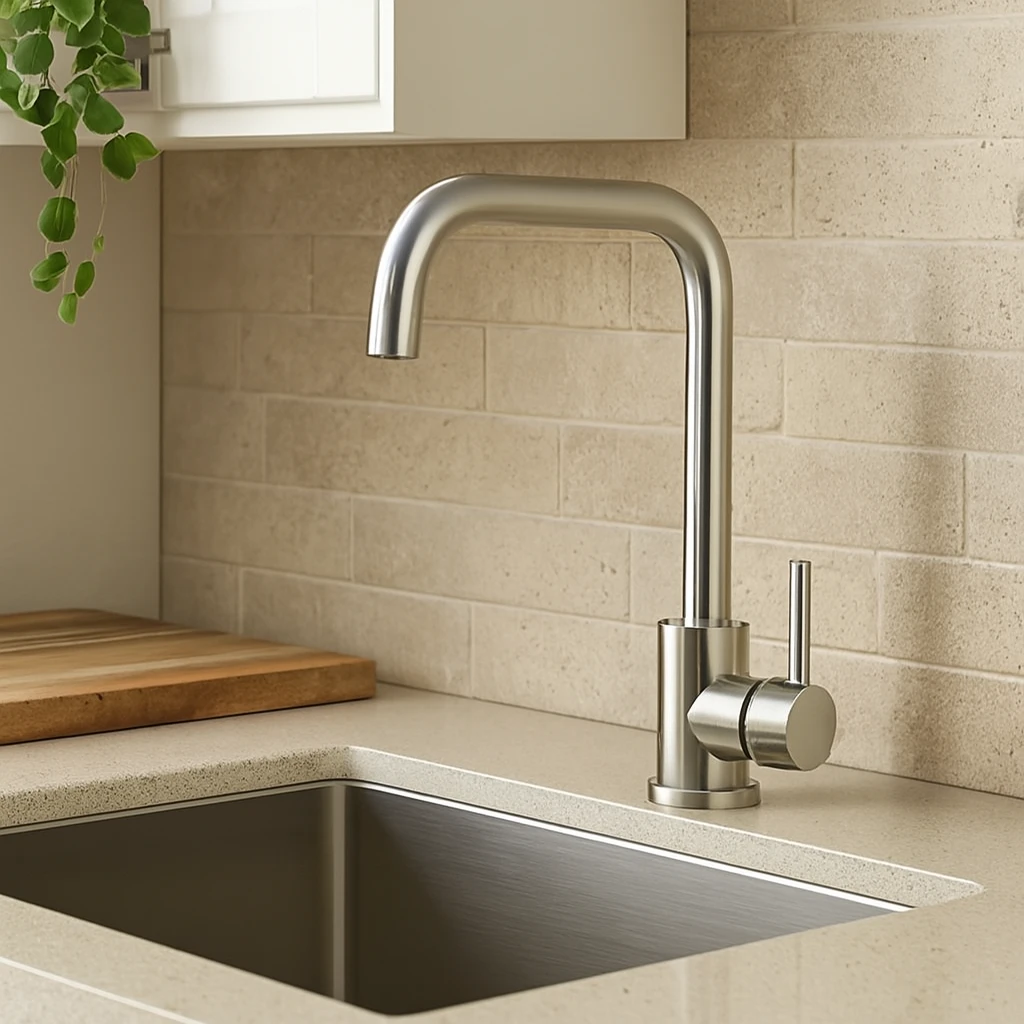 This sleek, straight-design sink mixer tap is made of chrome-plated stainless steel and features flexible fittings for easy installation and connection. Combining a modern look with reliable everyday functionality, it's suitable for residential kitchens, whether small or large.