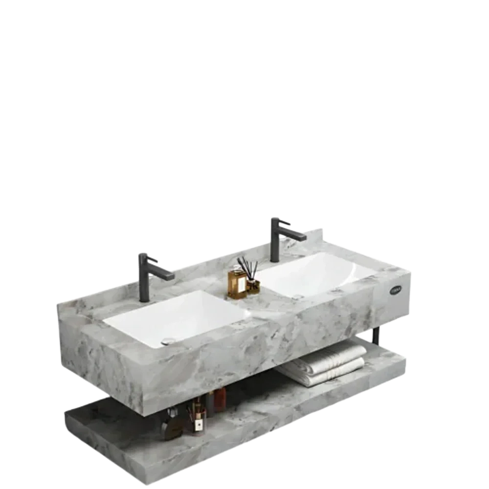 - النوع: مغسلة مزدوجة من الرخام الصناعي (الحجر)