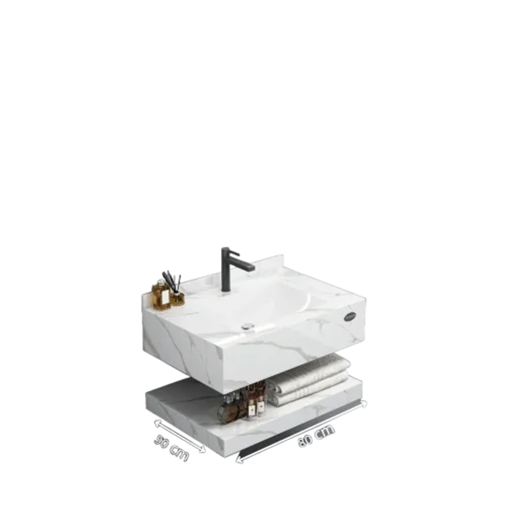 • وحدة المغسلة بسطح الرخام الصناعي وحوض السيراميك