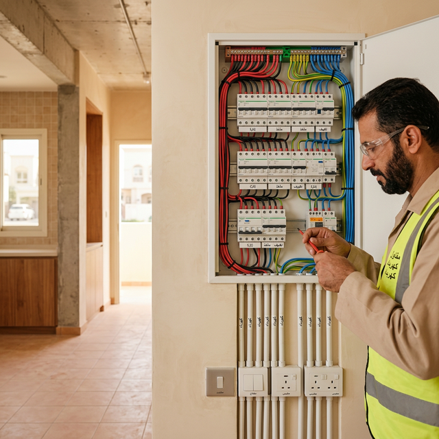نصيحة مهمة: اختر لوحة توزيع بسعة أكبر من احتياجك الحالي لتستوعب أي إضافات مستقبلية. وتأكد من تركيب قاطع تيار تفاضلي (ELCB/RCCB) لحماية الأشخاص من الصعقات الكهربائية.