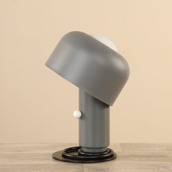 أباجورة أنيقة بلون رمادي مصنوعة من حديد متين، تجمع بين مظهر عصري وصلابة الخامة لتناسب غرف المعيشة، غرف النوم أو المكاتب.