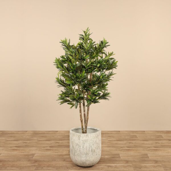 رمز للتغيير والسلام الداخلي، شجرة الدراسينا ريفليكسا الصناعية تضيف لمسة هادئة وطبيعية إلى أي مساحة داخلية. تتميز بأوراق مزدوجة اللون وجذع بملمس واقعي جداً، ما يمنحها مظهرًا يقنع الضيوف بأنها حقيقية. تأتي الشجرة جاهزة للاستخدام — فقط فكّ الأغصان وضعها بالشكل الذي تفضله ثم أضف أصيص الخرسانة لإكمال الإطلالة.