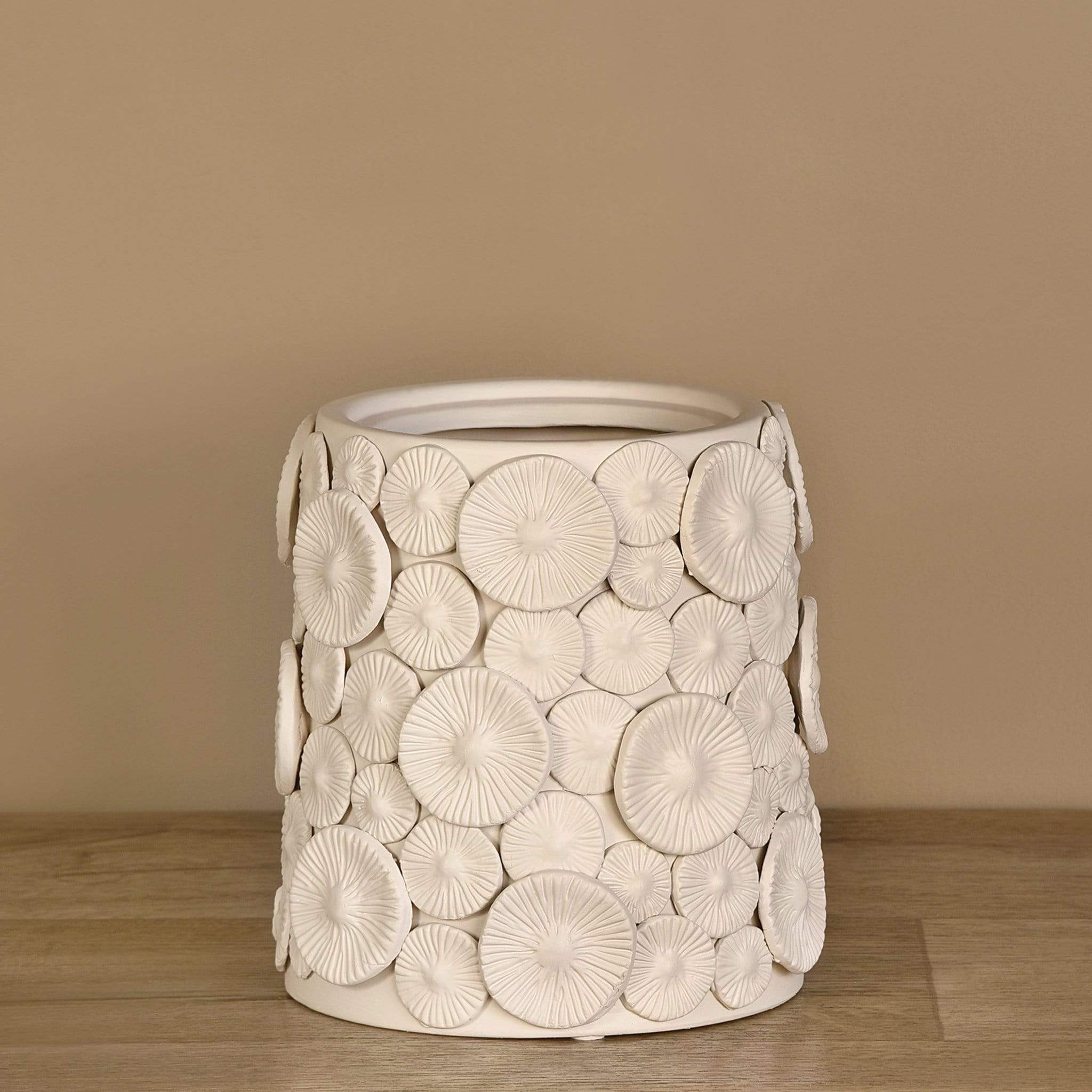 مزهرية خزفية بلون أبيض ناصع، بتصميم أنيق وبسيط ينسجم مع مختلف أنماط الديكور. مثالية لوضع الزهور الطازجة أو المجففة، وتضيف لمسة جمالية وهدوء للمساحات الداخلية مثل غرفة المعيشة، المطبخ أو المكتب.