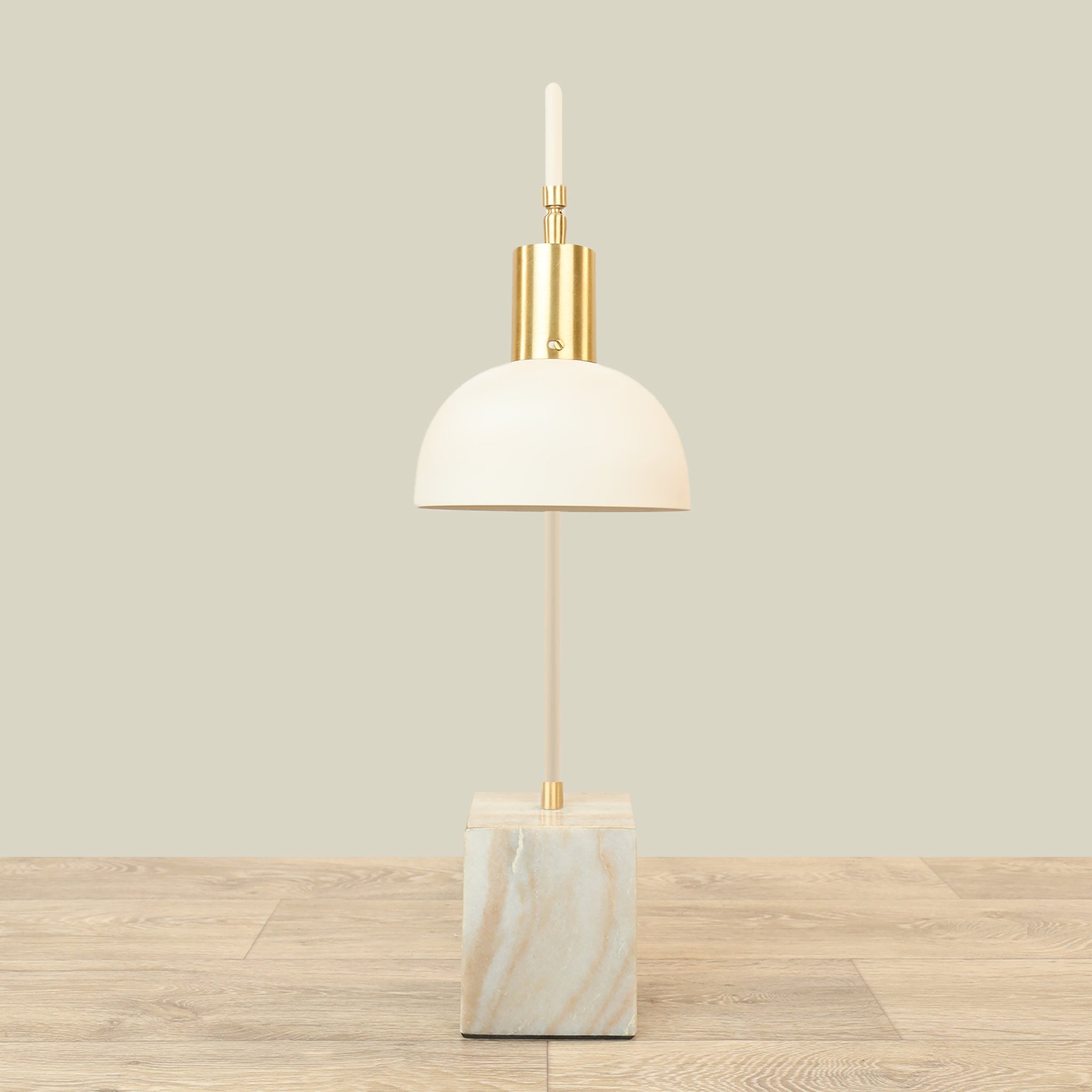 أضف لمسة دفء وأناقة إلى مساحتك مع هذا المصباح المعدني بلون بيج الدافئ — تصميم بسيط وعصري يضفي توهجًا لطيفًا مثاليًا للمكاتب، الطاولات الجانبية، وزوايا القراءة.