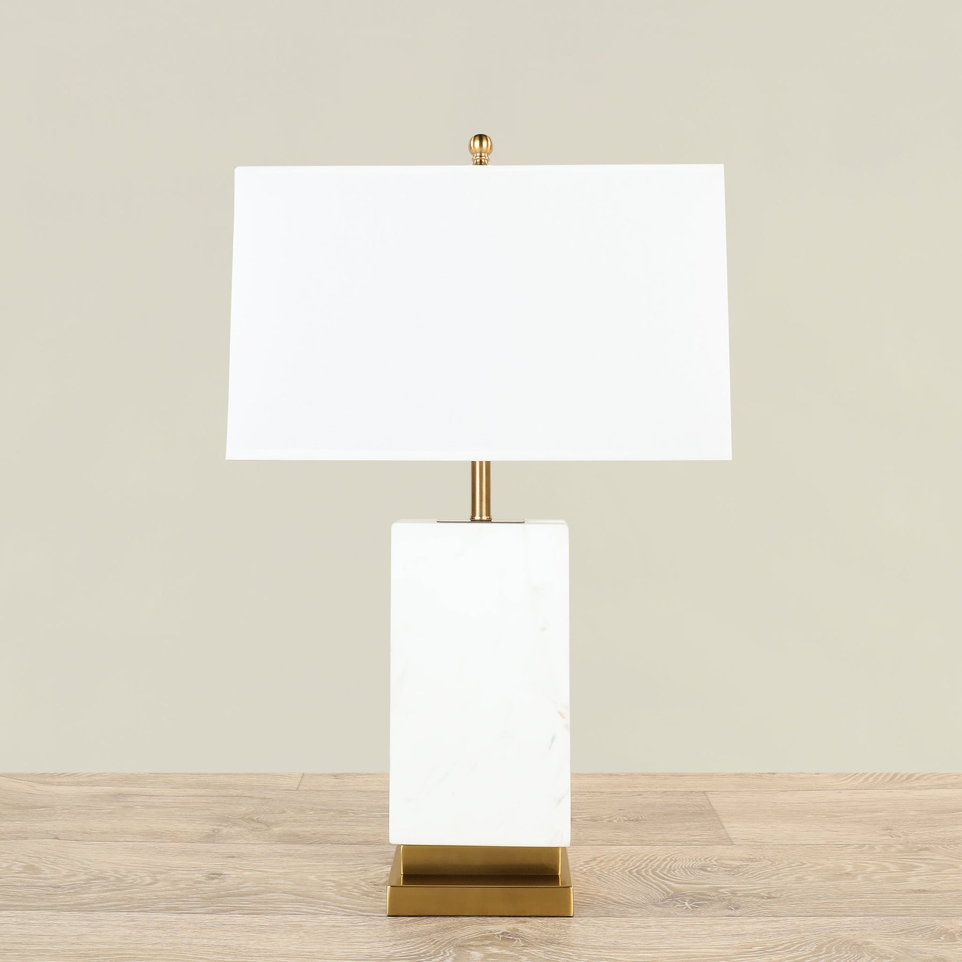 أباجورة أنيقة تجمع بين ملمس الرخام الفاخر ولمعان الزجاج، تصميم مناسب لإضفاء لمسة عصرية وكلاسيكية على غرفة المعيشة أو غرفة النوم أو المكتب.
