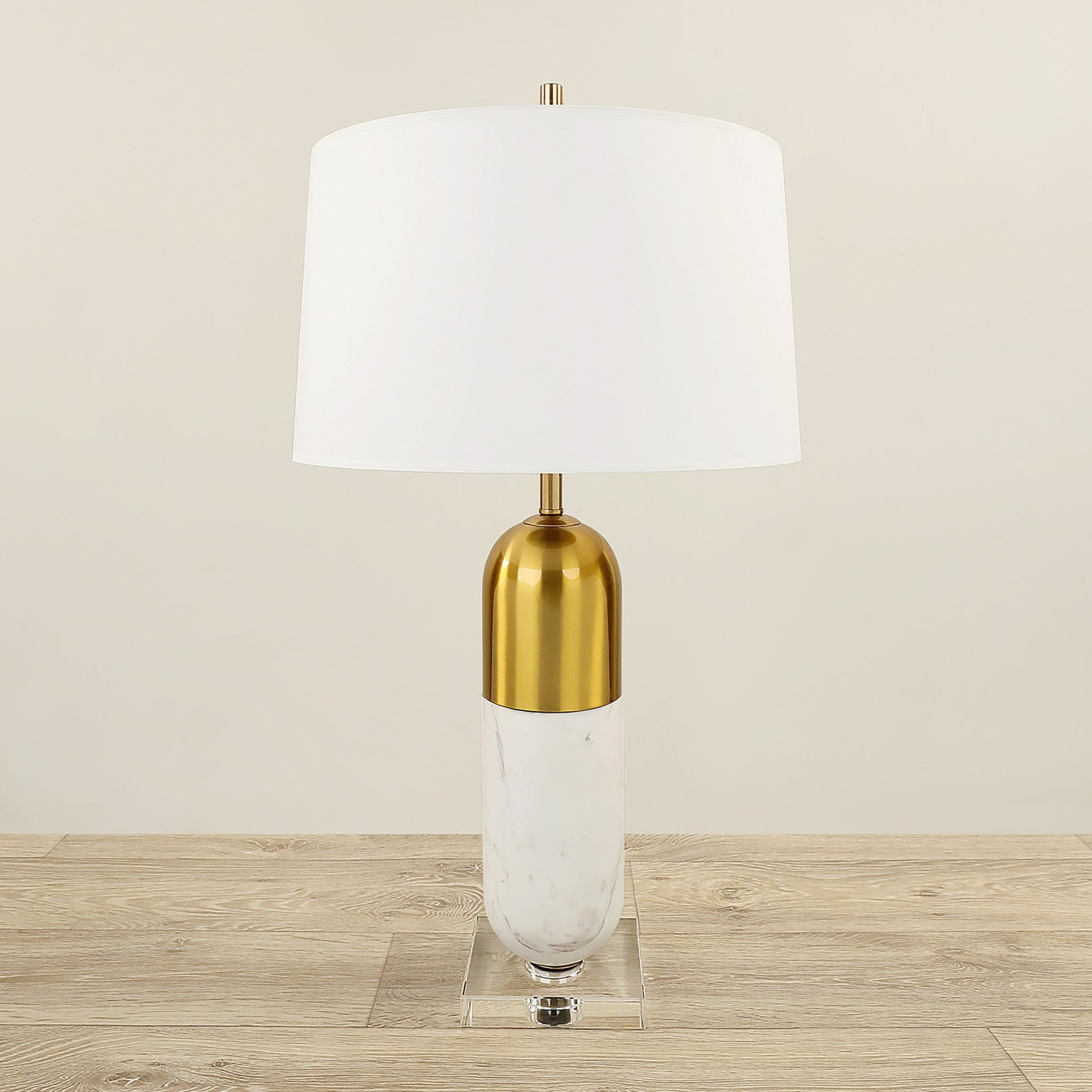 أباجورة أنيقة تجمع بين لمسة معدنية ناعمة وجمال الرخام الطبيعي لتضيف لمسة فخامة وعصرية إلى أي مساحة.