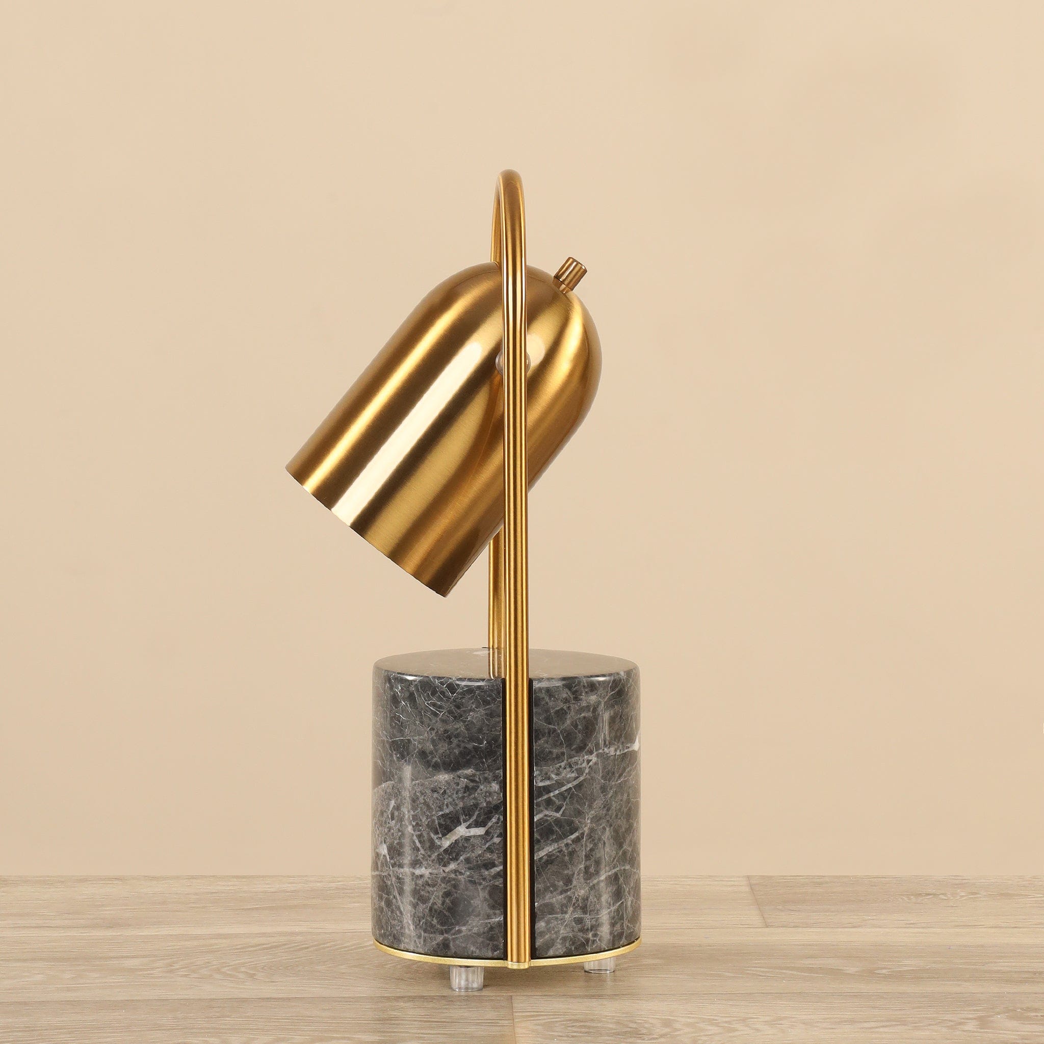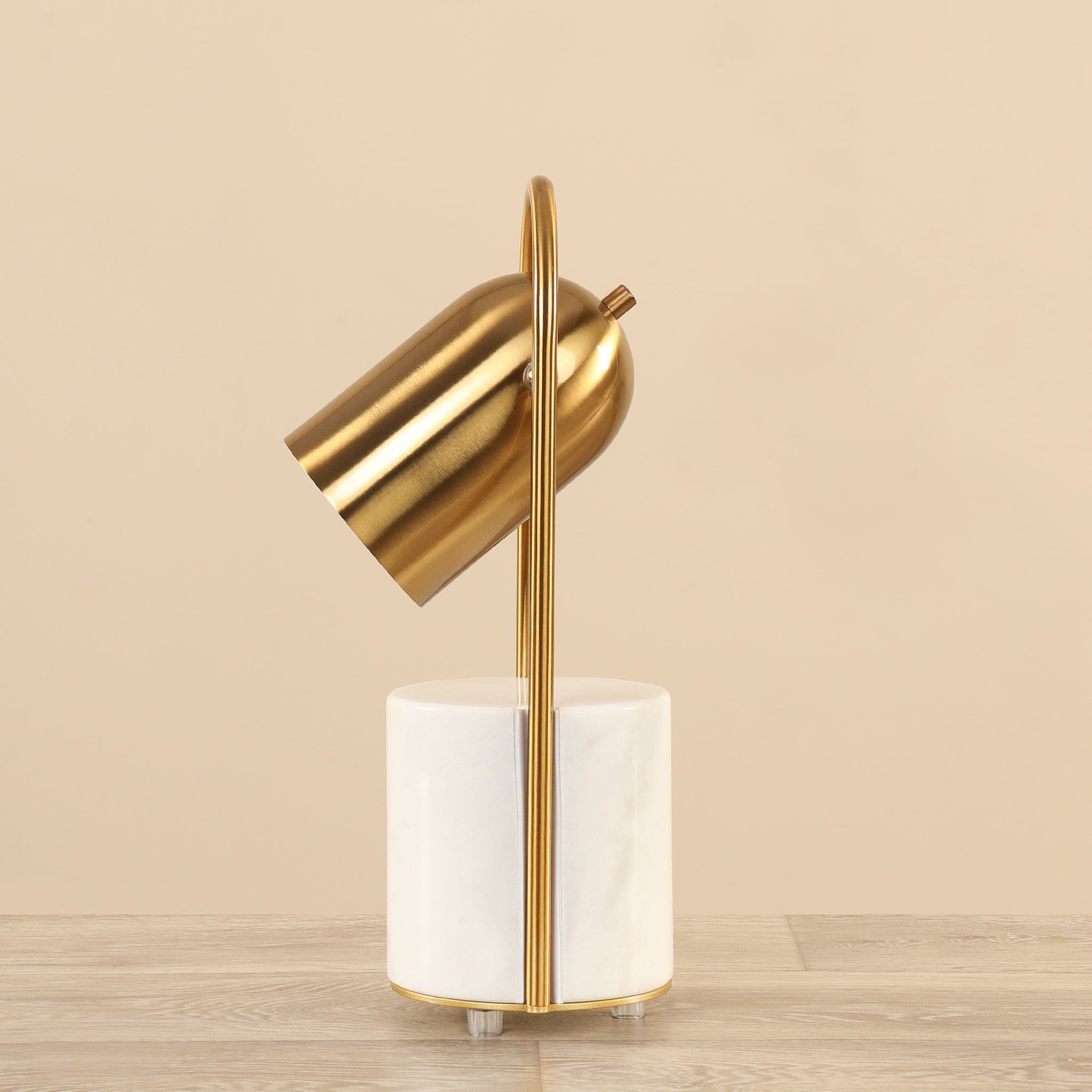 أباجورة أنيقة باللون الأبيض تجمع بين متانة الحديد وجمال الرخام لتضفي لمسة فنية ودافئة على أي مساحة داخلية.