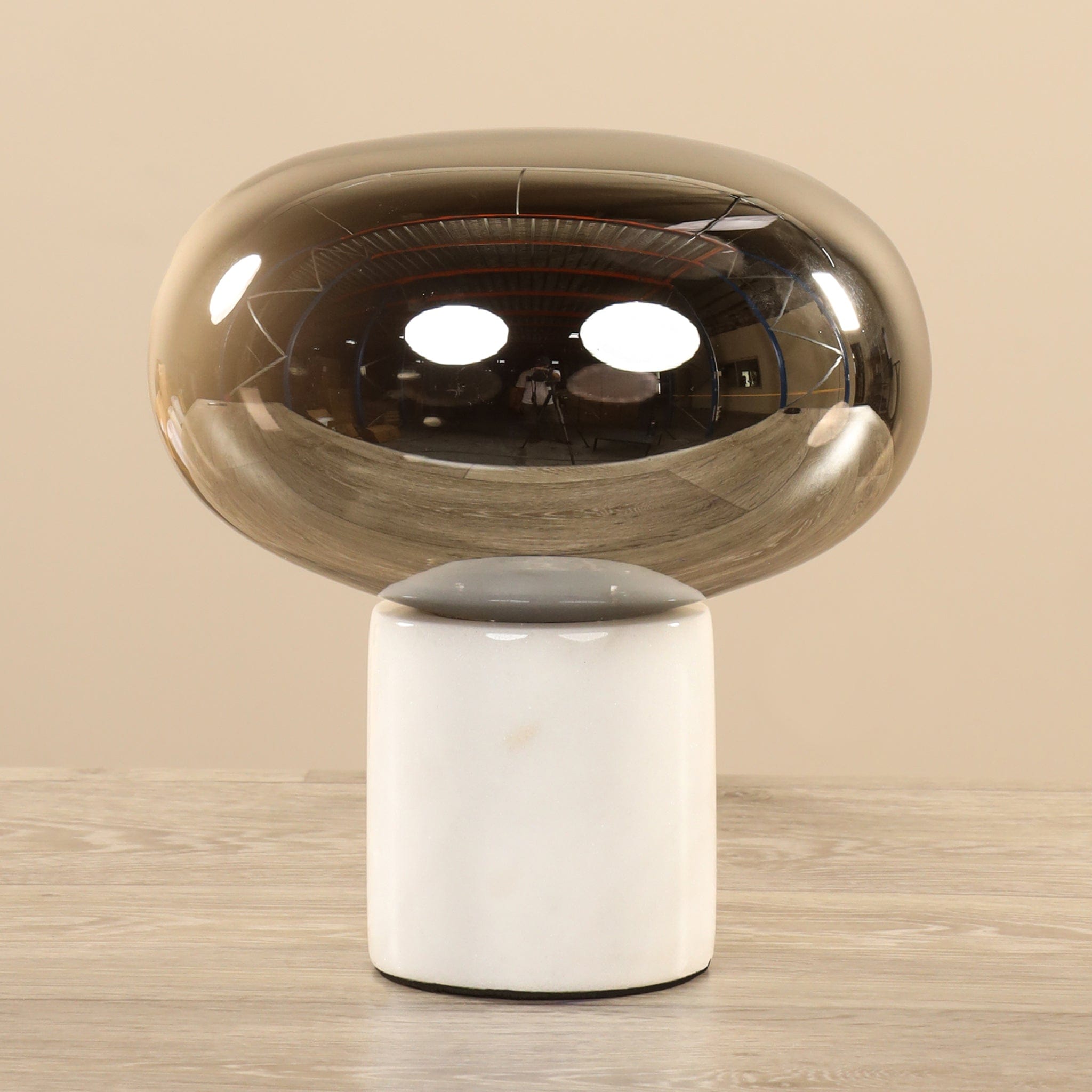 أباجورة أنيقة تجمع بين رونق الرخام الطبيعي ولمسة معدن عصرية، مناسبة لإضاءة غرف المعيشة أو غرفة النوم مع تصميم يضفي دفء ورقي على المساحة.