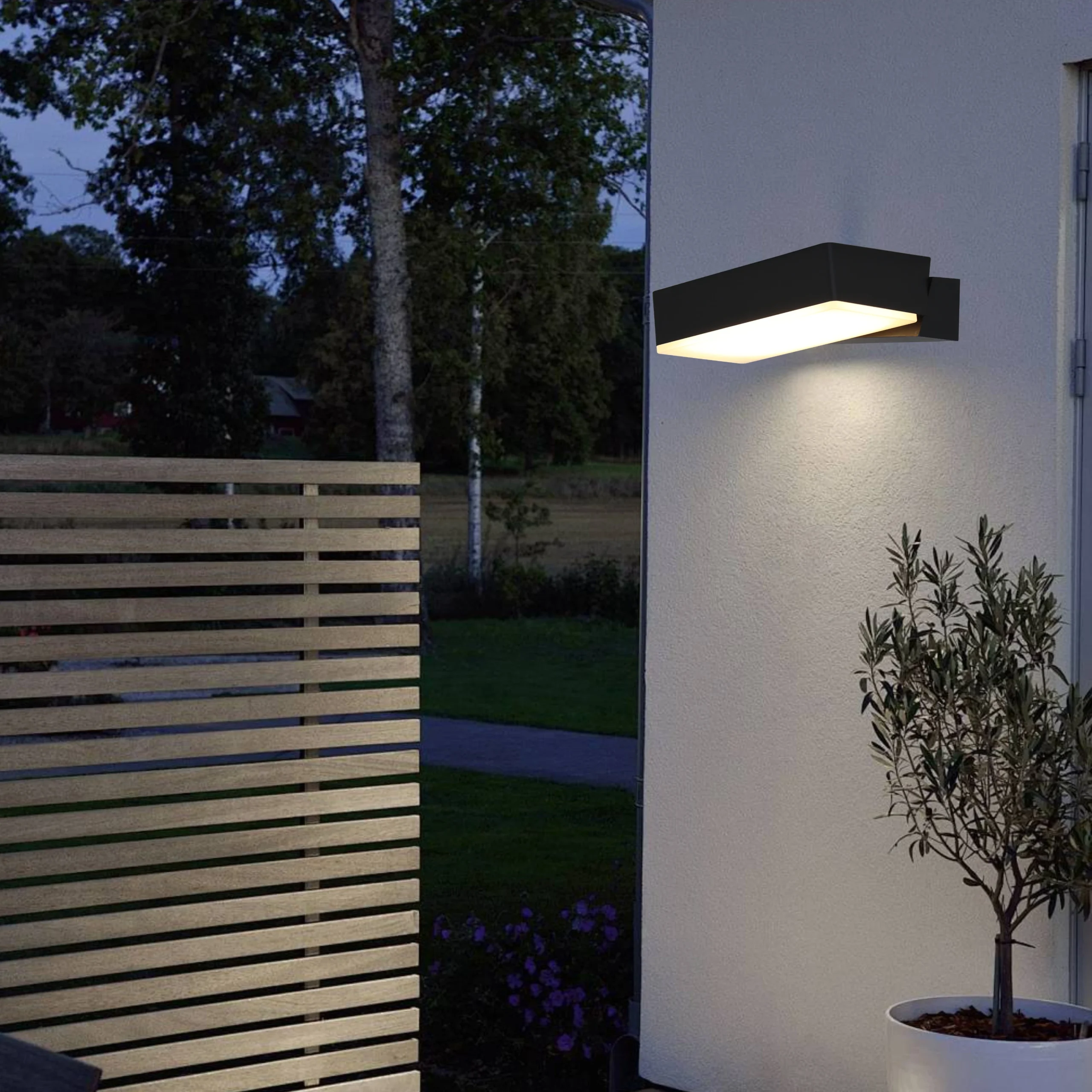 إضاءة جدارية خارجية عملية وأنيقة تضيف وضوحاً وأماناً لمساحاتك الخارجية مع تصميم مقاوم للعوامل الجوية.