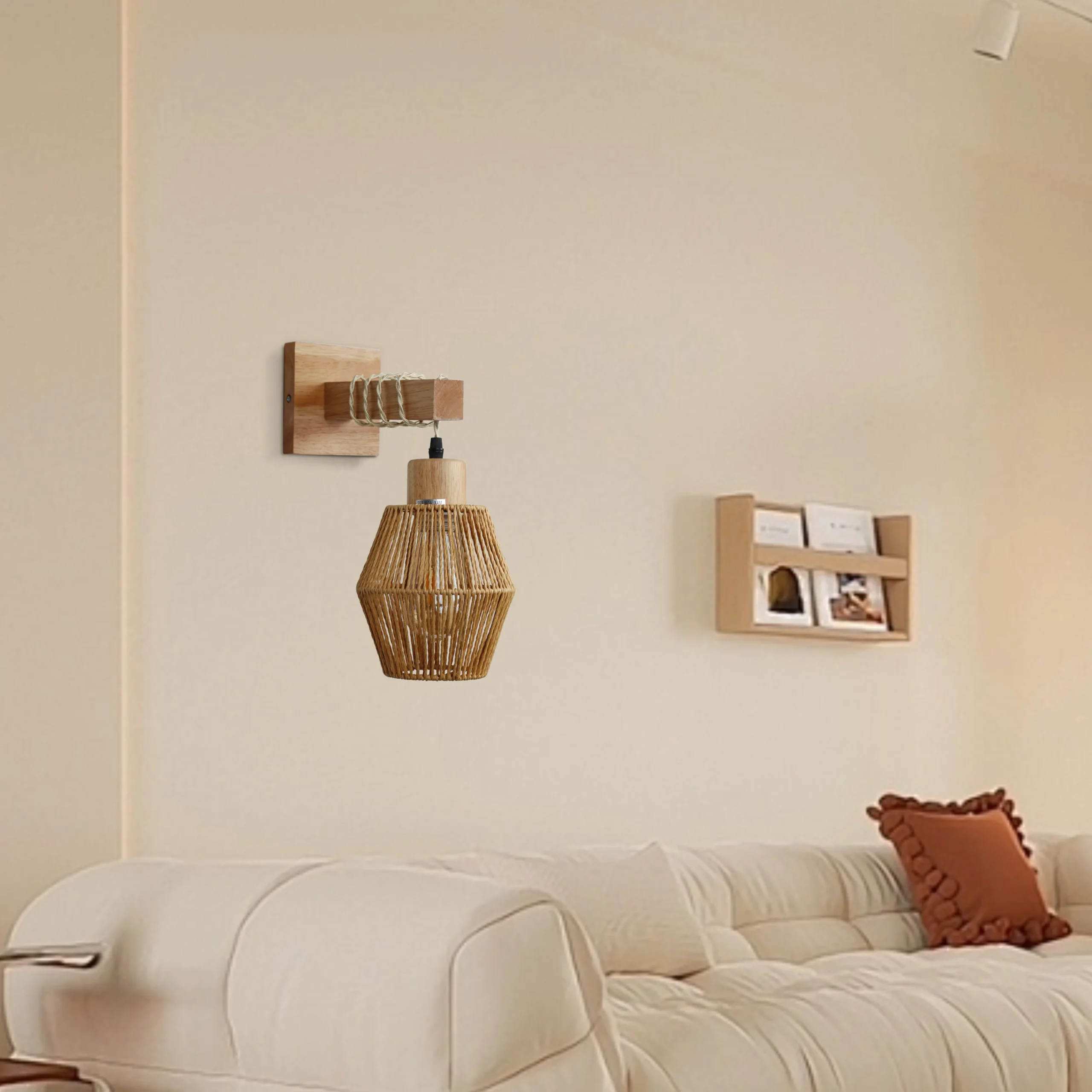إضاءة ابليك أنيقة تجمع بين الدفء الطبيعي لمادة الخشب ولمسة القش (الراتان) لتمنح جدارك شكلاً دافئاً وطابعاً ريفياً معاصرًا. تصميمها البسيط والمتين يجعلها خيارًا مثاليًا للإضاءة الجانبية في المنزل أو المكتب أو المقاهي.