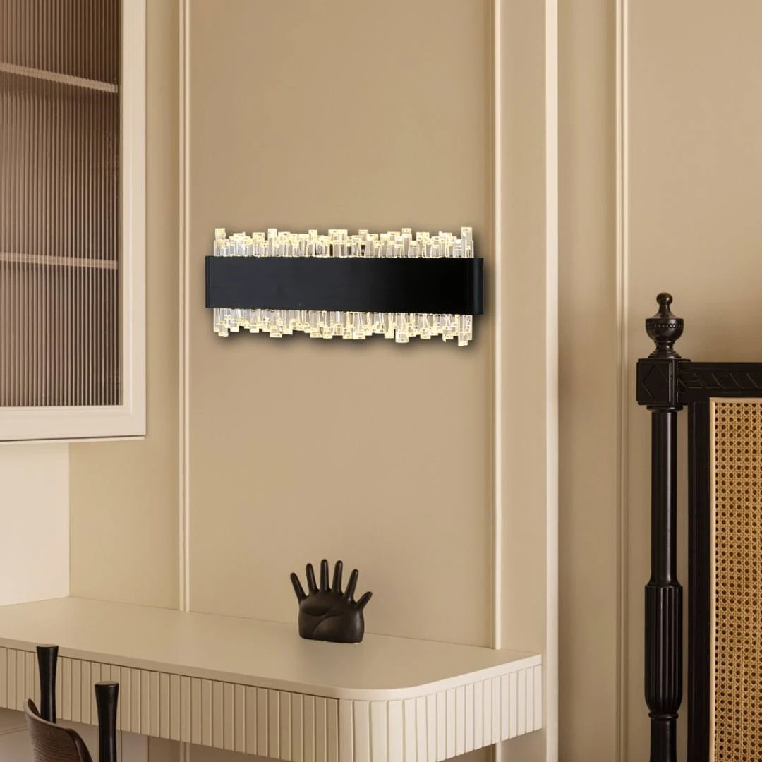 أبليك حائط بتصميم مودرن بلون أسود أنيق، مزوّد بثلاثة مصادر ضوء بقدرة 7 واط لكل منها. حل مثالي لإضاءة ديكورية وعملية في الصالات، الممرات، والمدخلات، مع استهلاك طاقة منخفض وتأثير بصري معاصر.
