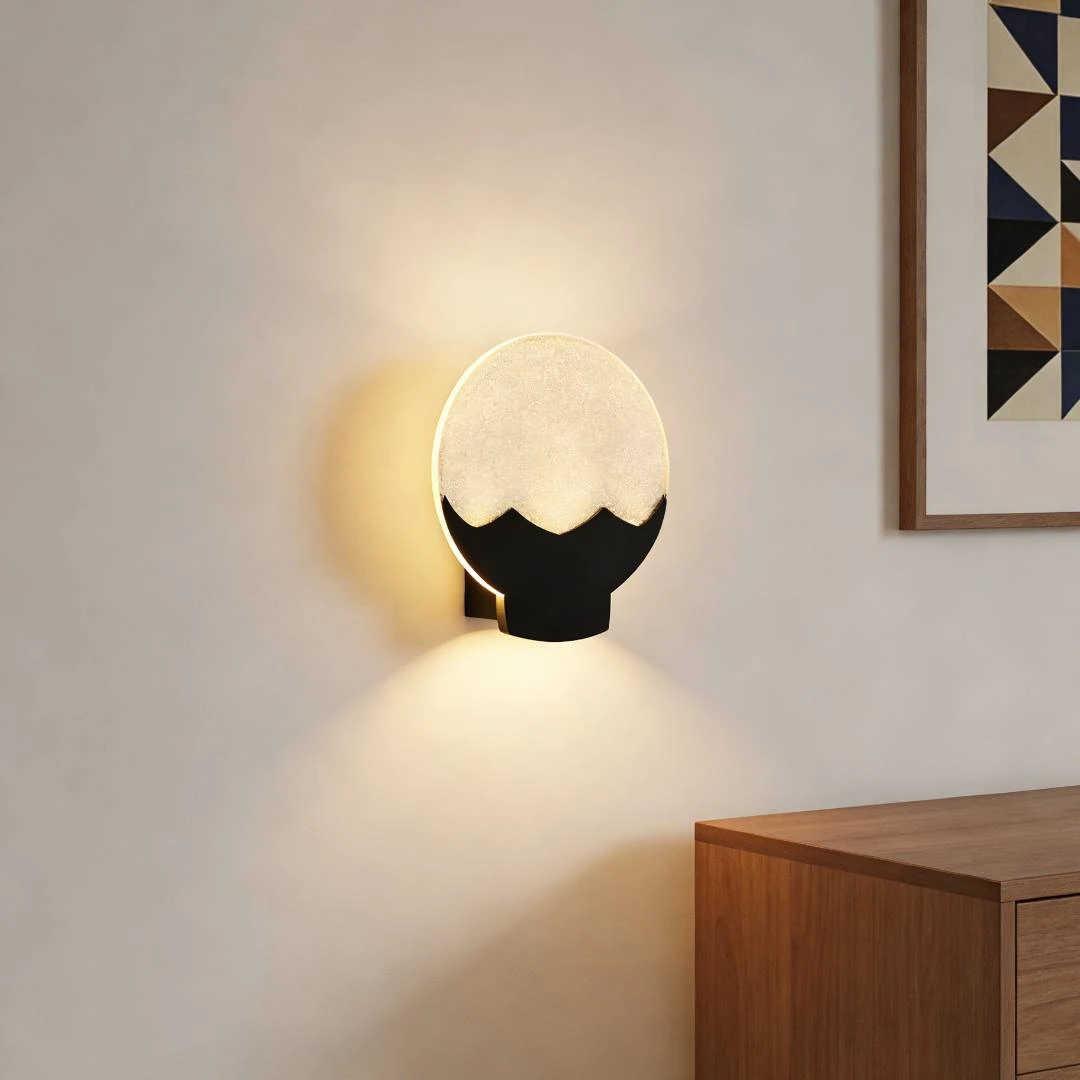 وحدة أبليك حائط بتصميم مودرن أنيق باللون الأسود، مثالية لإضاءة المساحات الداخلية مع مظهر عصري يضفي لمسة ديكور مميزة على الصالون، الممرات، غرفة النوم أو المداخل.