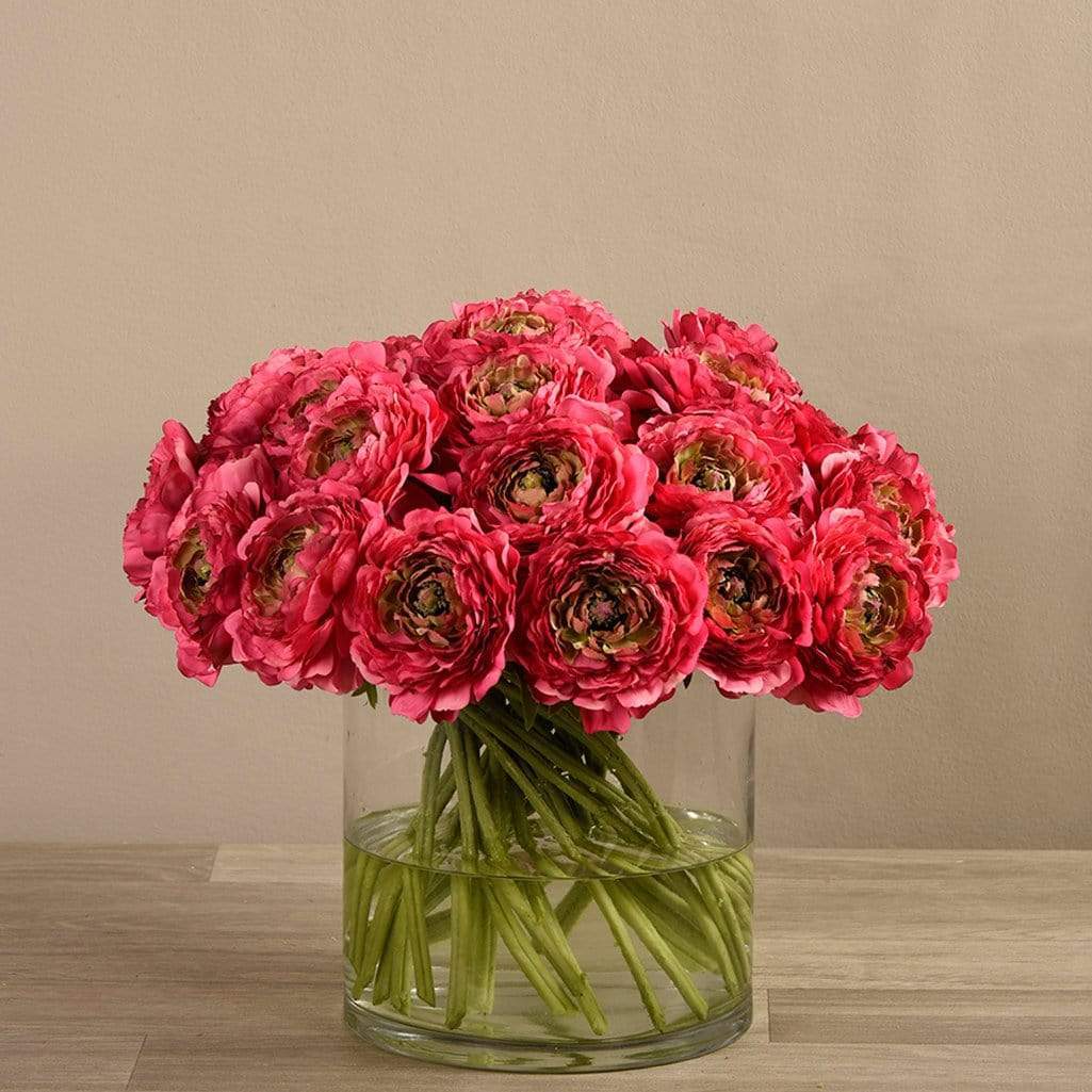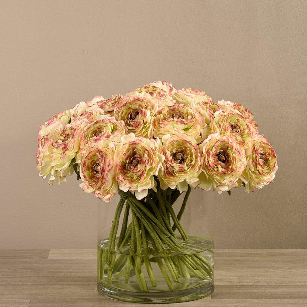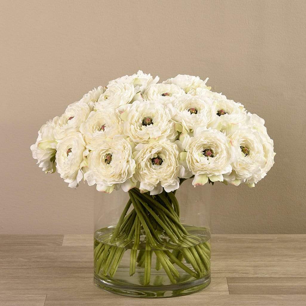 باقة أنيقة تجمع بين سحر الطبيعة ولمسة ديكورية راقية. تبدو أزهار الحوذان طبيعية للغاية — من بتلاتها الحريرية إلى سيقانها الخضراء الطويلة — فيما تضيف المزهريّة الزجاجية الدائرية شعورًا خالدًا وجميلاً لأي مكان.