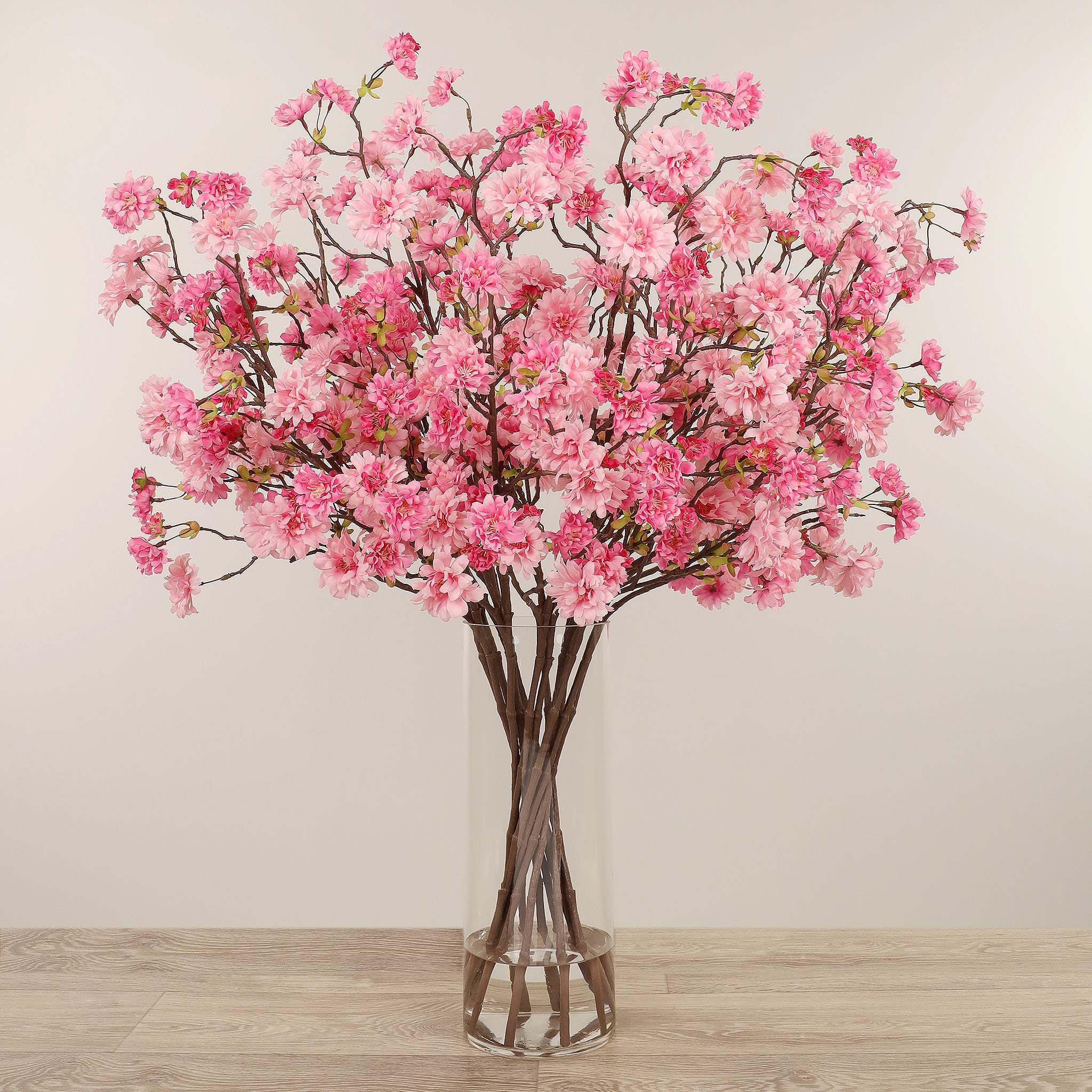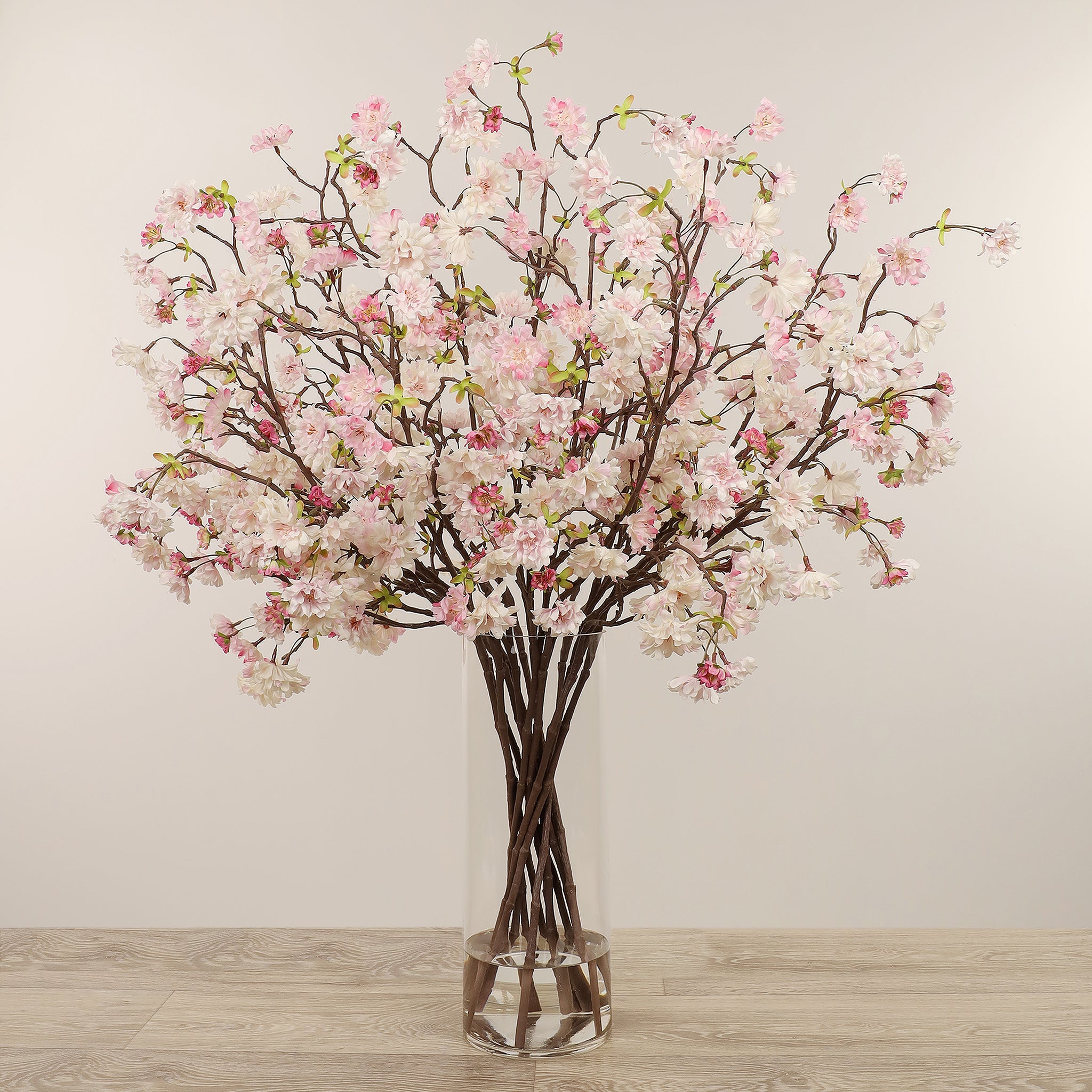 اجعل مساحتك تتفتح دائمًا بجمال ثابت وأنيق مع زهرة الكرز الاصطناعية في مزهرية زجاجية.