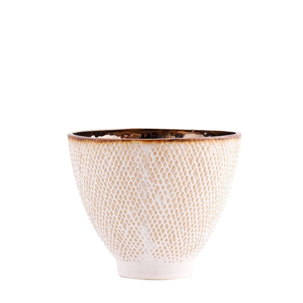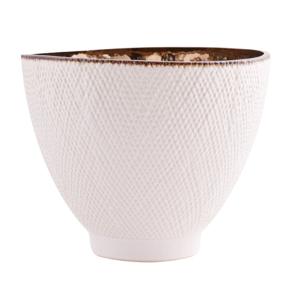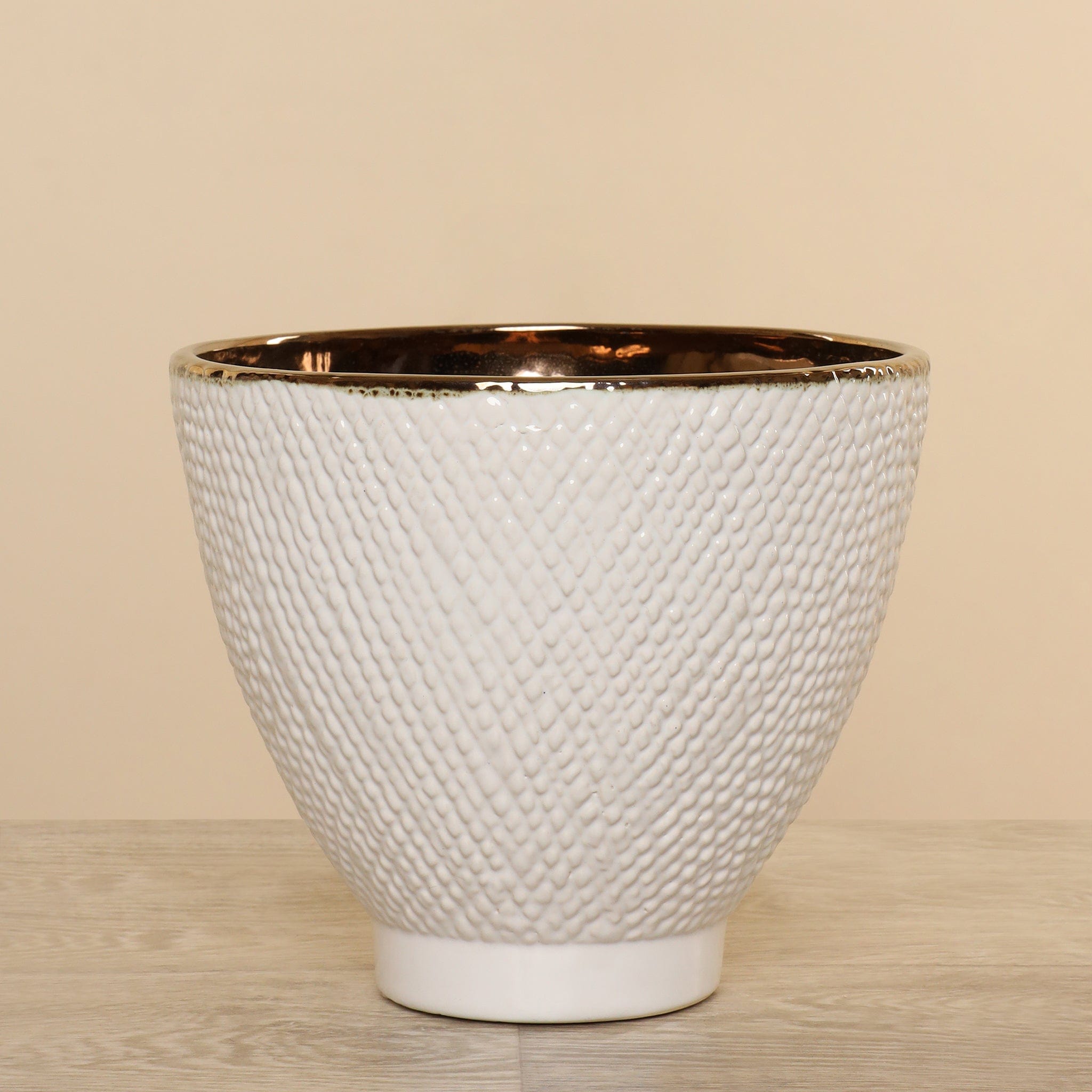 أصيص مصنوع من الخزف بلون أبيض نقي، مناسب لعرض النباتات المنزلية الصغيرة والمتوسطة والزهور. يتميز بمظهر حيادي يتماشى مع مختلف أنماط الديكور — من الكلاسيكي إلى العصري.