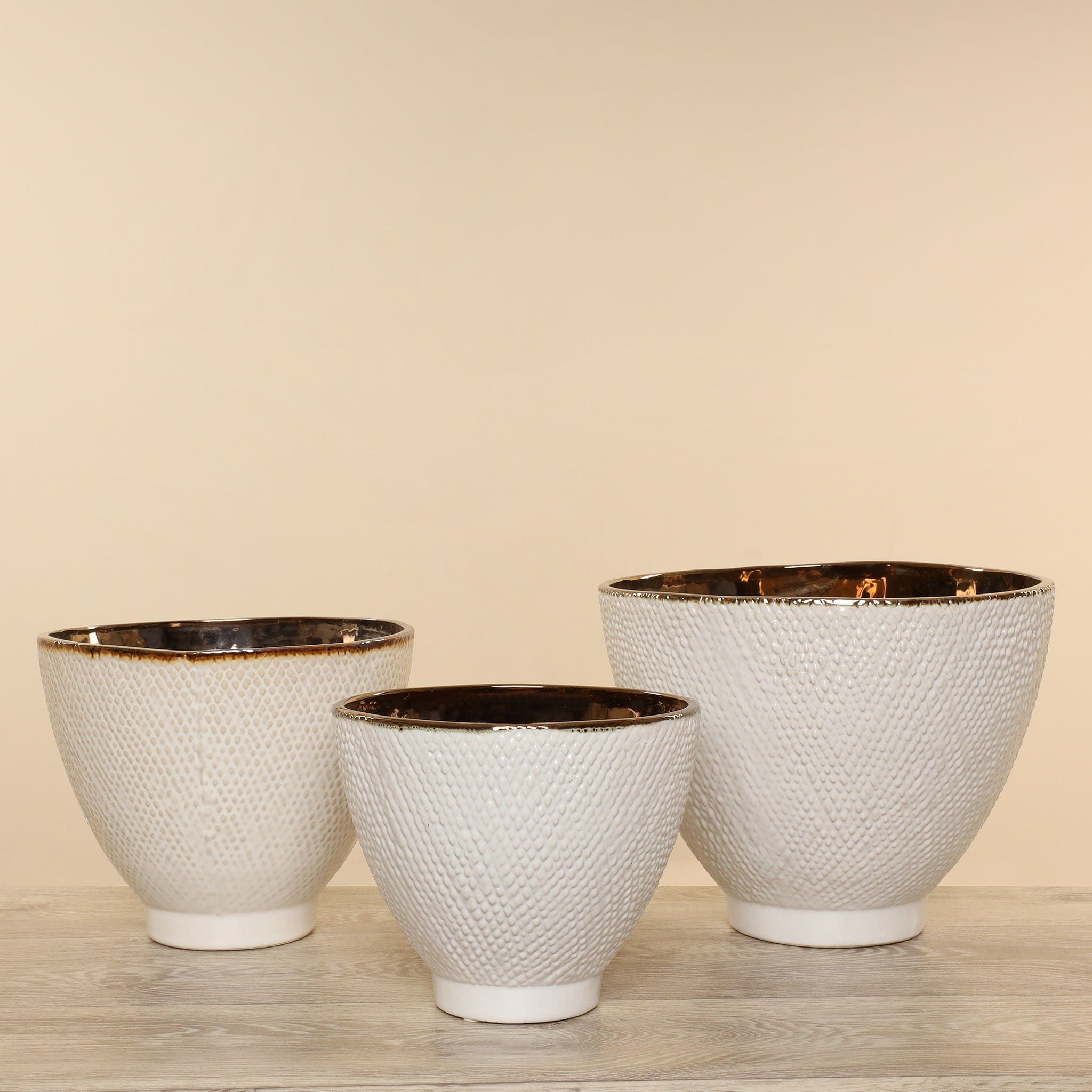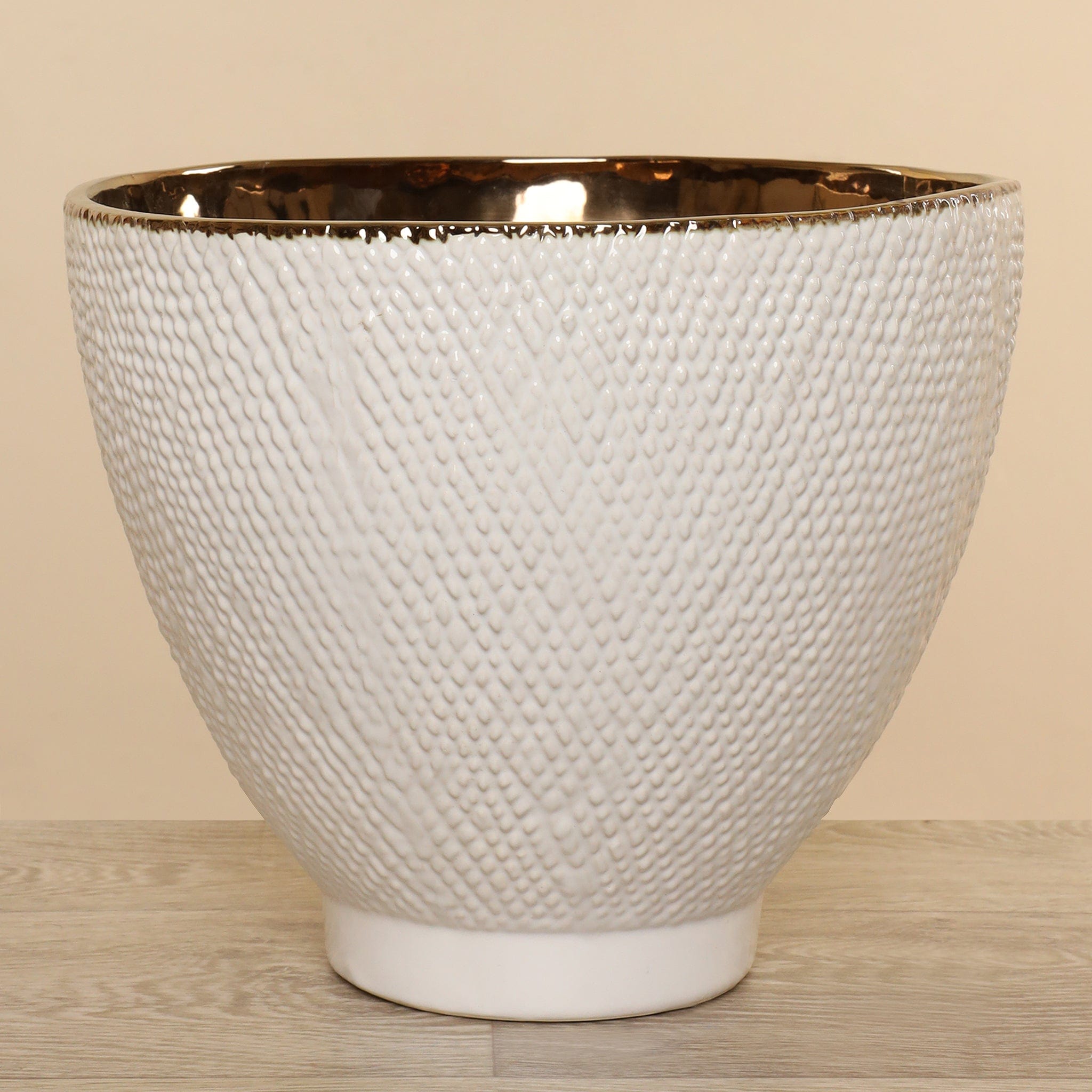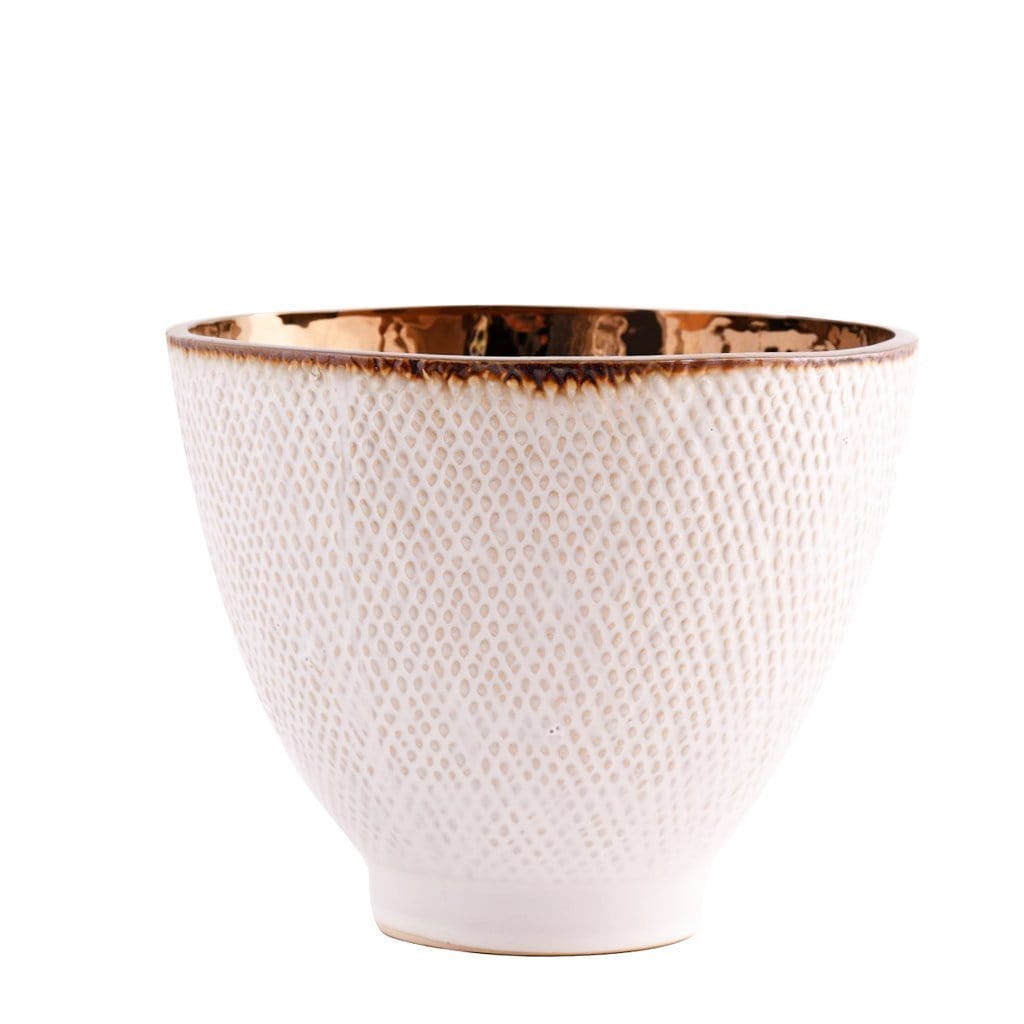 أصيص مصنوع من الخزف بلون أبيض نقي، مناسب لعرض النباتات المنزلية الصغيرة والمتوسطة والزهور. يتميز بمظهر حيادي يتماشى مع مختلف أنماط الديكور — من الكلاسيكي إلى العصري.