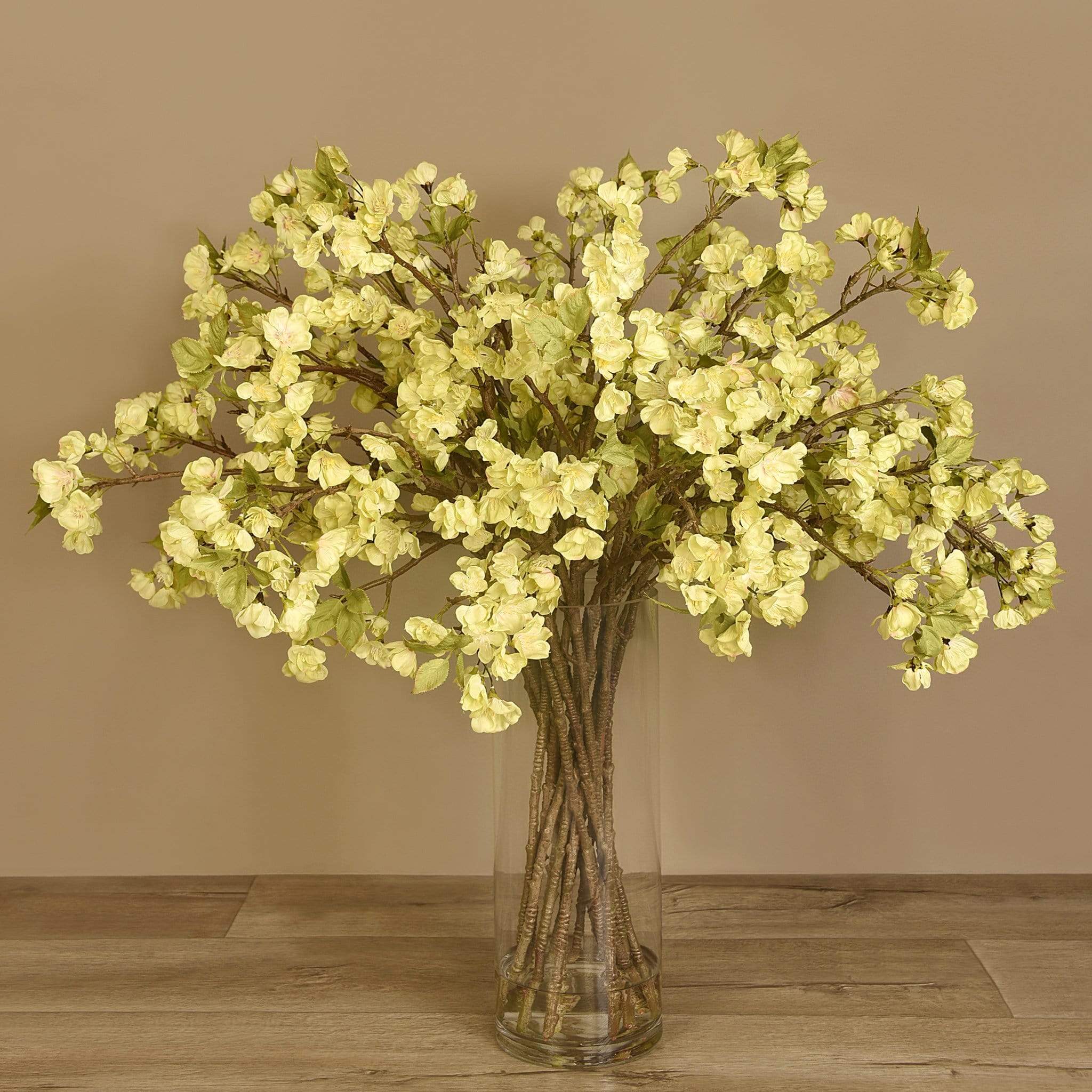 فروع زهر الأشجار الصناعية في مزهرية زجاجية