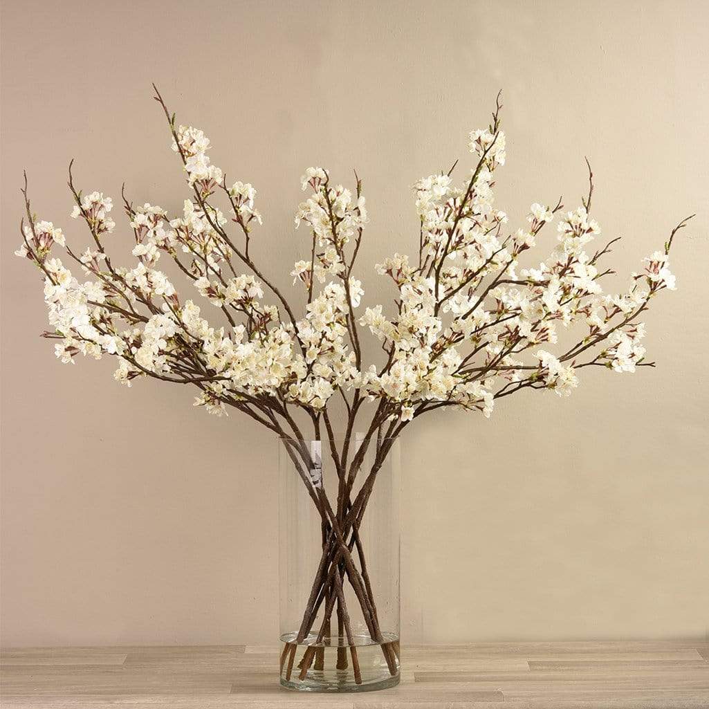 فروع زهر الأشجار الصناعية في مزهرية زجاجية