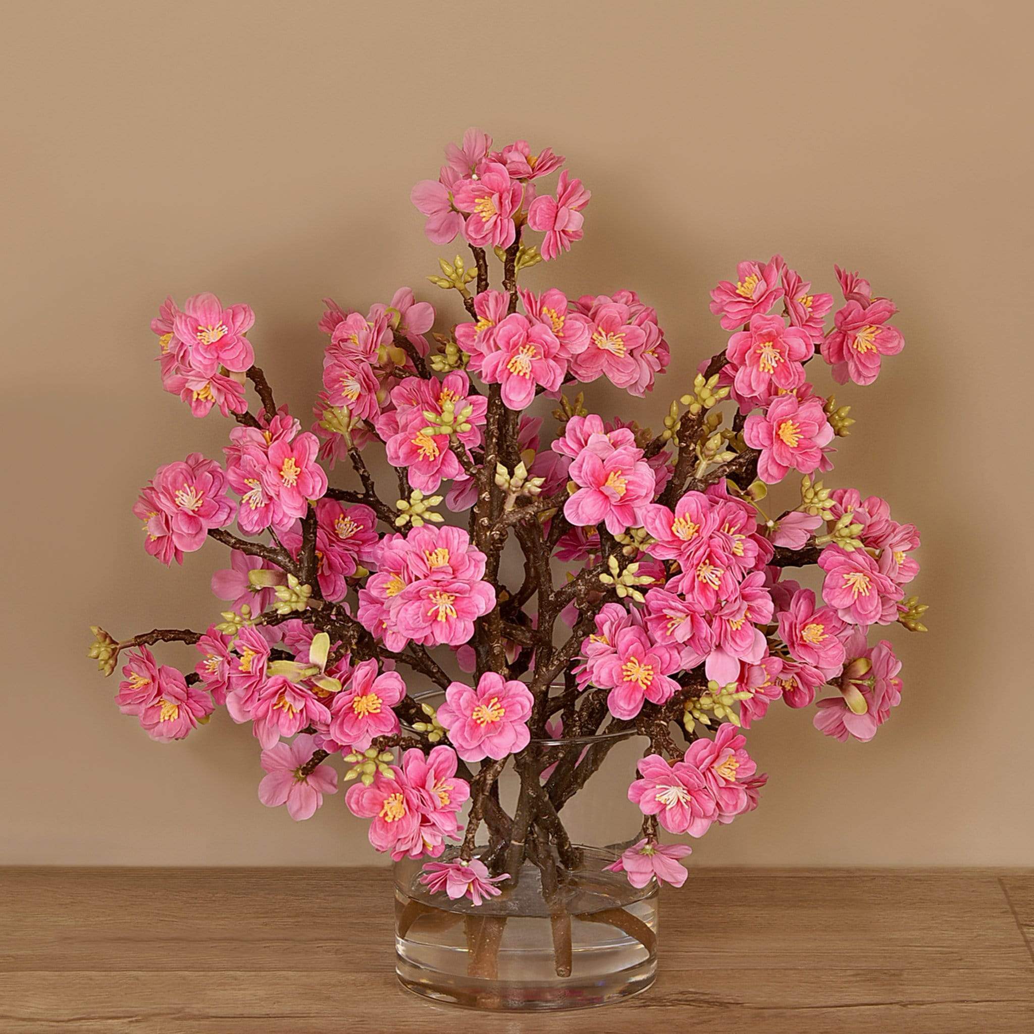 باقة أنيقة من فروع الأشجار المزهرة الصناعية مصمّمة لتمنح منزلك جوًا ربيعيًا ساحرًا دون عناء العناية. تم تنسيق كل تفصيلة بعناية على يد منسقي الزهور المختصين لتظهر بمظهر وملمس طبيعيين، ومثبتة داخل مزهرية زجاجية شفافة تضيف لمسة من الرقي والأناقة.