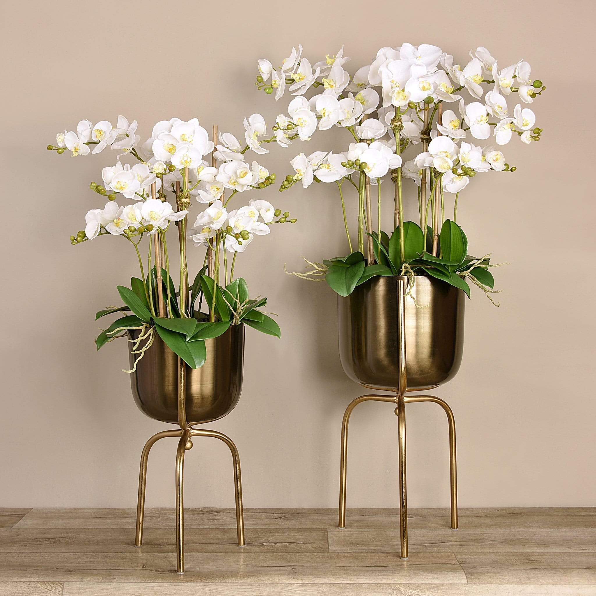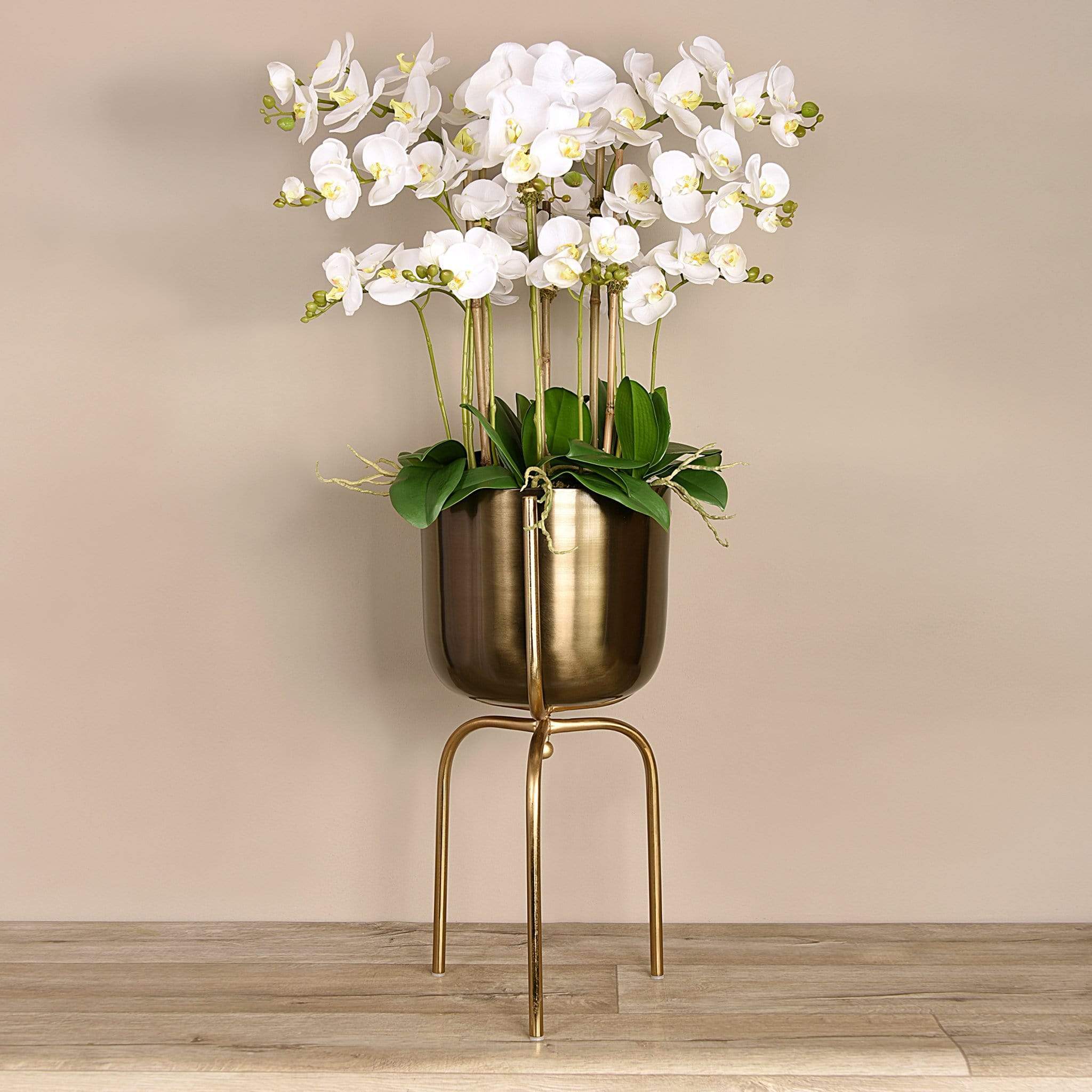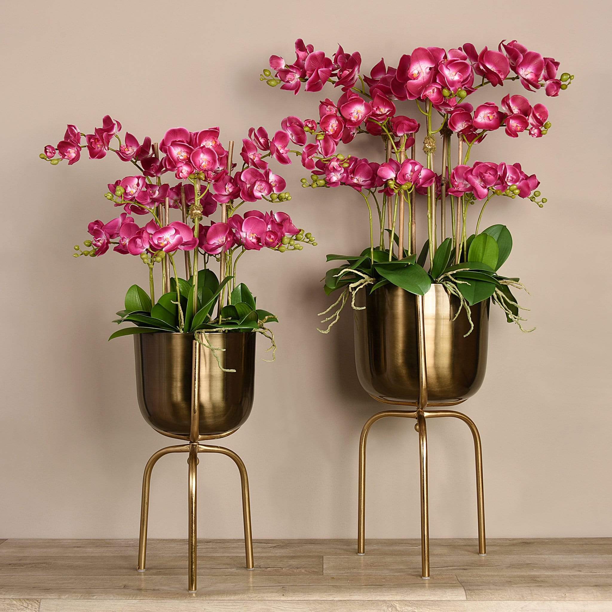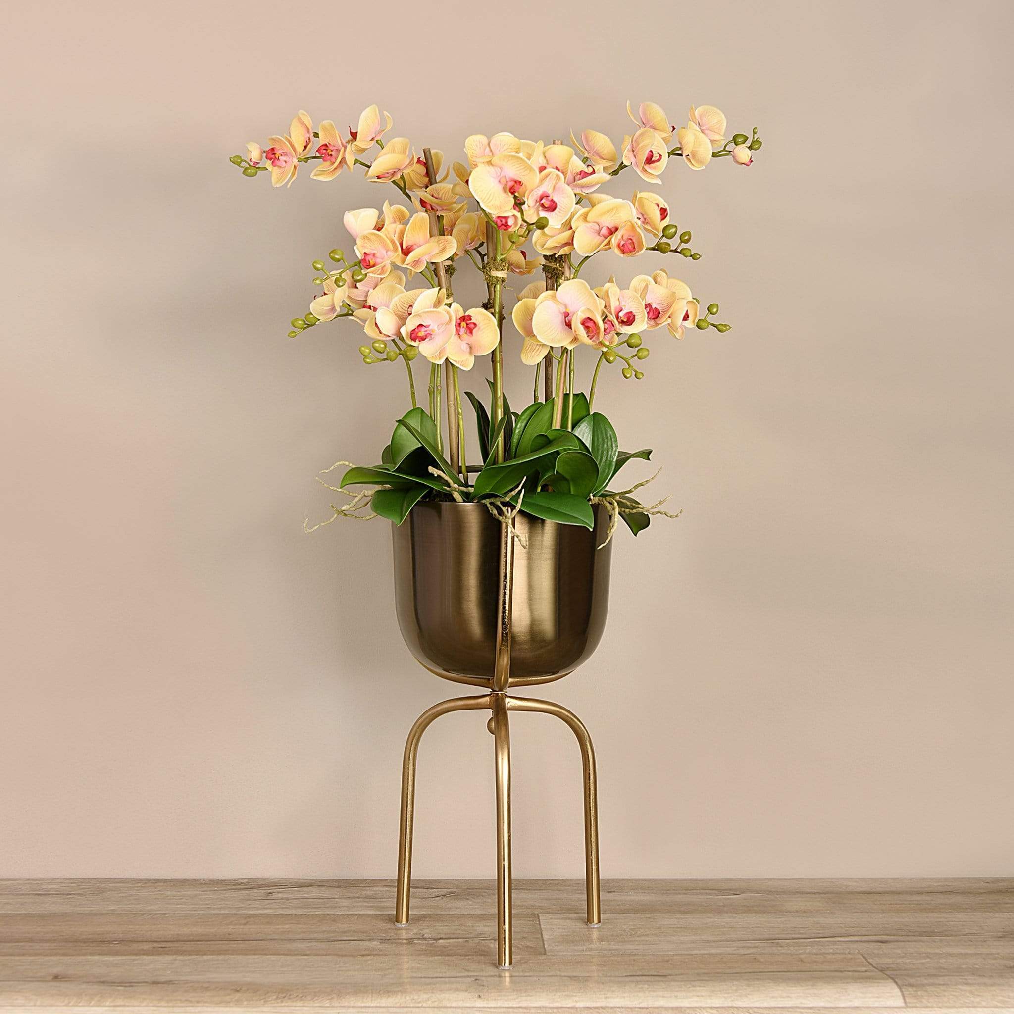 تشكيلة أوركيد صناعي داخل مزهرية ذهبية قائمة