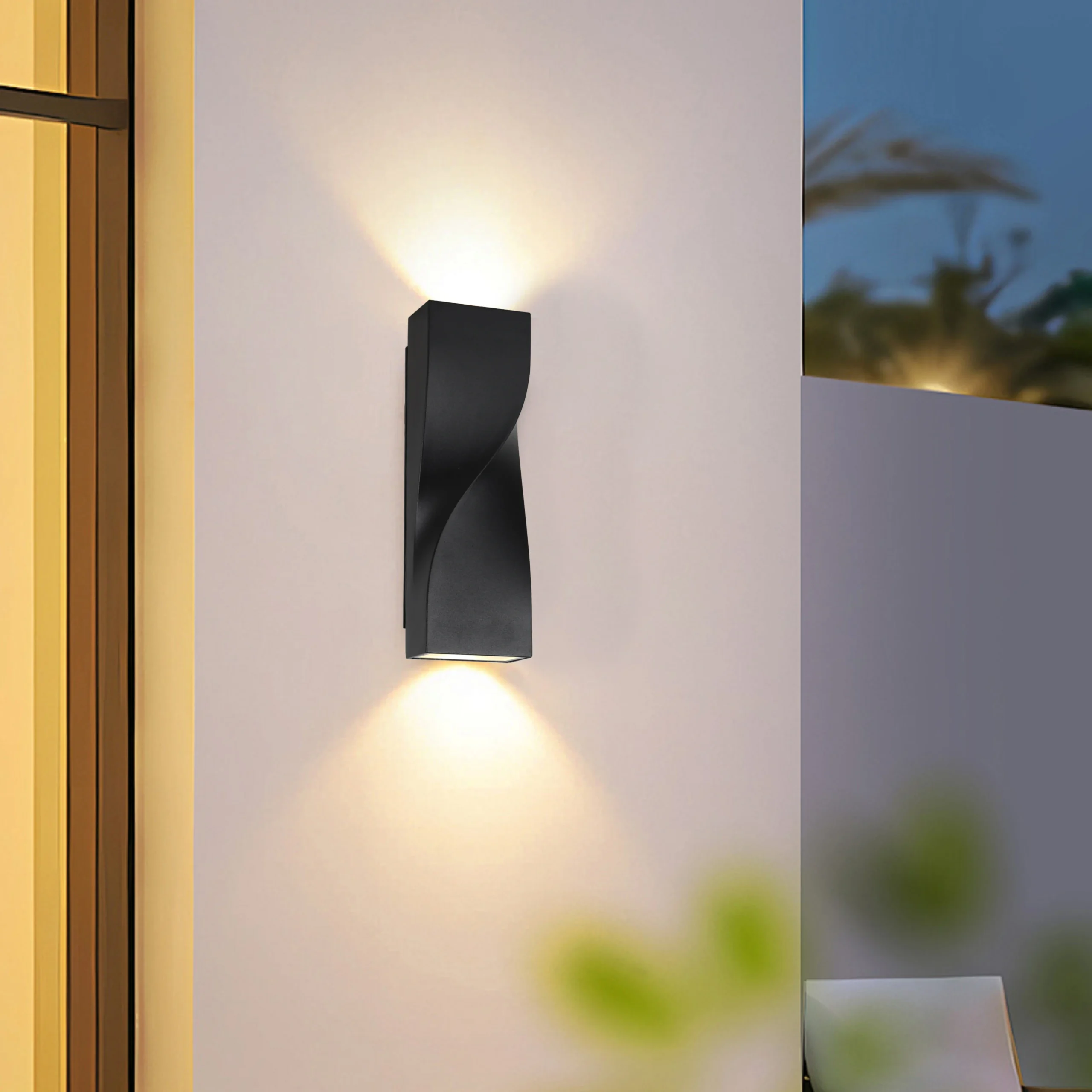 إضاءة جداري خارجية أنيقة تعمل على إبراز عمق وجمال جدران الواجهة، بتصميم أبليك مودرن بلون أسود مع ضوء أصفر دافئ. خيار عملي وموفر للطاقة لإضاءة الممرات والمداخل والمناطق الخارجية مع حماية ضد العوامل الجوية الخفيفة.