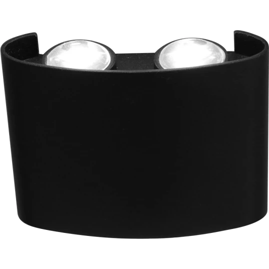 مصباح جداري خارجي أنيق باللون الأسود، مصمم لإضاءة مداخل البوابات والممرات بطريقة عصرية. مزود بأربع مصابيح LED وإضاءة RGB متعددة الألوان لإضفاء لمسة جمالية قابلة للتغيير على واجهة المنزل أو المبنى.