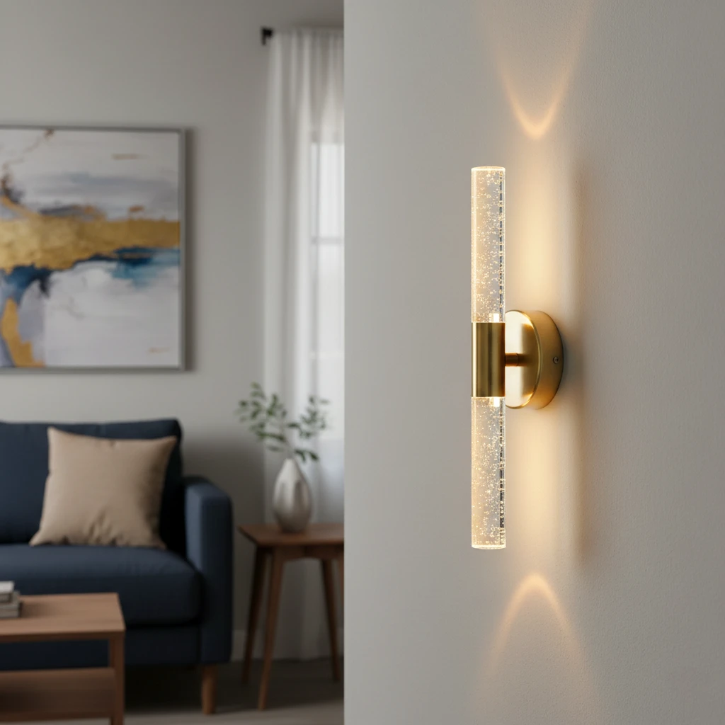 إضاءة جدارية داخلية بتصميم مودرن وملمس ناعم تضيف طابعًا دافئًا وفاخرًا للمكان. مصباح بلمسة عصرية وإضاءة متقنة الصنع، مثالي لإبراز المداخل، المغاسل والمساحات الداخلية التي تحتاج إلى لمسة أناقة وإضاءة محيطية هادئة.