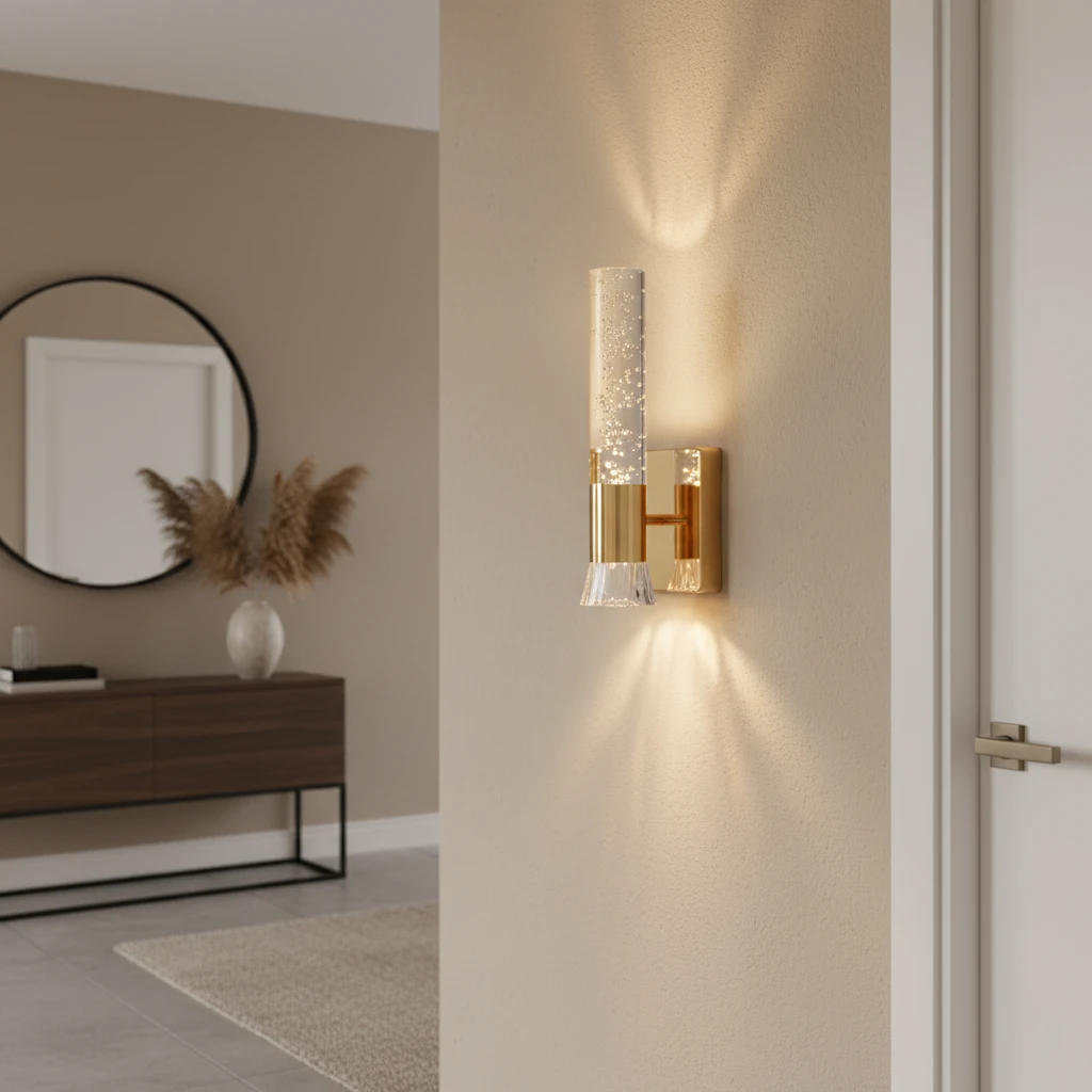 إنارة جانبية تضفي جمالًا فوريًا على الجدار وتمنح المساحة طابعًا مودرن أنيقًا مع لمسة ذهبية دافئة.