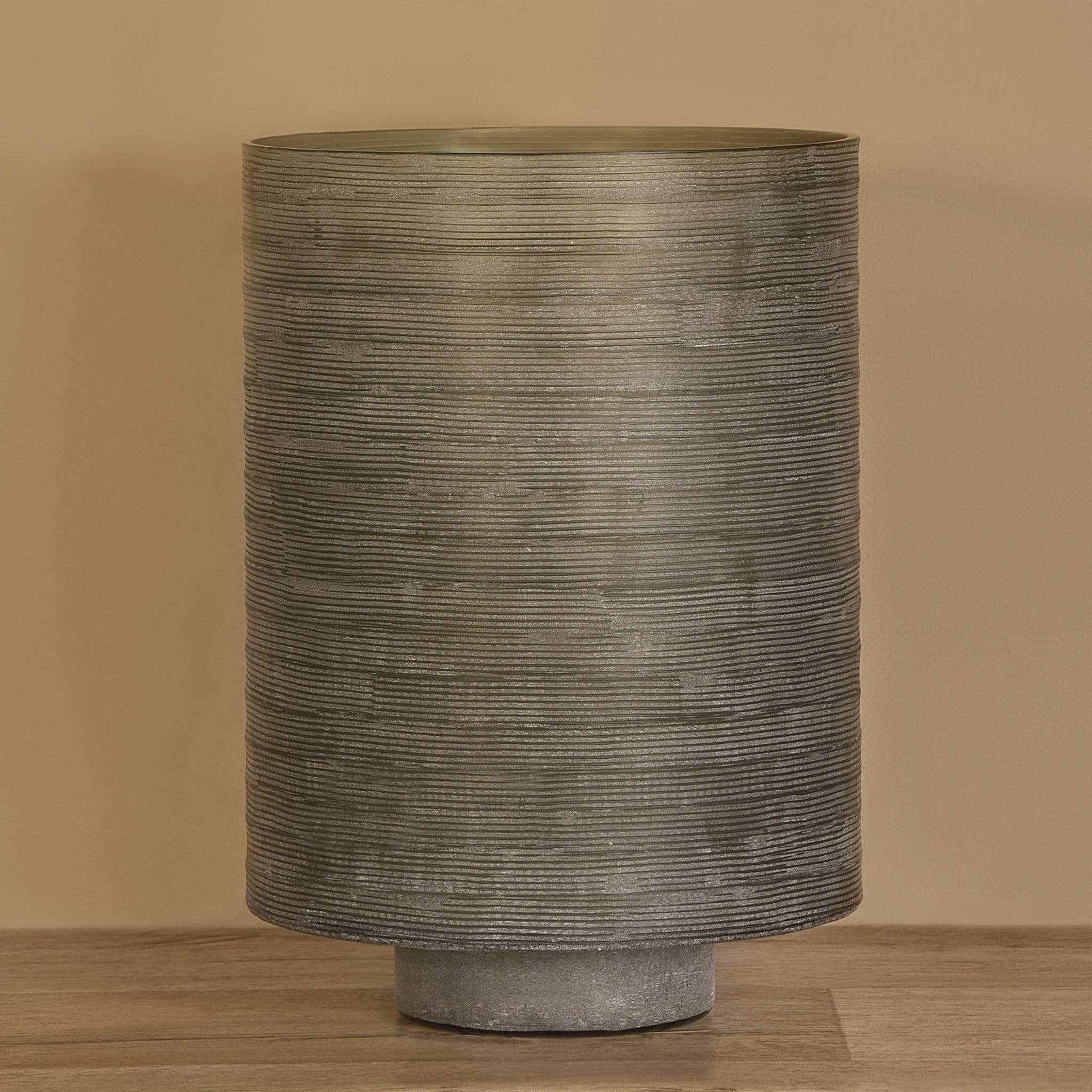 إعصار أسطواني أنيق مصنوع من الزجاج بلمسة نهائية رمادية دخانية تمنح غطاءً ناعمًا للتوهج الداخلي. يوفّر ضوءًا دافئًا وجميلاً يضفي أجواء مريحة وعصرية على المساحات المنزلية.