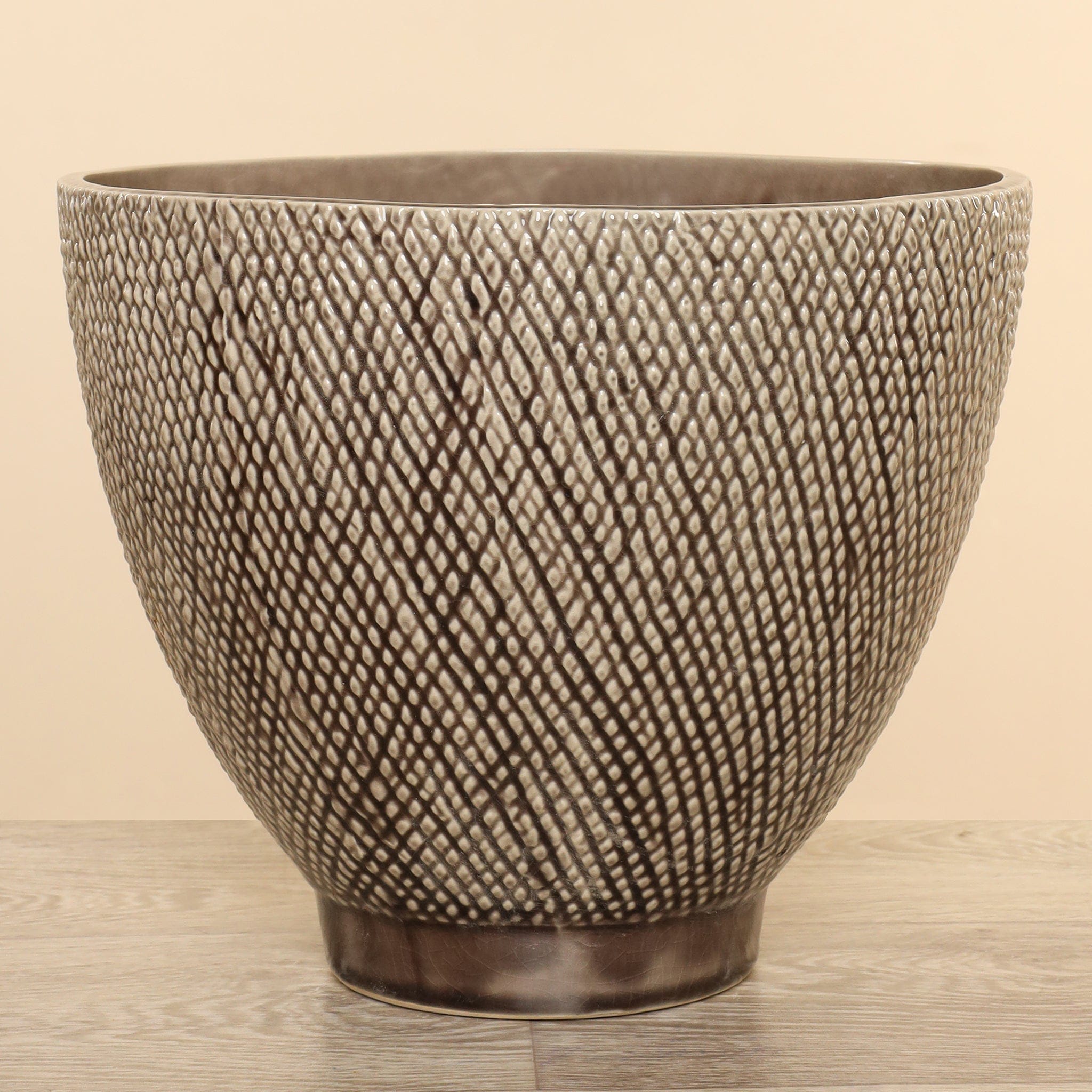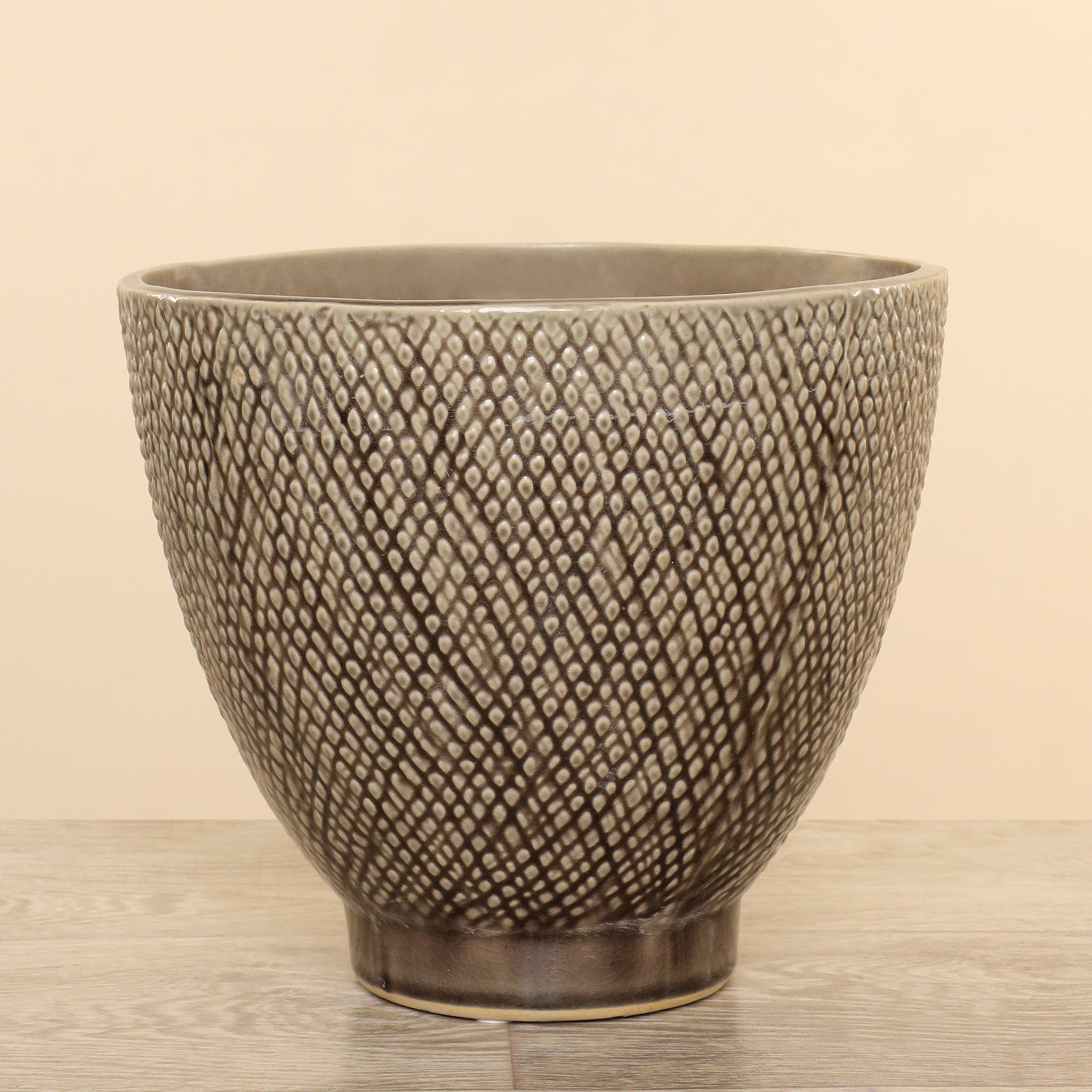 وصف مختصر:أصيص خزفي دائري أنيق بلون بني دافئ، يضفي لمسة طبيعية وراقية على أي مساحة داخلية أو خارجية. تصميمه الكلاسيكي يناسب مختلف أنماط الديكور ويوفر قاعدة مستقرة لنباتاتك المفضلة.