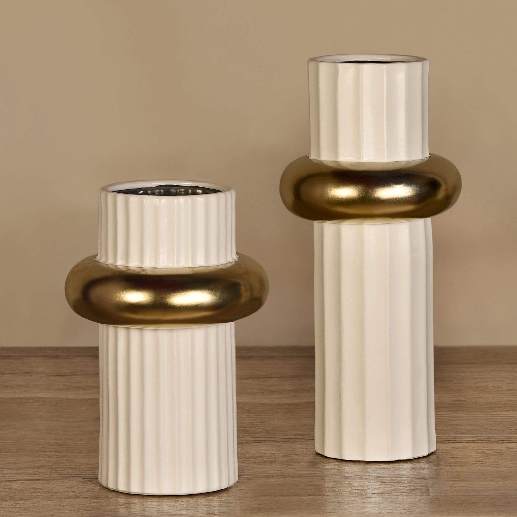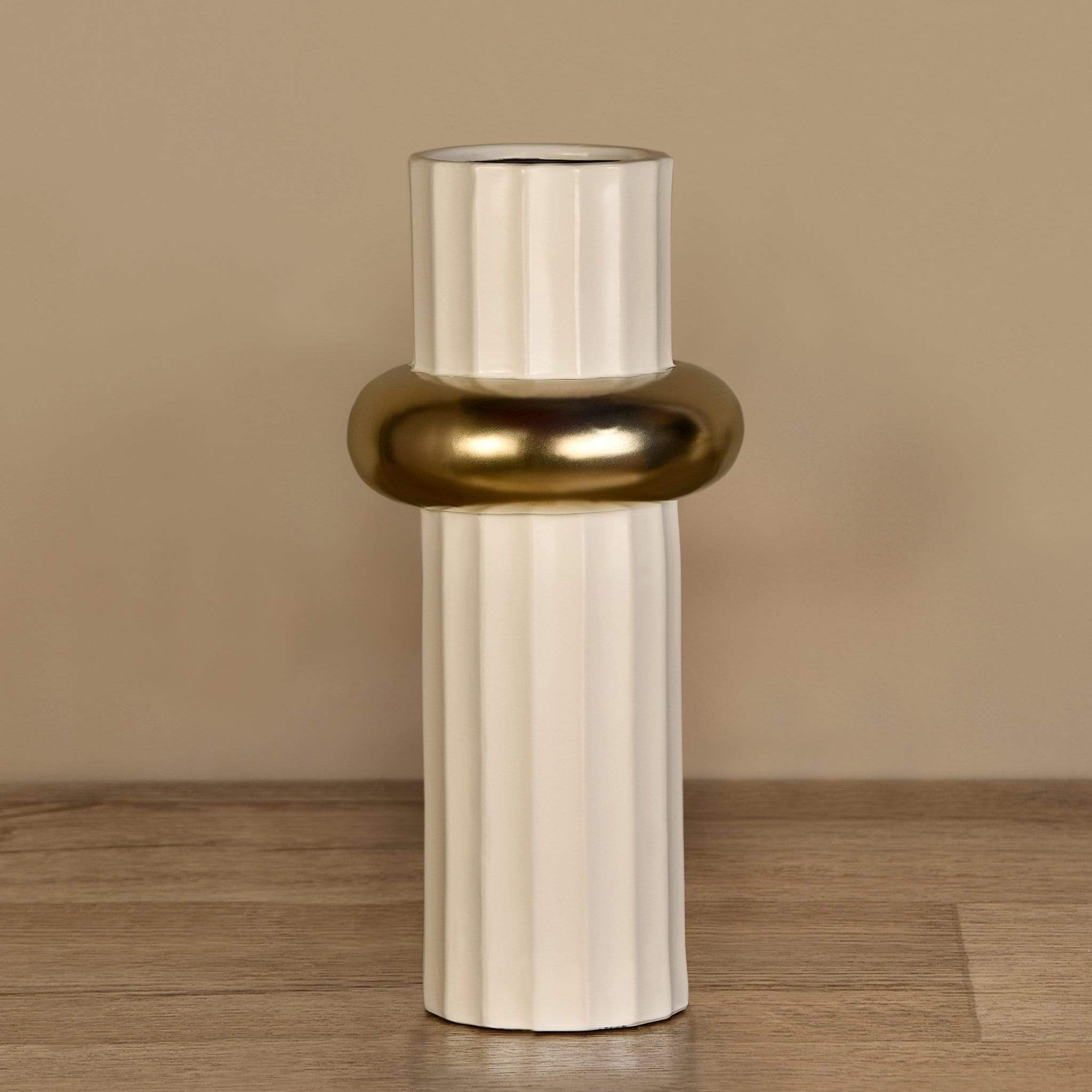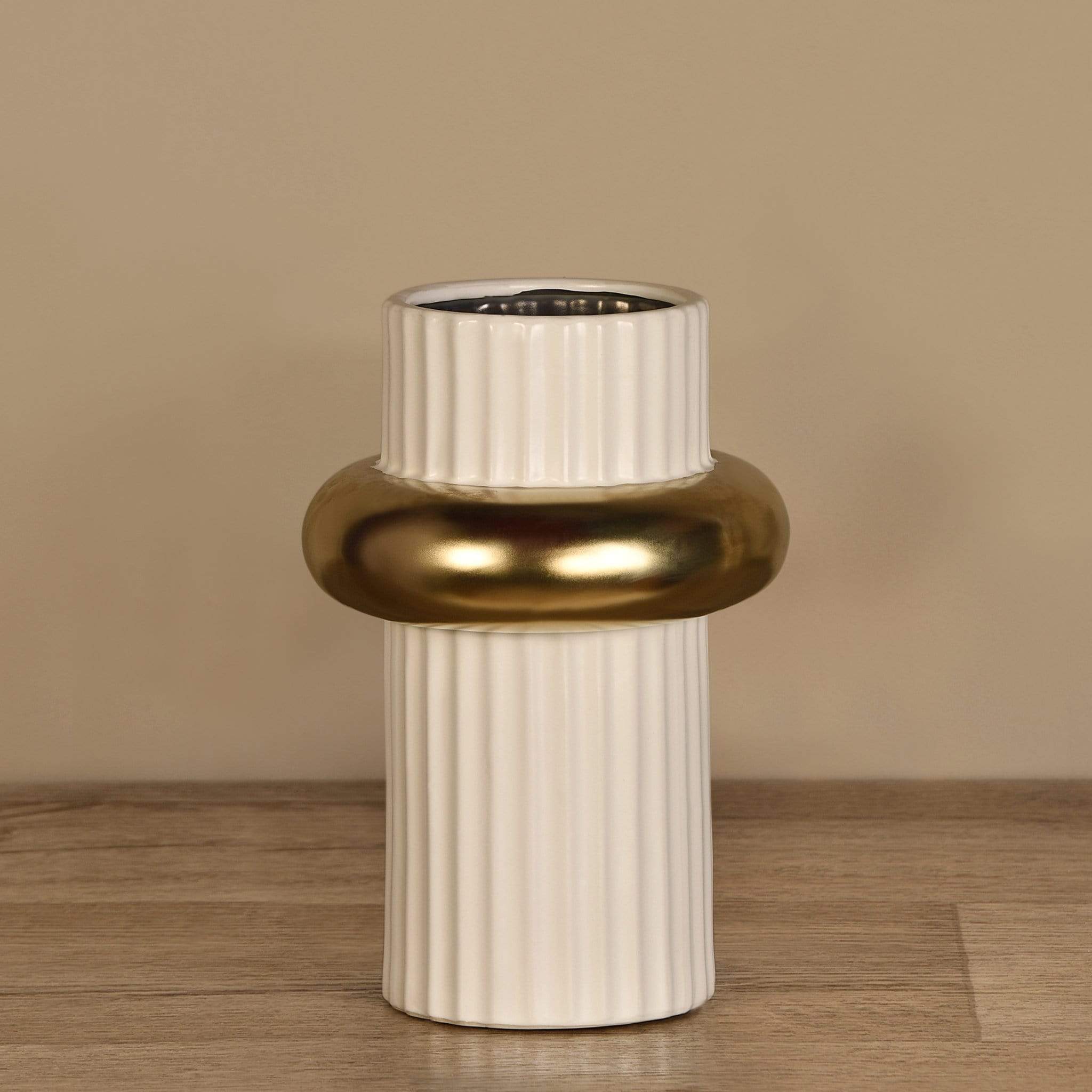 وعاء خزفي أنيق باللونين الأبيض والذهبي، يجمع بين البساطة والفخامة. مناسب للتقديم اليومي والاحتفالي، كما يمكن استخدامه كقطعة زخرفية تضيف لمسة راقية إلى المنزل.