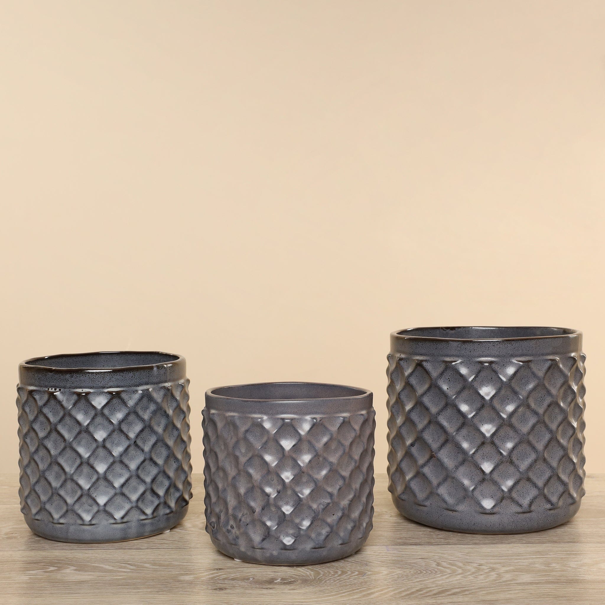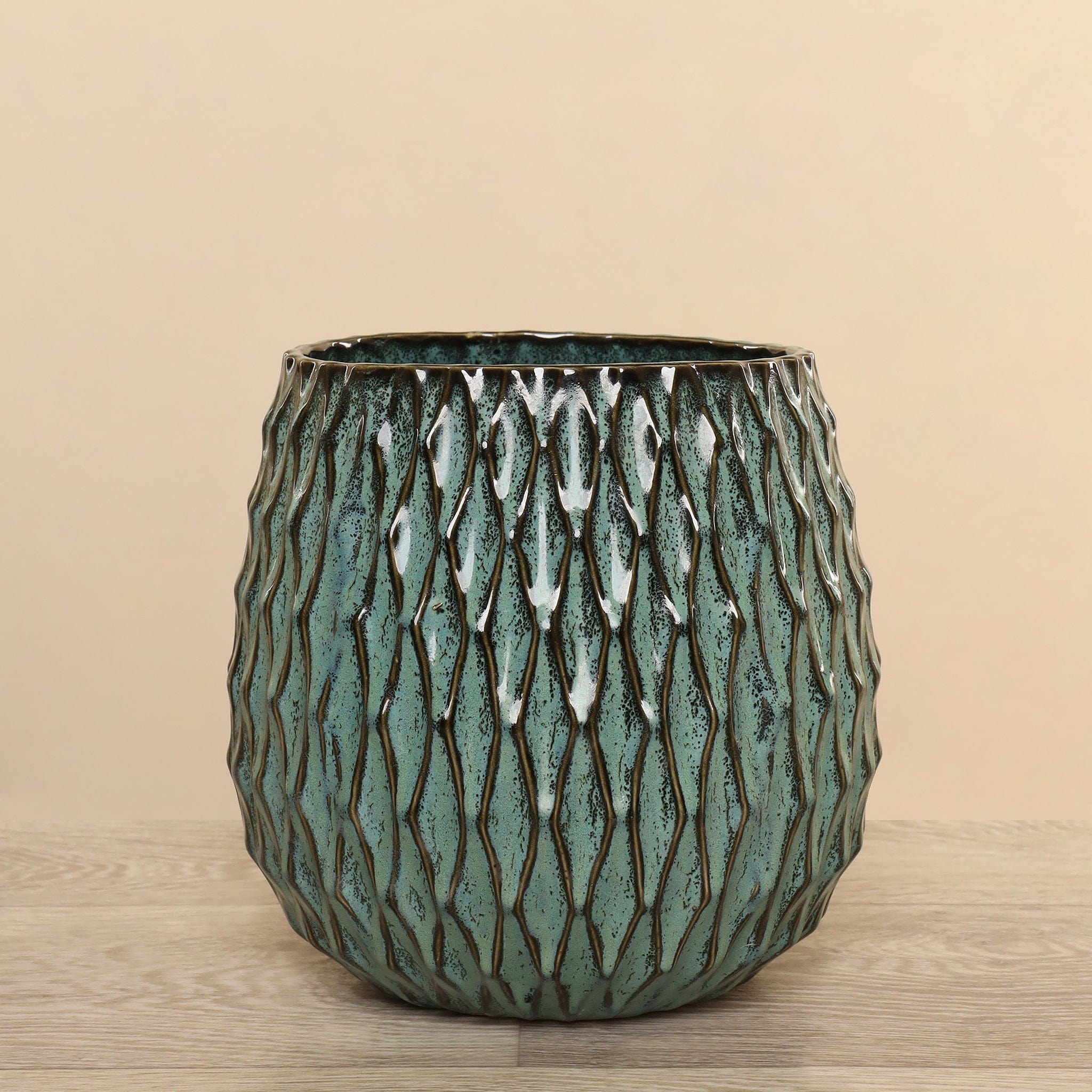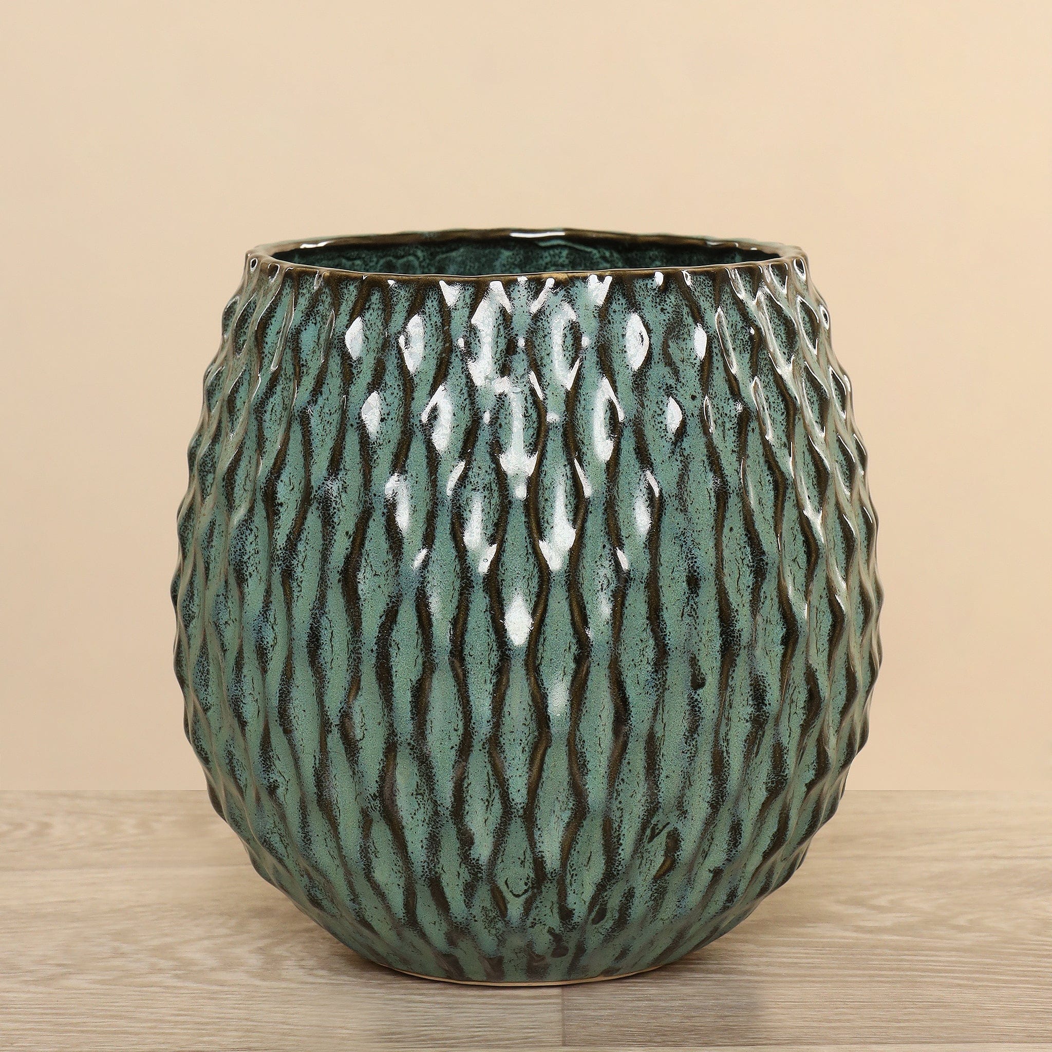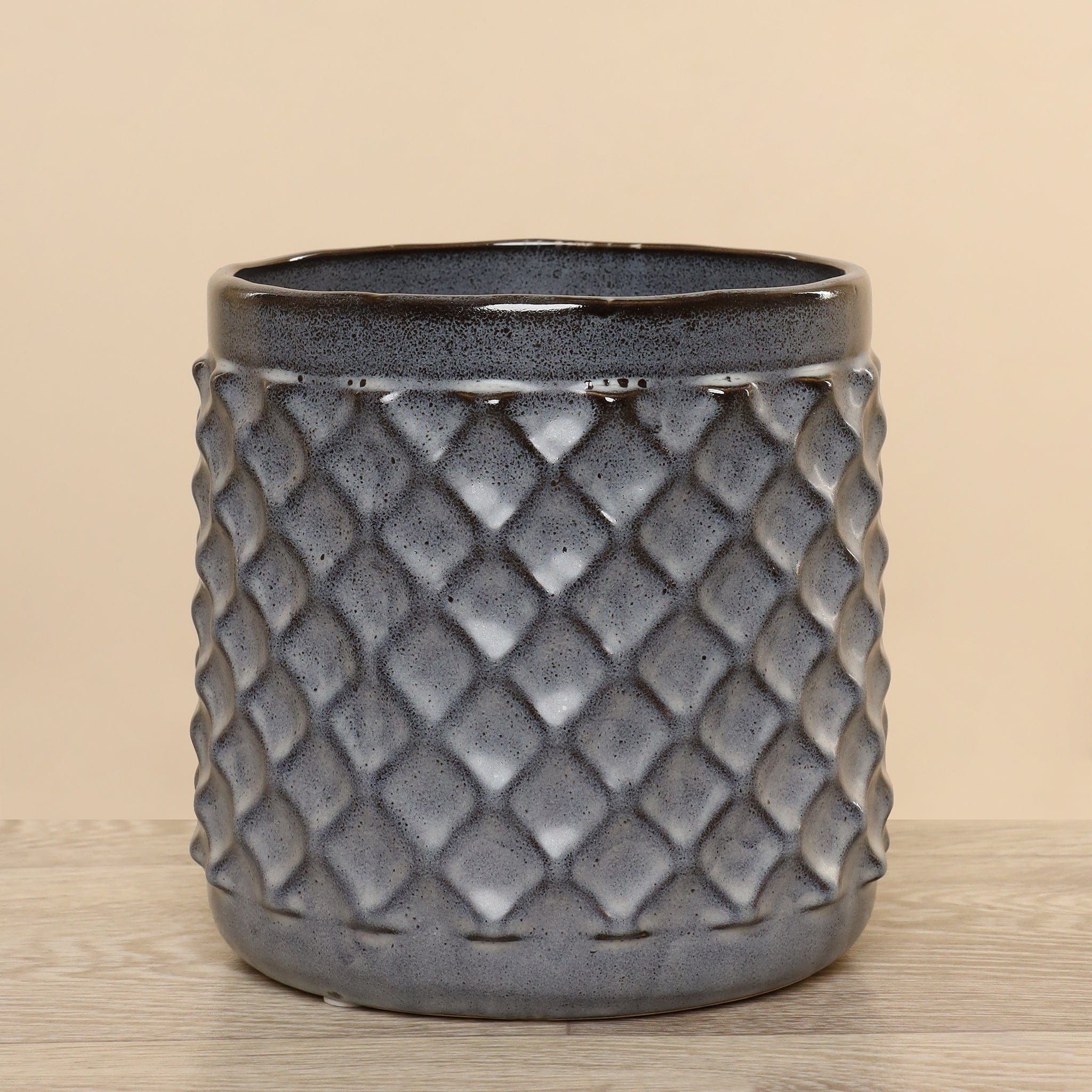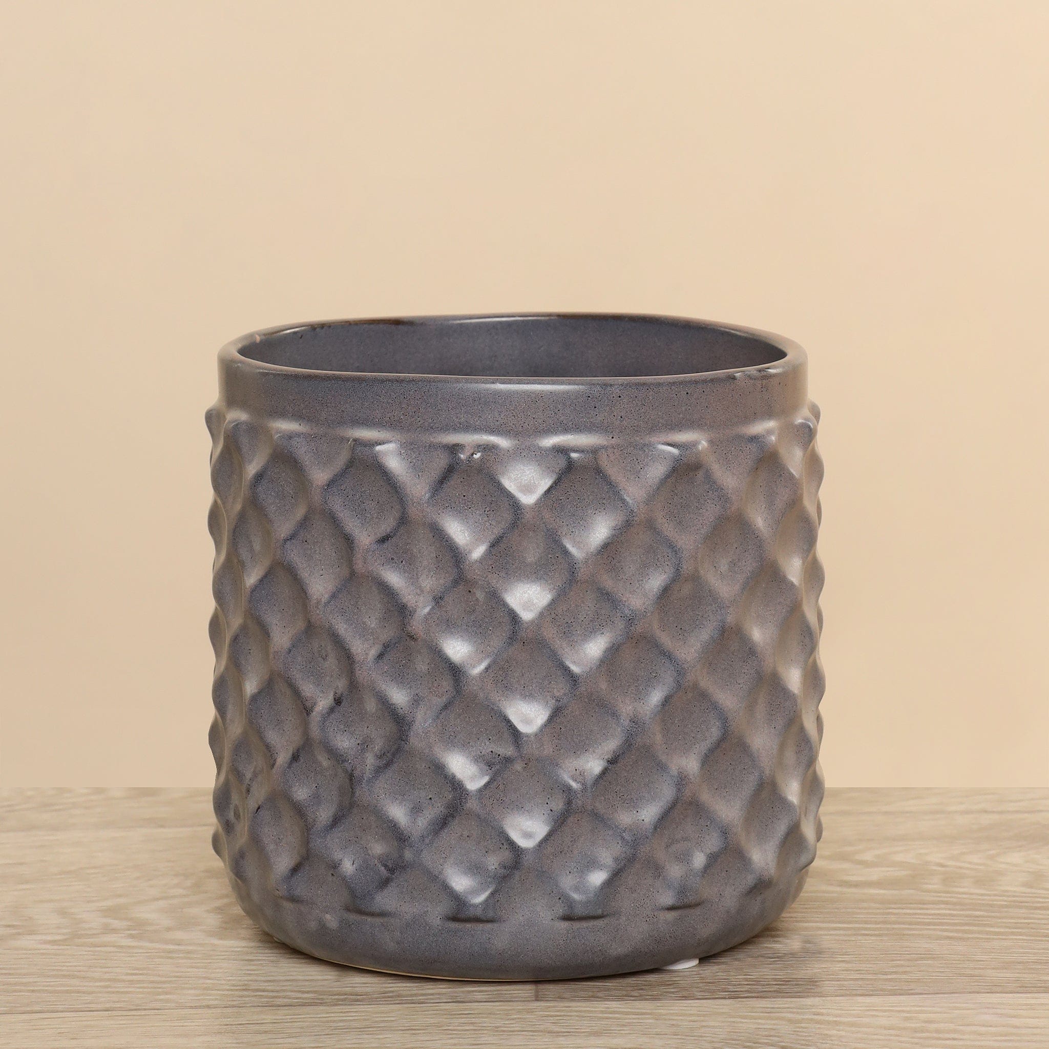 مزهرية خزفية أنيقة بلون رمادي مطفي، بتصميم بسيط وعصري يضفي لمسة هادئة على أي مساحة داخلية. مثالية للزهور الطازجة أو النباتات الجافة، ويمكن استخدامها كعنصر ديكور مستقل على الطاولات والرفوف.