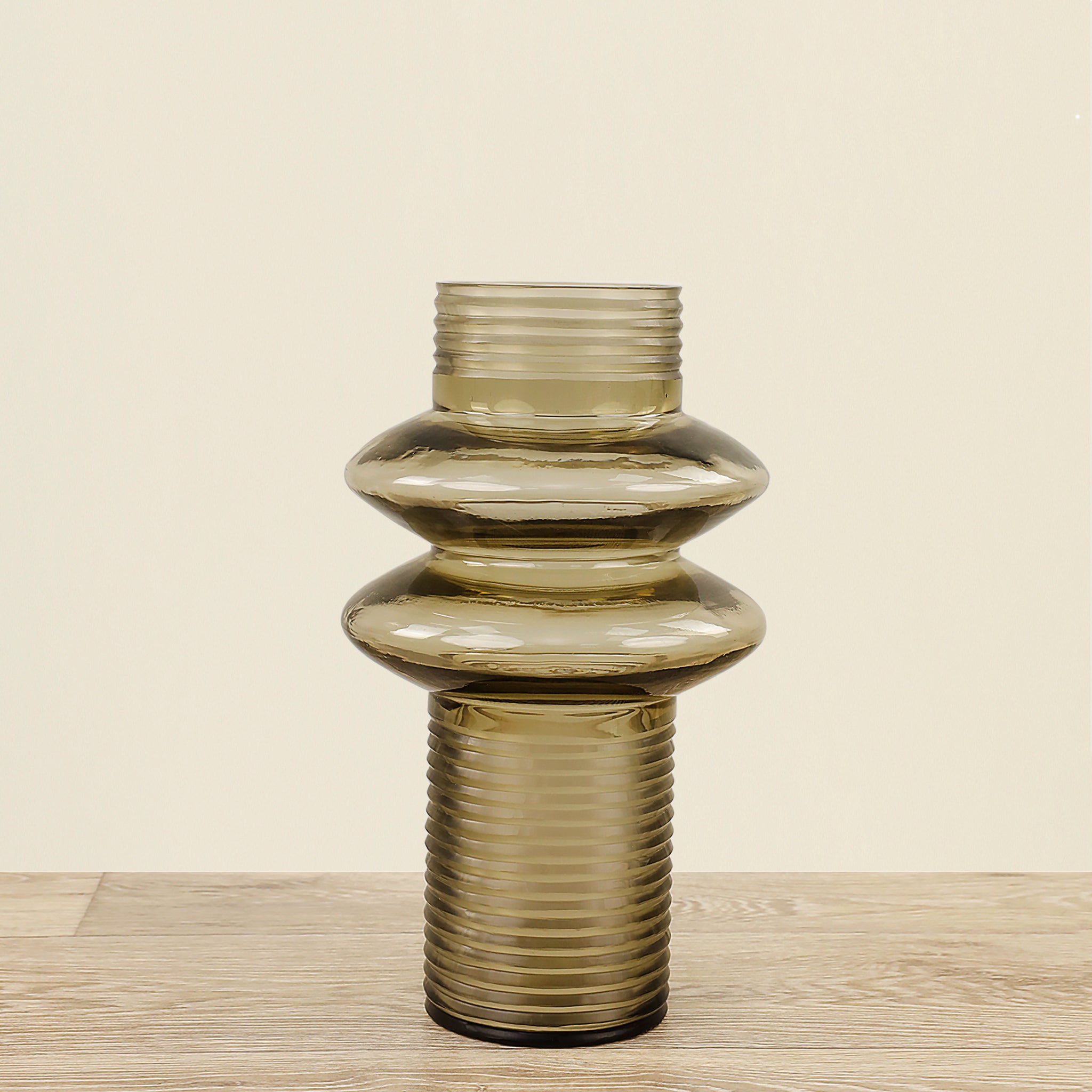 مزهرية بسيطة وأنيقة مصنوعة من زجاج شفاف تعزز من جمال الزهور وتضفي لمسة مميزة على أي مساحة داخلية.