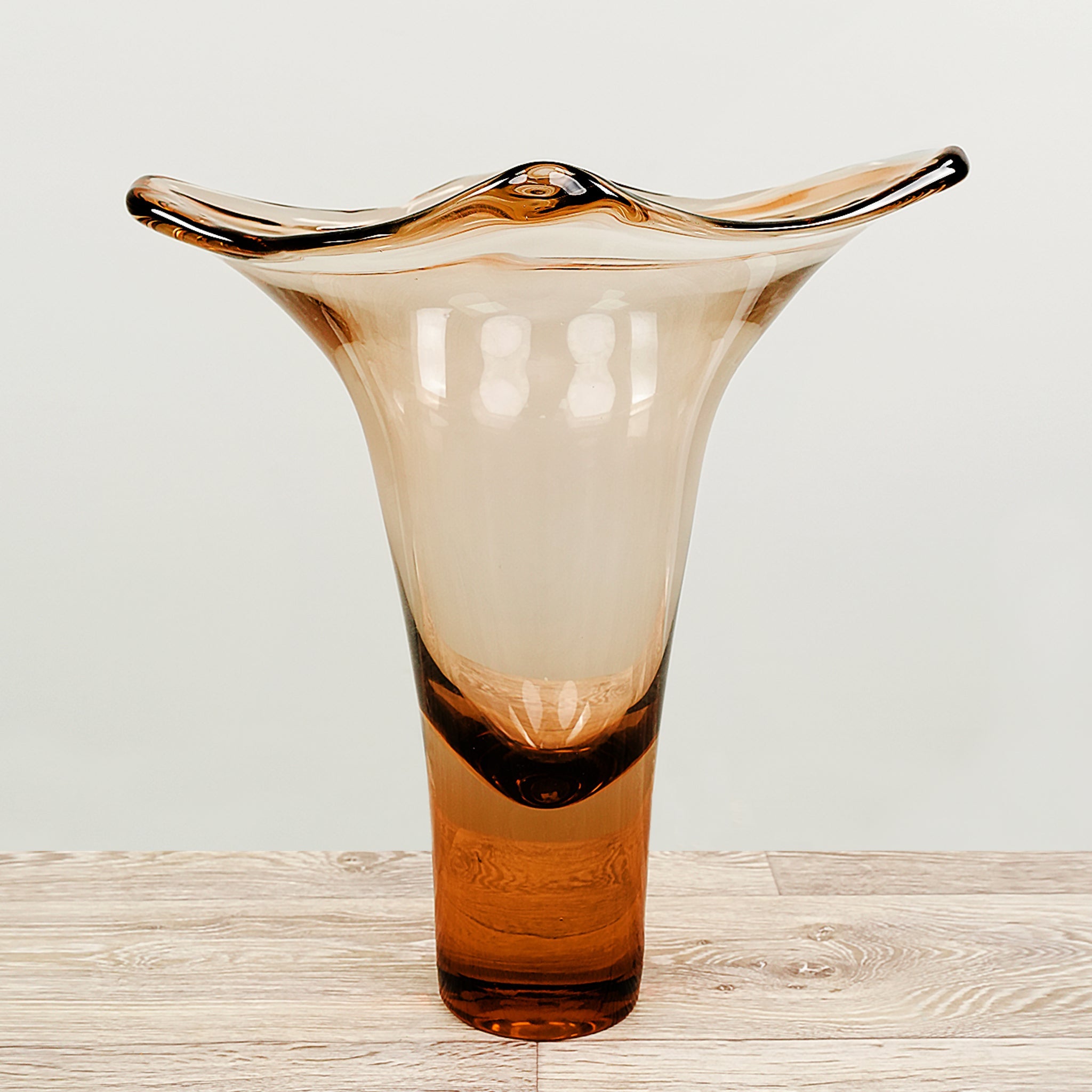 مزهرية أنيقة مصنوعة من الزجاج الشفاف، تجمع بين البساطة والذوق الهادئ لتضيف لمسة جمالية لأي مساحة داخلية. تصميمها الكلاسيكي والشفاف يبرز ألوان وأشكال الأزهار ويعطي إحساساً بالإنعاش والنقاء.