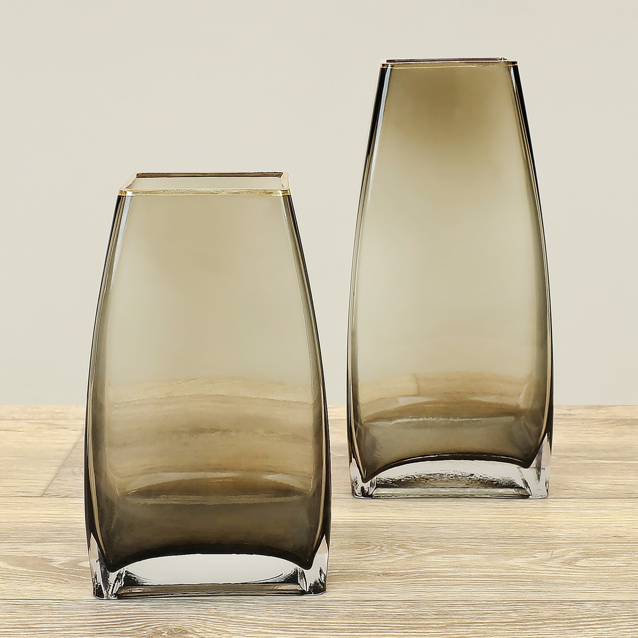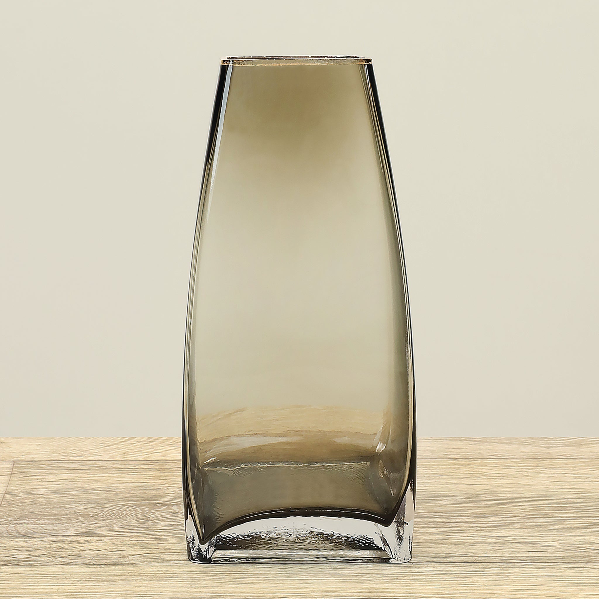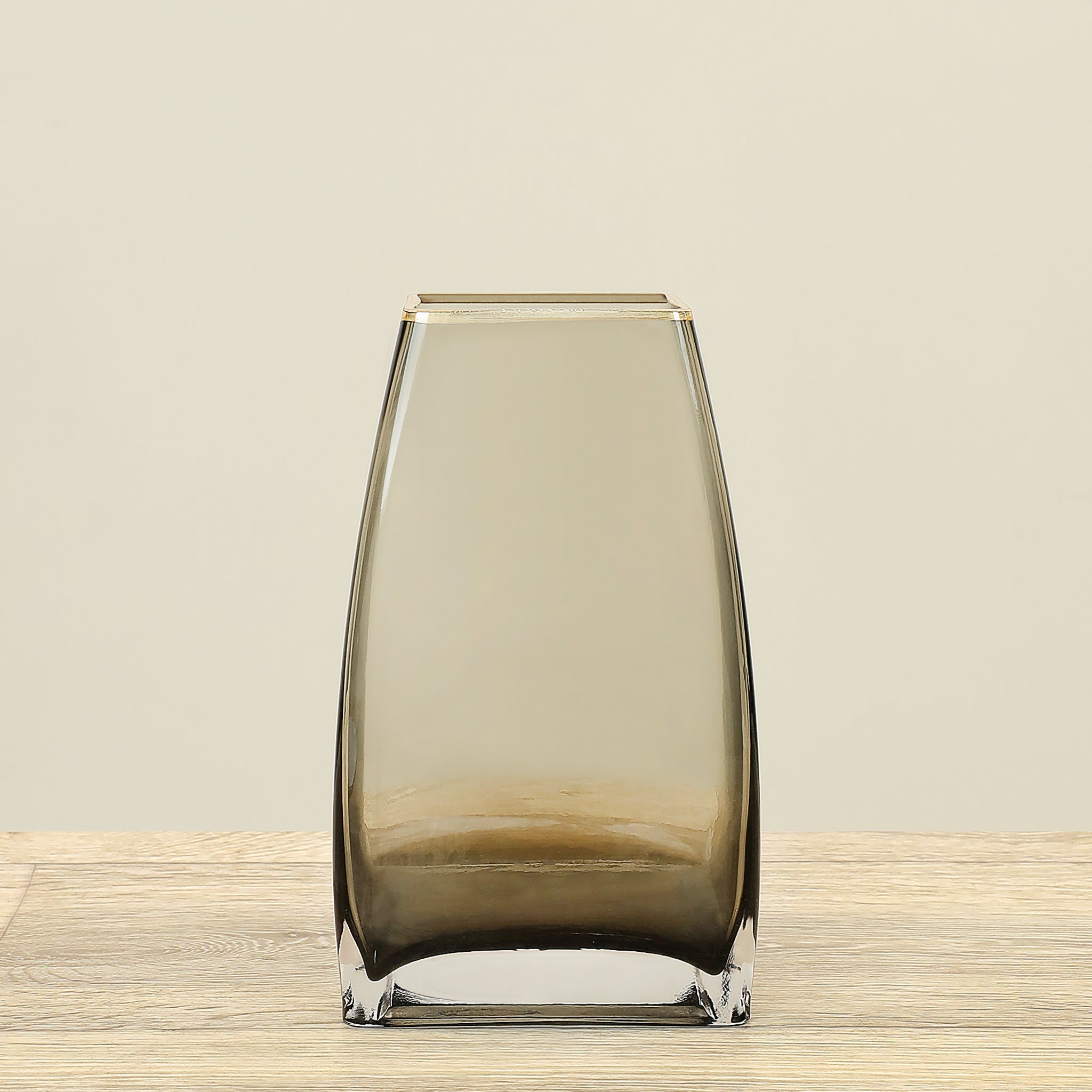 مزهرية زجاجية أنيقة بتصميم شفاف ونظيف تضيف لمسة من البساطة والرقي إلى أي مكان توضع فيه.