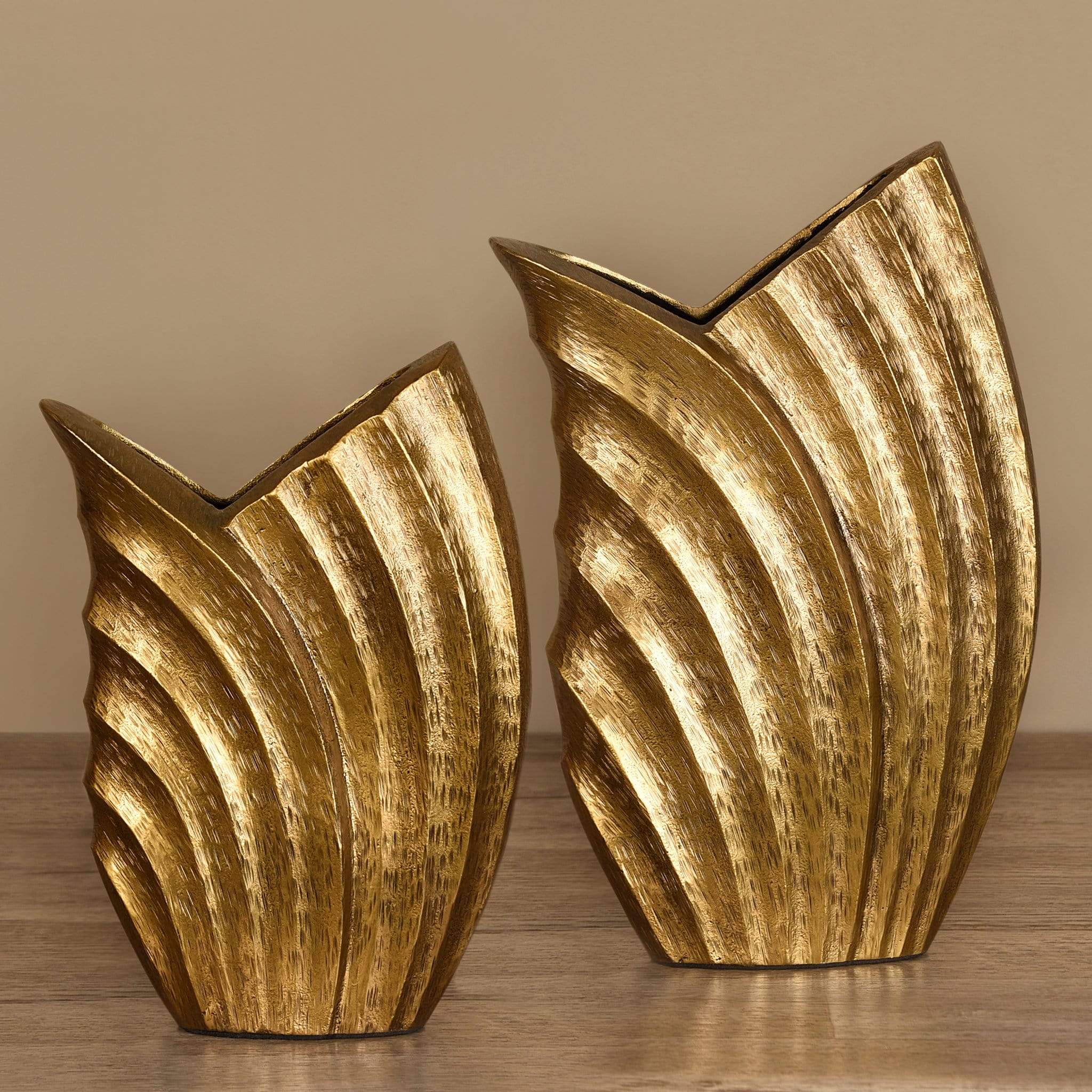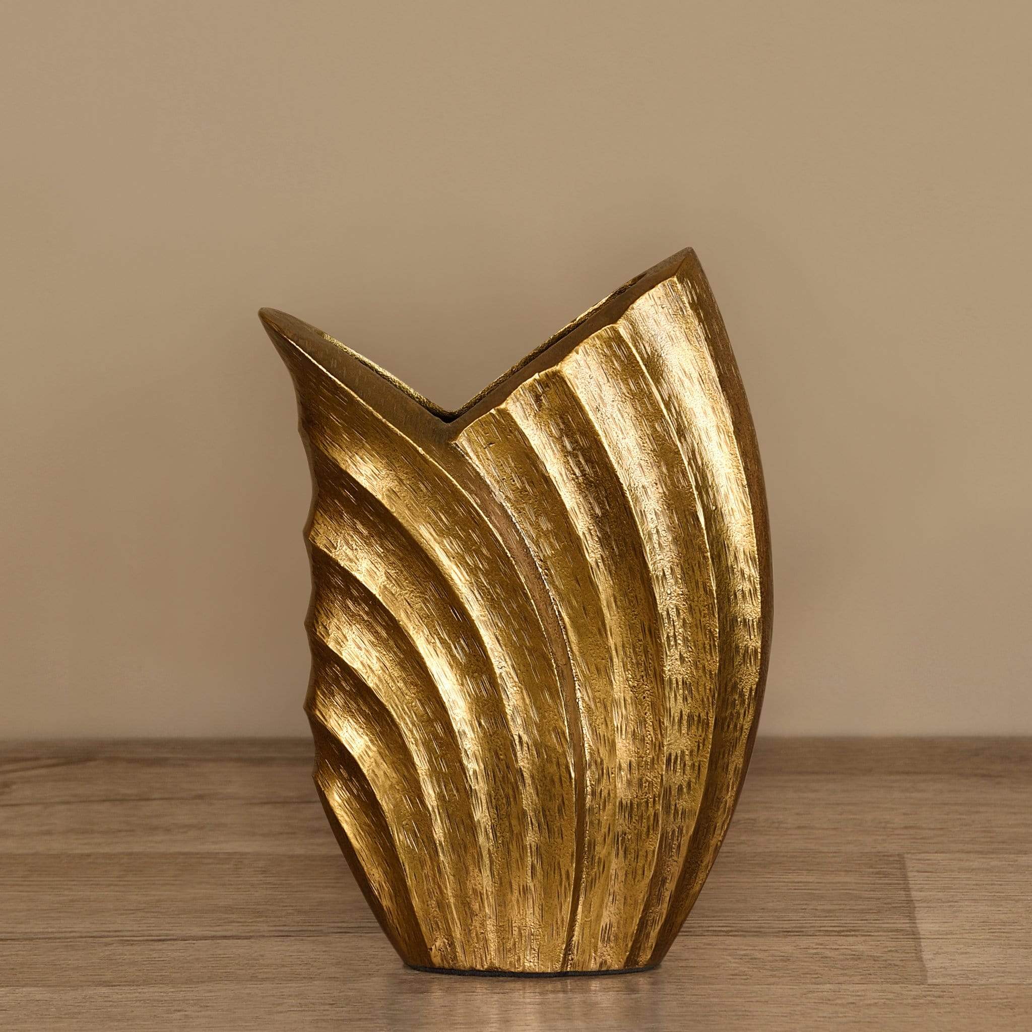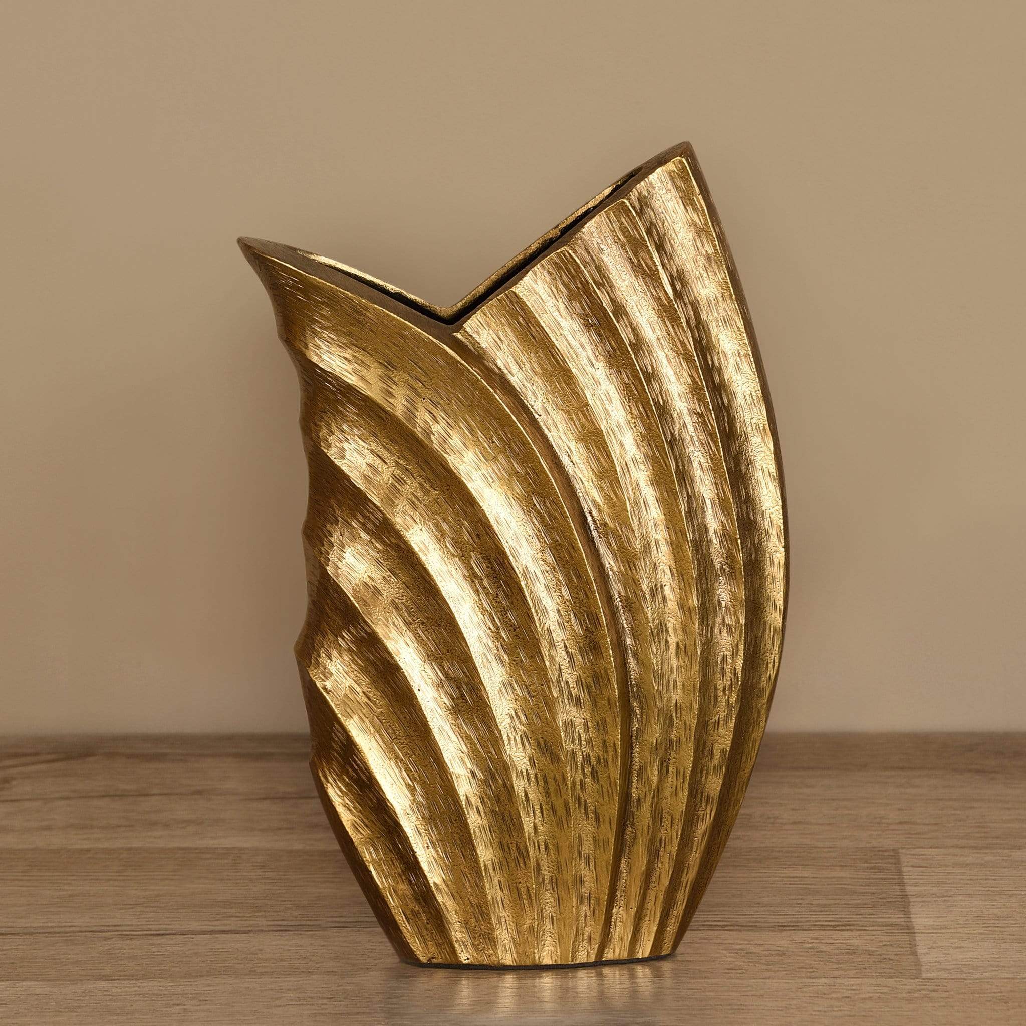 مزهرية أنيقة بلون ذهبي فاخر تضيف لمسة من الرقي والدفء إلى أي مساحة داخلية؛ مناسبة للزهور الطبيعية أو الصناعية وتتماشى مع الديكورات العصرية والكلاسيكية على حد سواء.