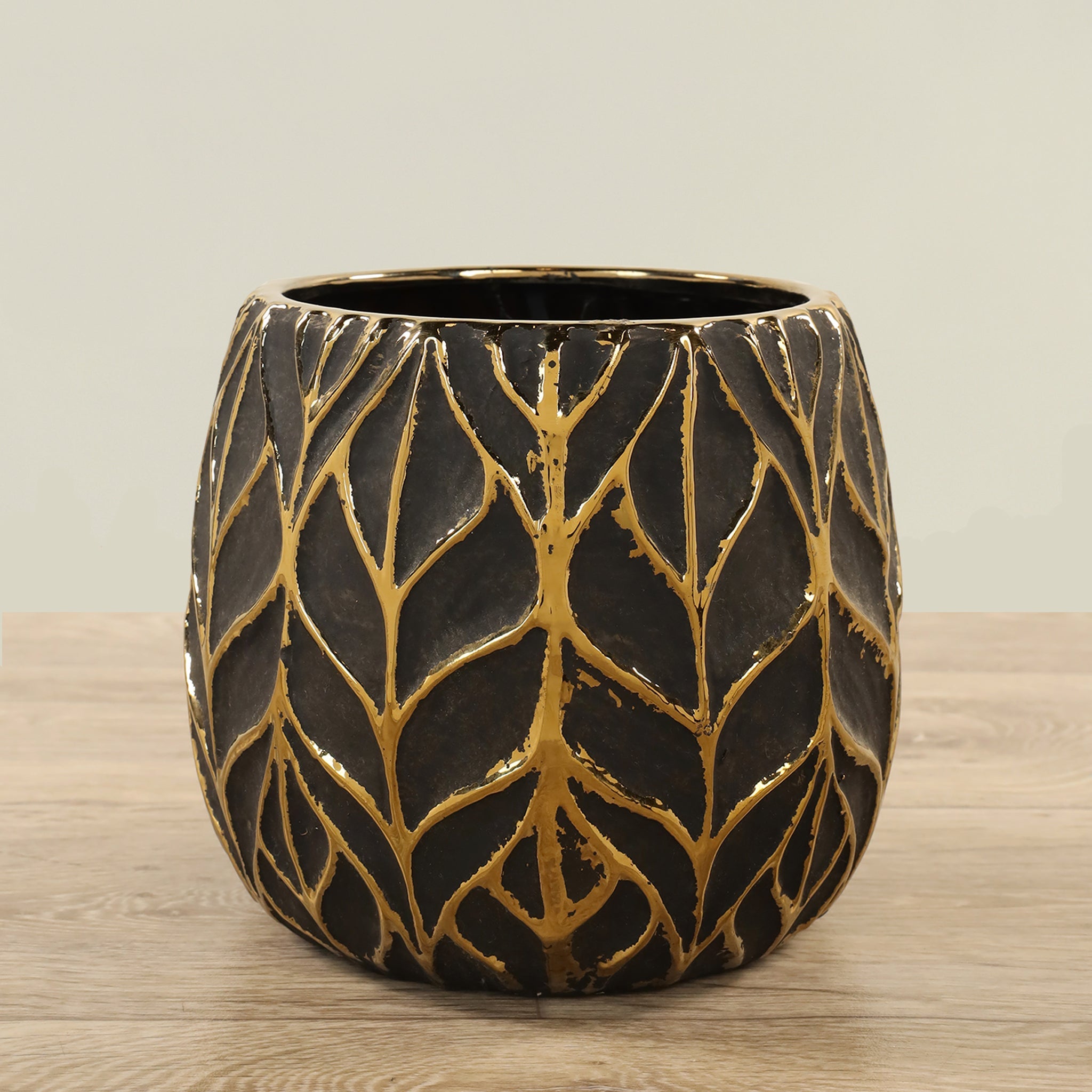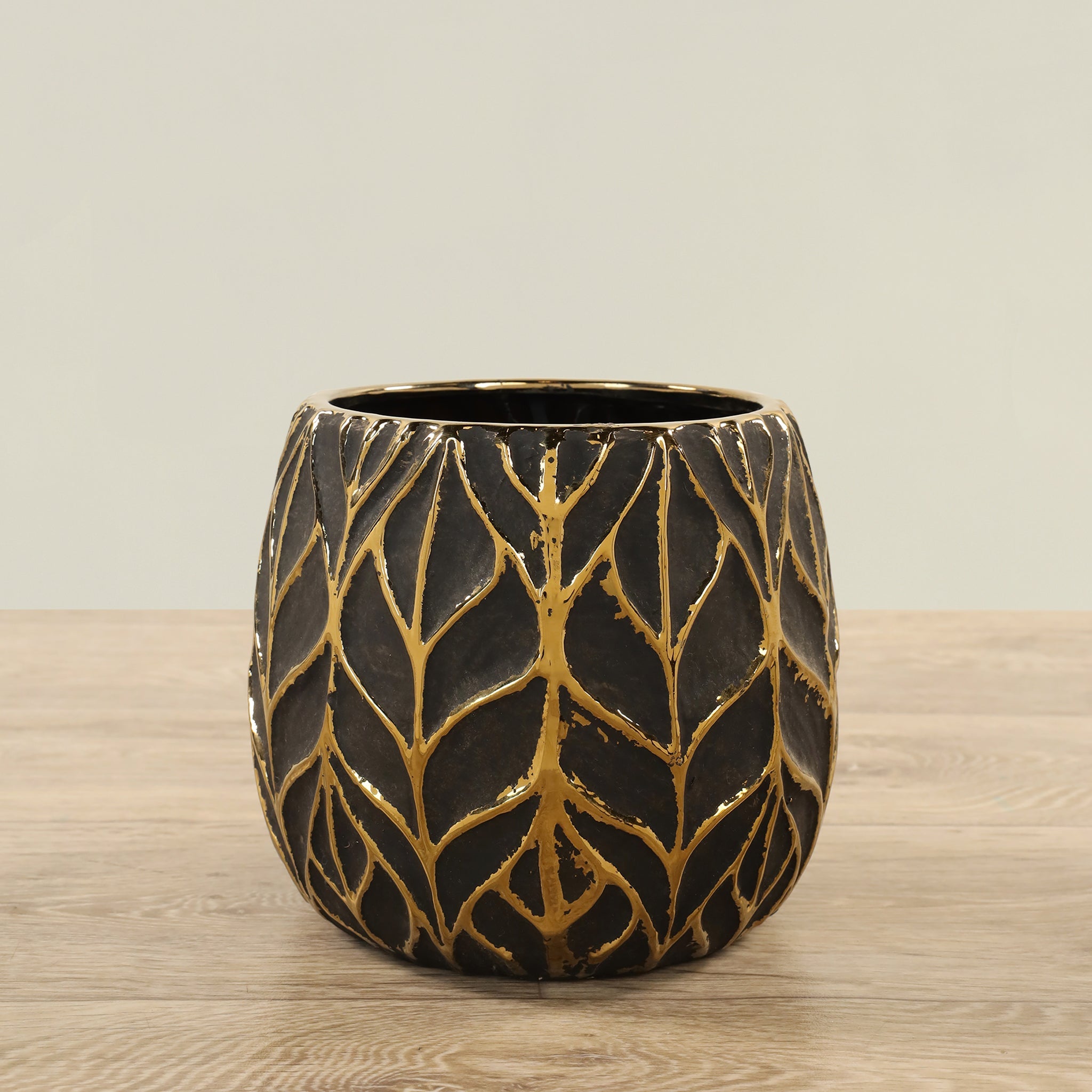 ارتقِ بمظهر منزلك مع وعاء سيراميكي دائري بتشطيب أسود غير لامع؛ تصميم أنيق وبسيط يضيف طابعًا راقيًا ودائماً إلى أي مساحة داخلية.