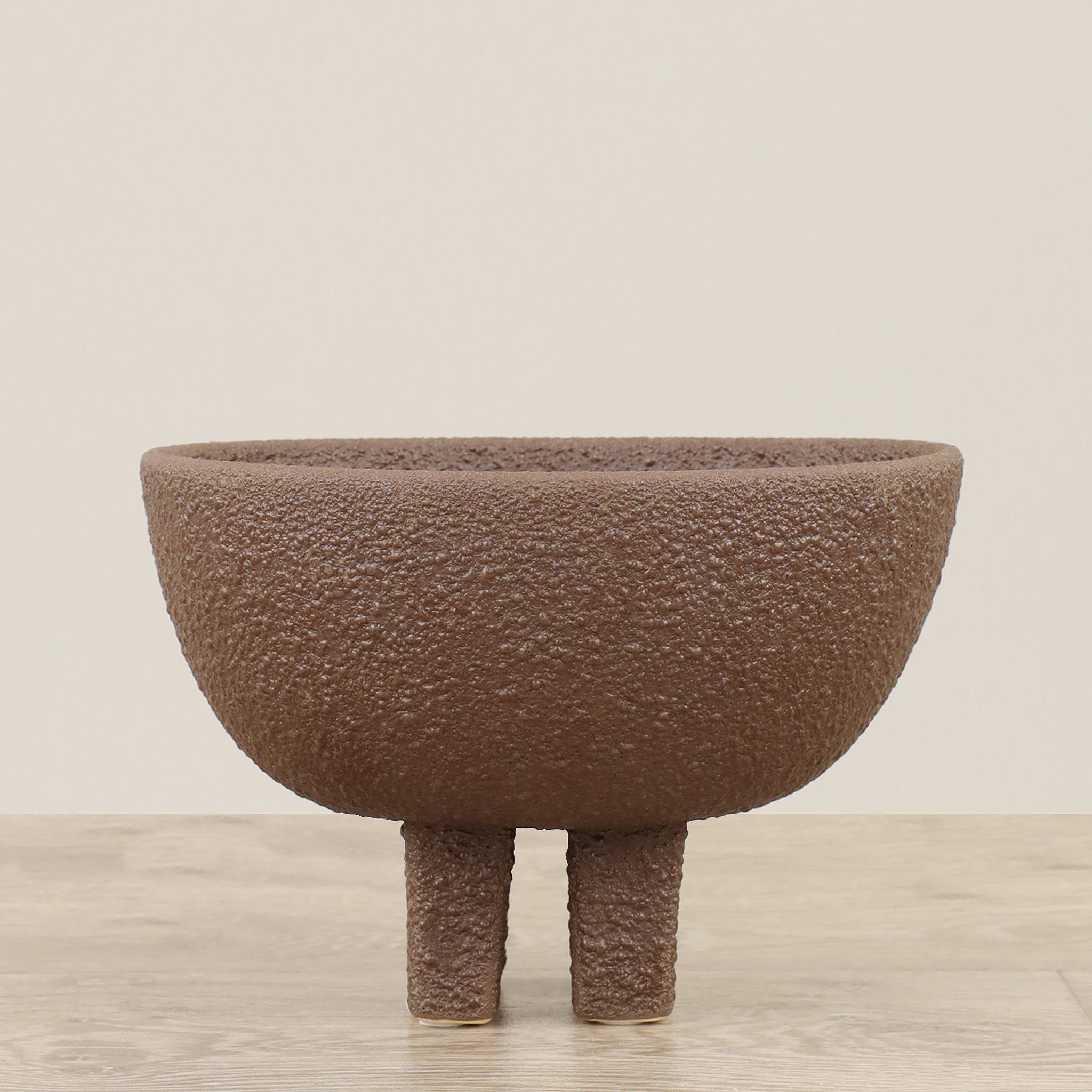 وعاء أنيق مصنوع من مادة السيراميك، يتميز بمزيج ألوان هادئ بين الأبيض والبني، ما يمنحه مظهراً كلاسيكياً يناسب الديكورات المنزلية المختلفة.