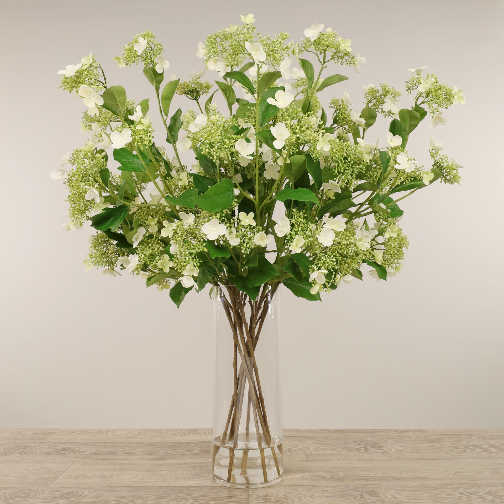تنسيق زهور الويبرنوم الاصطناعية في مزهرية زجاجية