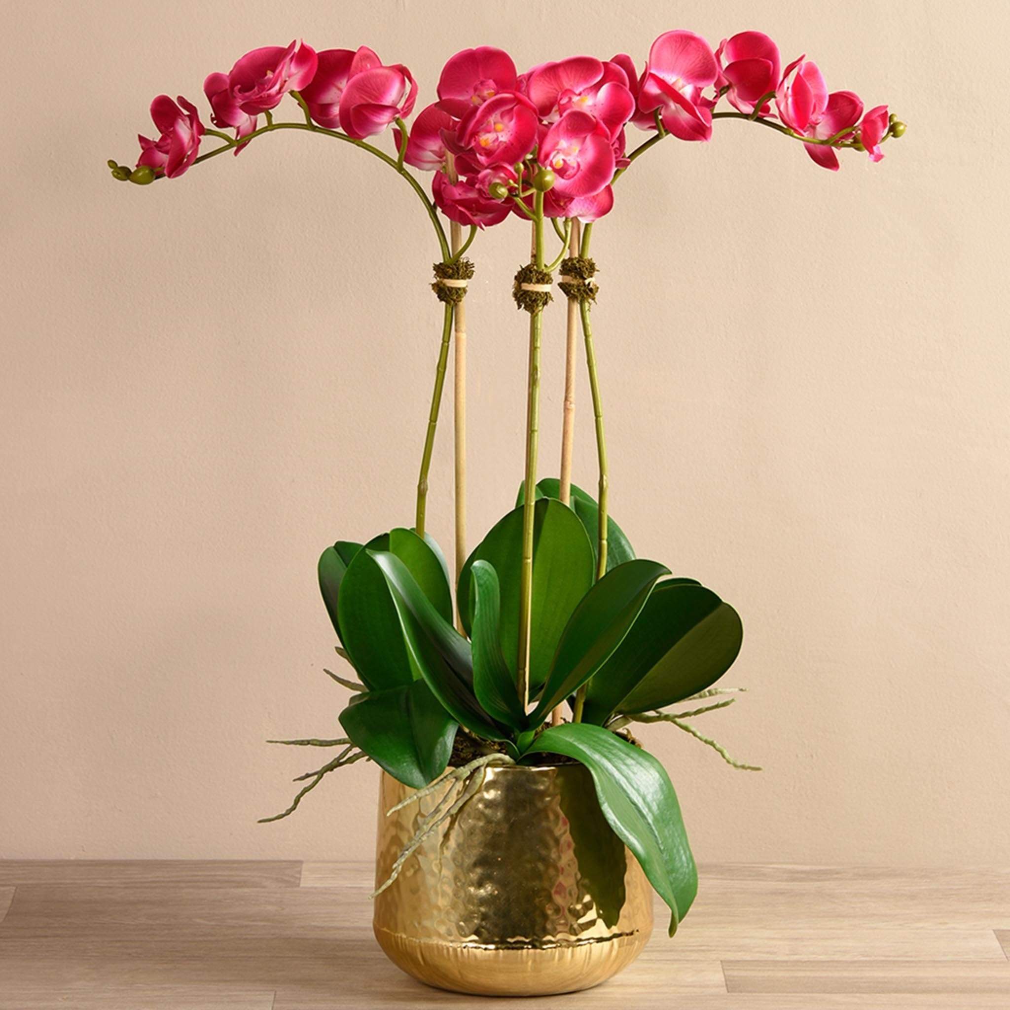 باقة أوركيد باريسية صناعية أنيقة تضيف لمسة فاخرة للديكور.زهور أوركيد حريرية عالية الجودة بمظهر طبيعي.مزهرية سيراميكية بلون ذهبي لافت تخطف الأنظار.مناسبة لتزيين غرفة الاستقبال، طاولة الطعام أو أي ركن في المنزل.تمنح المكان سحرًا وبريقًا دون الحاجة لزهور حقيقية.قليلة الصيانة وتدوم مظهرها دون عناية يومية.