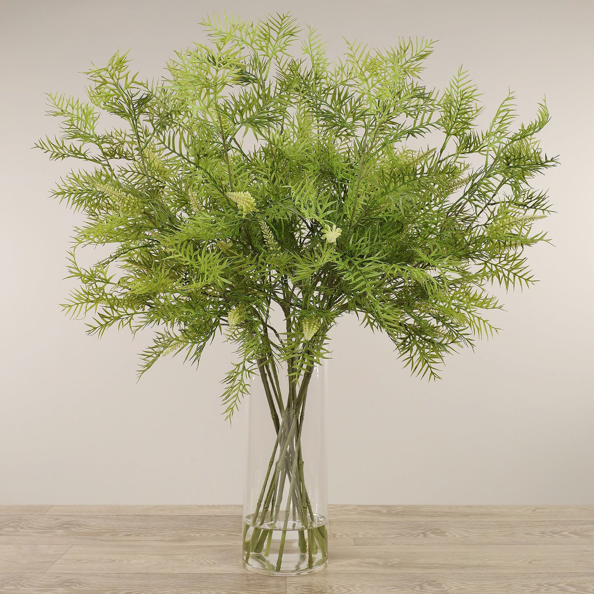 أضف لمسة من الأناقة والنعومة إلى مساحتك مع تنسيق زهور الجريفيليا الاصطناعية في المزهرية الزجاجية.