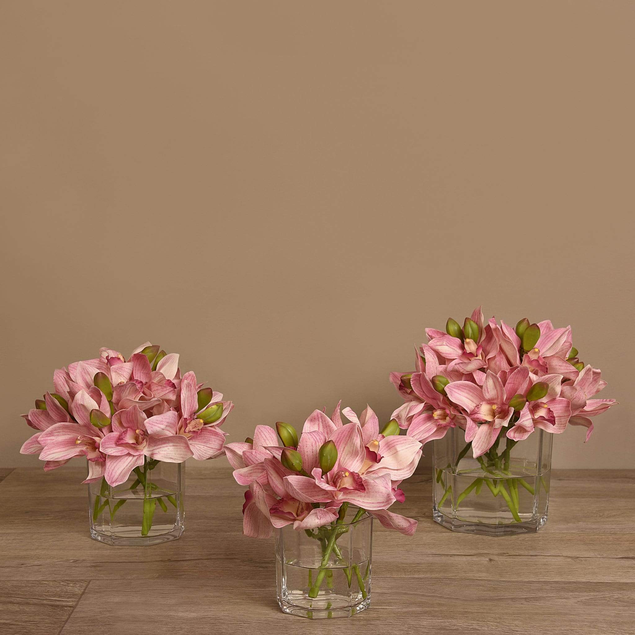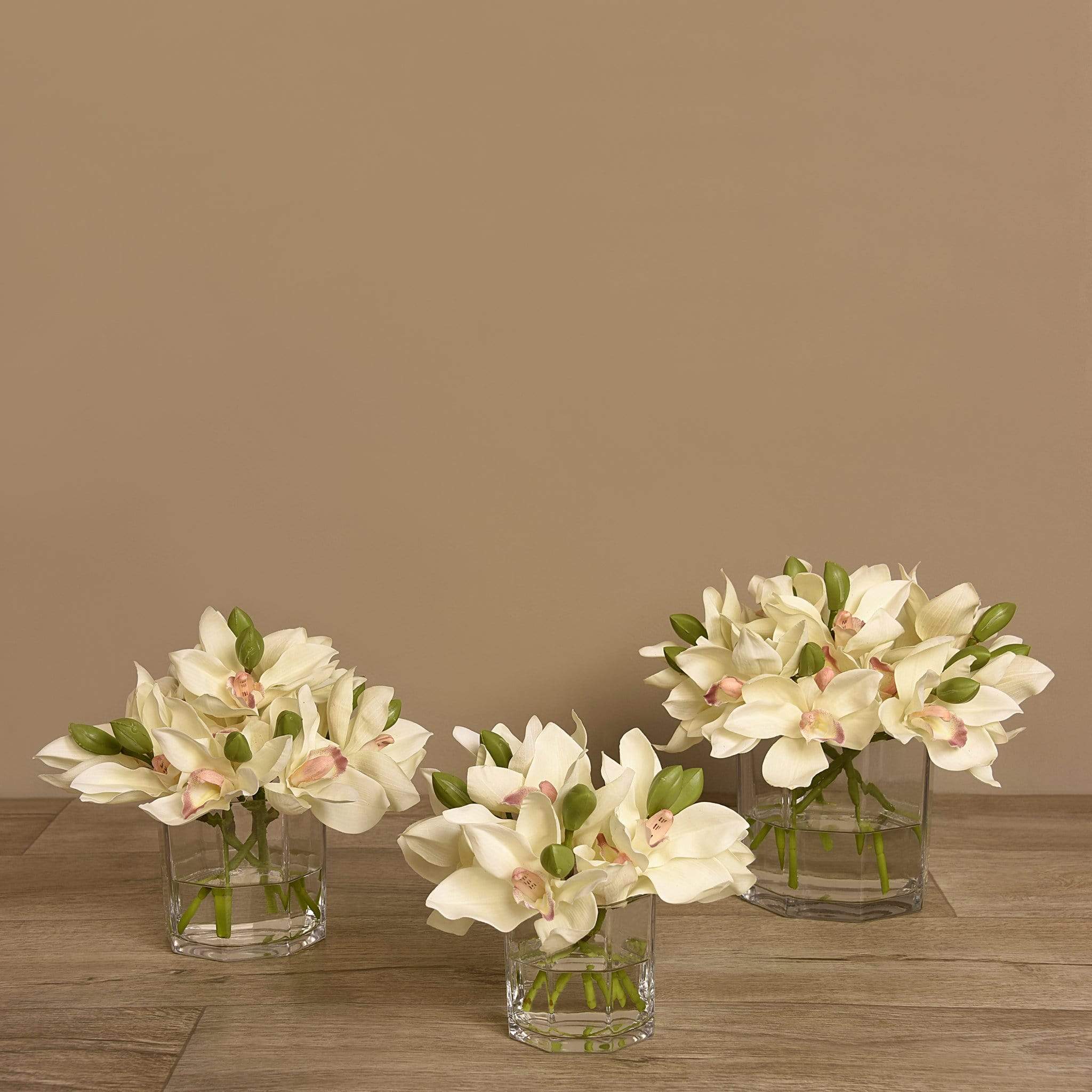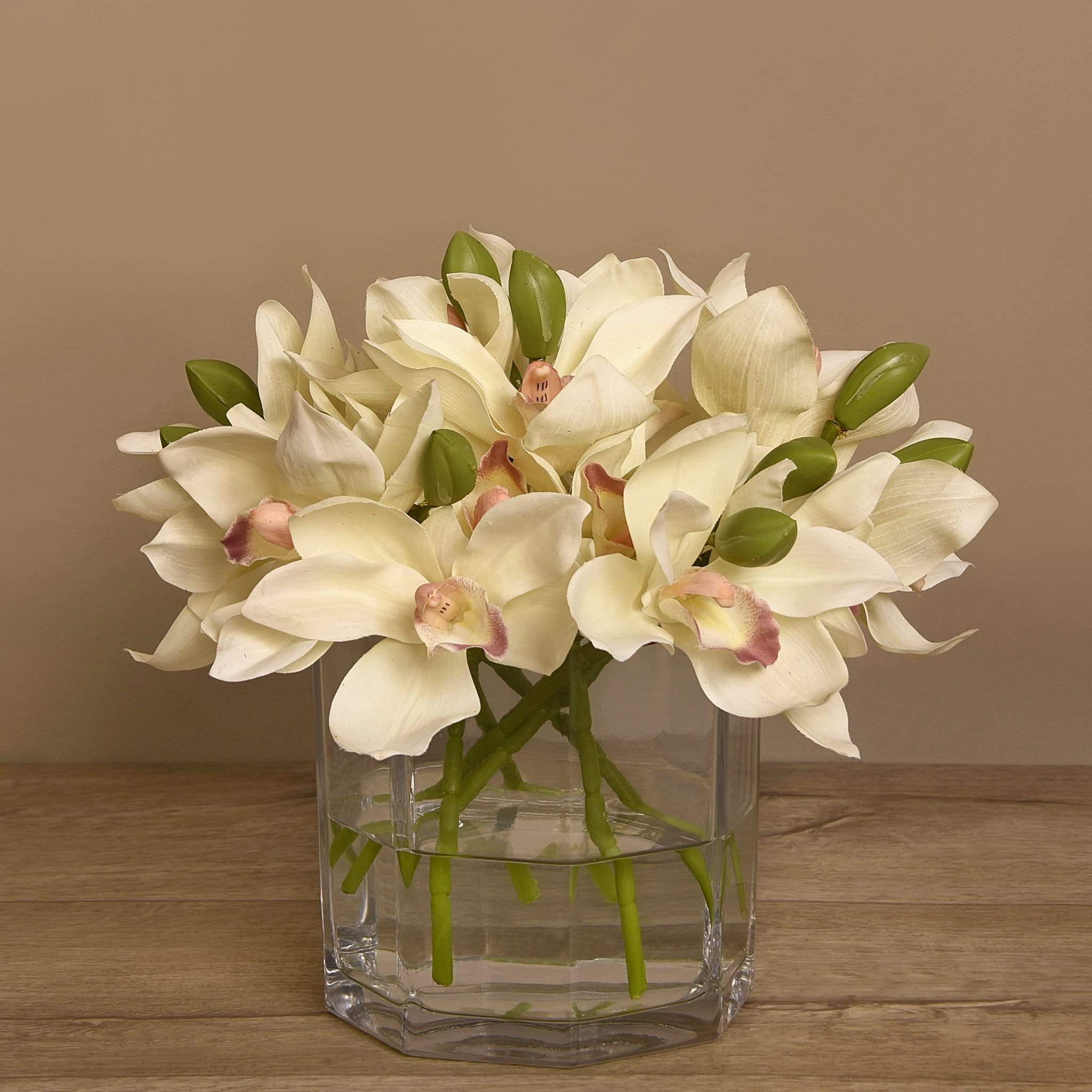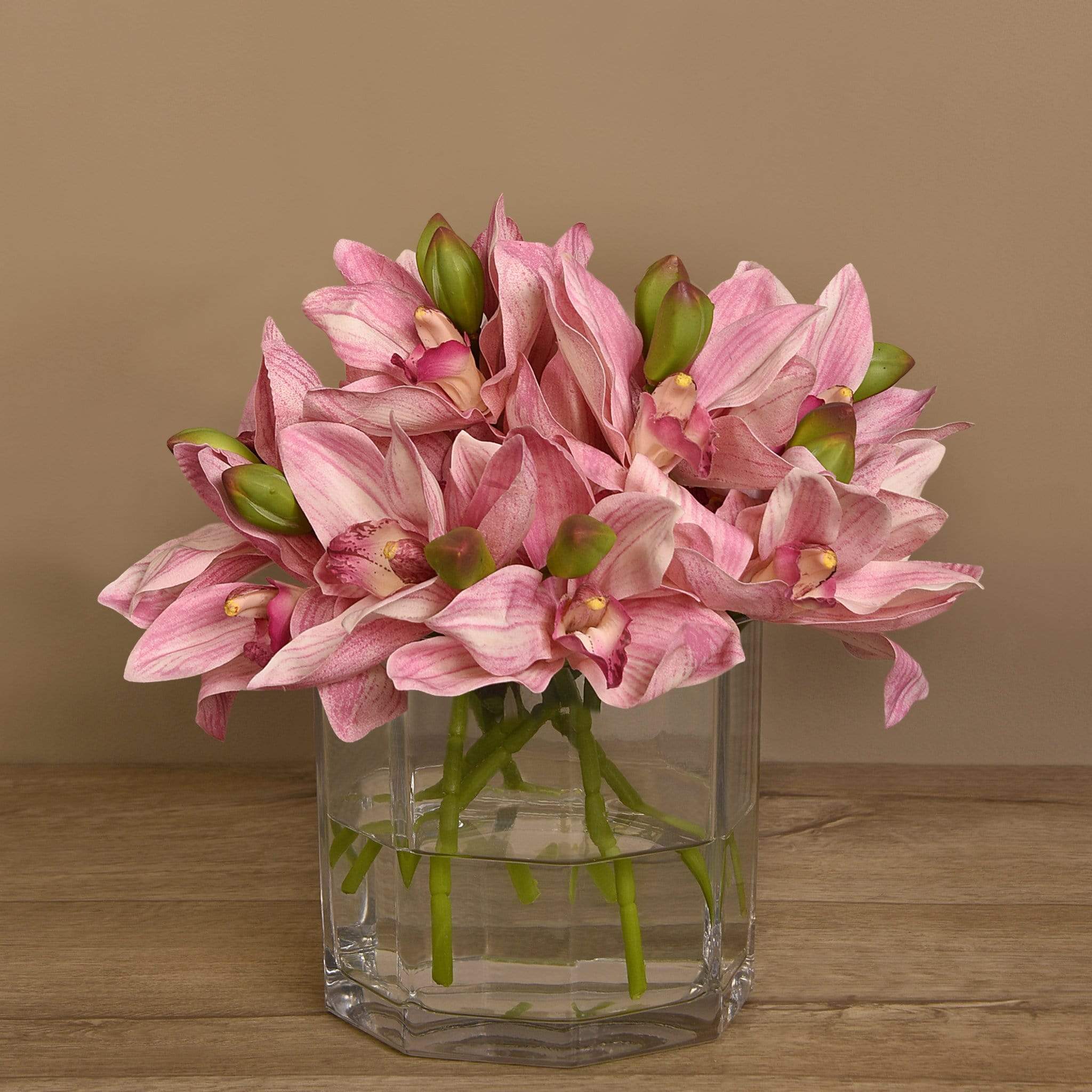 امنح مساحتك لمسة أنيقة وطبيعية مع باقة زهور سيمبيديوم الاصطناعية المعروضة في مزهرية زجاجية شفافة. تبدو هذه الزهور كما لو كانت حقيقية بفضل التفاصيل الدقيقة والألوان المتناسقة، لكنها تظل خالية من عناء العناية اليوميّة.