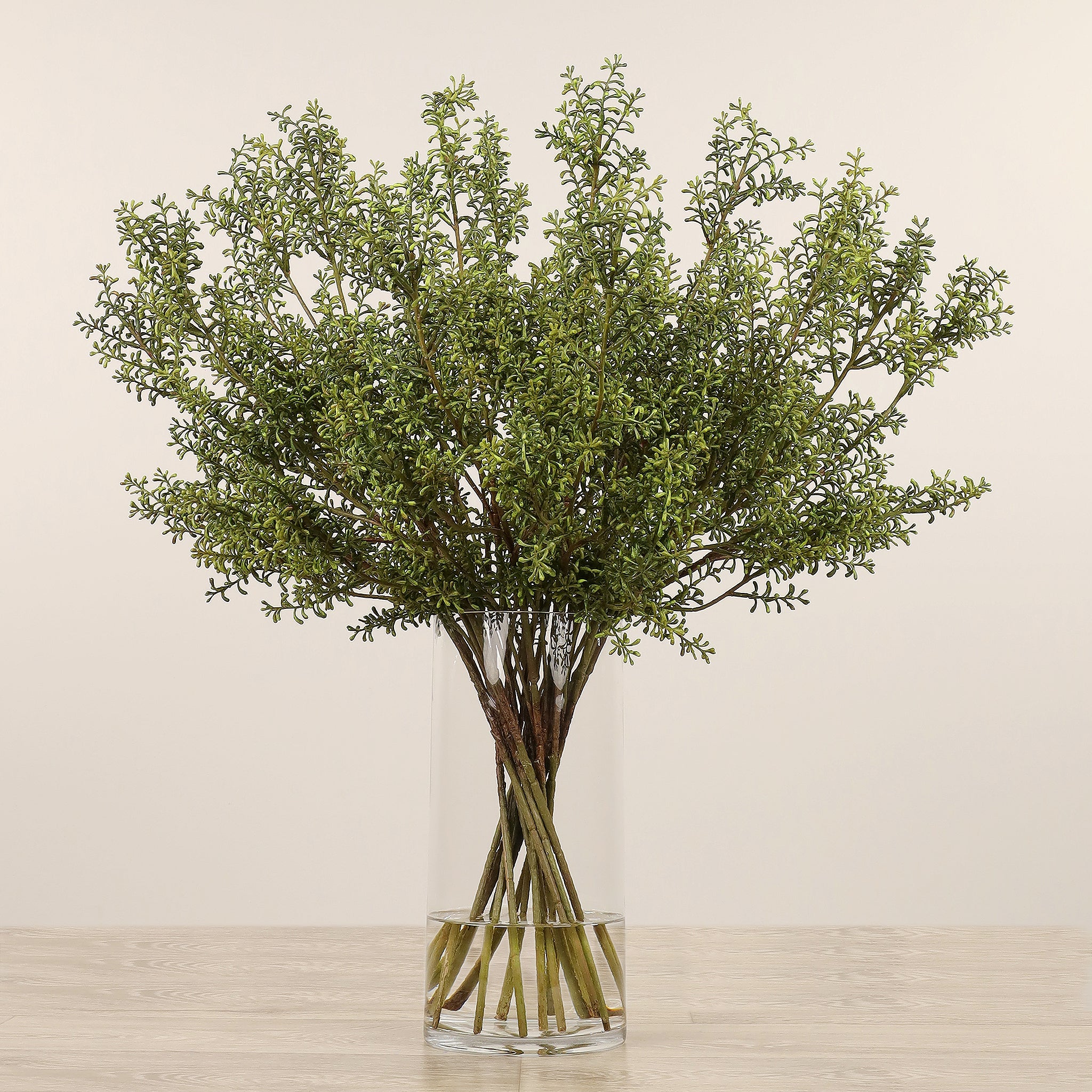امنح مساحاتك لمسة من الأناقة الطبيعية بلا عناء مع تنسيق زهور السيدوم الصناعي المصمم بعناية داخل مزهرية زجاجية شفافة.