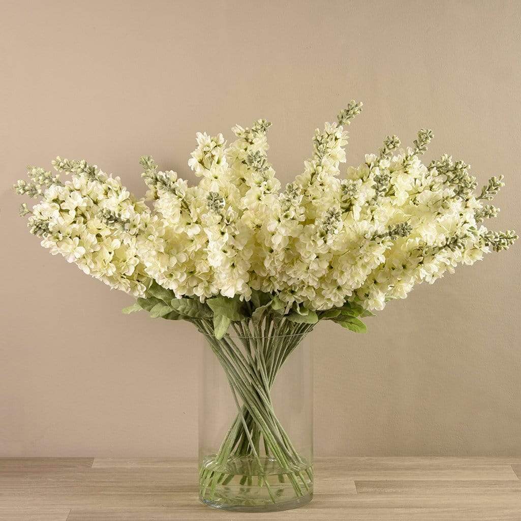 زهور دلفينيون صناعية في مزهرية زجاجية