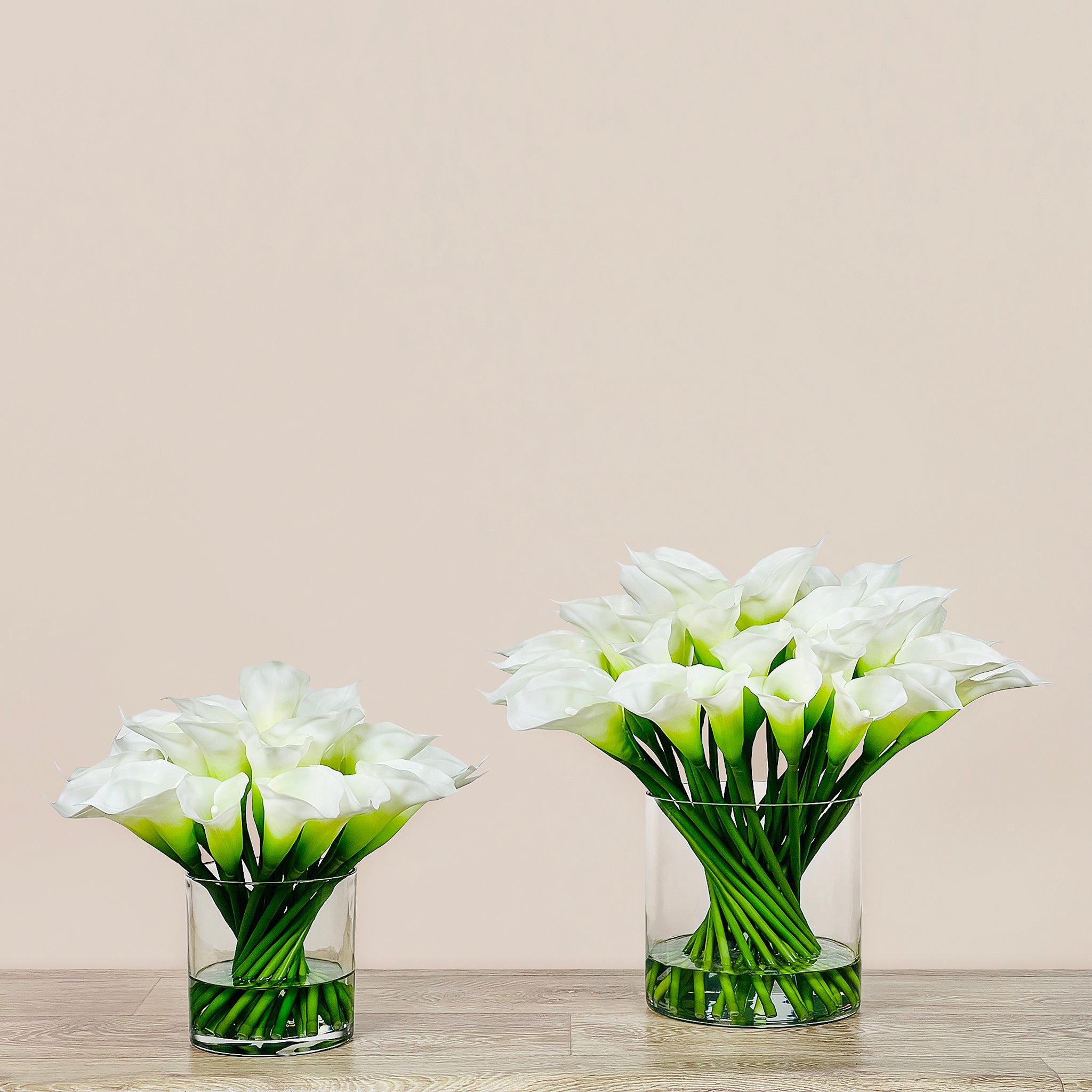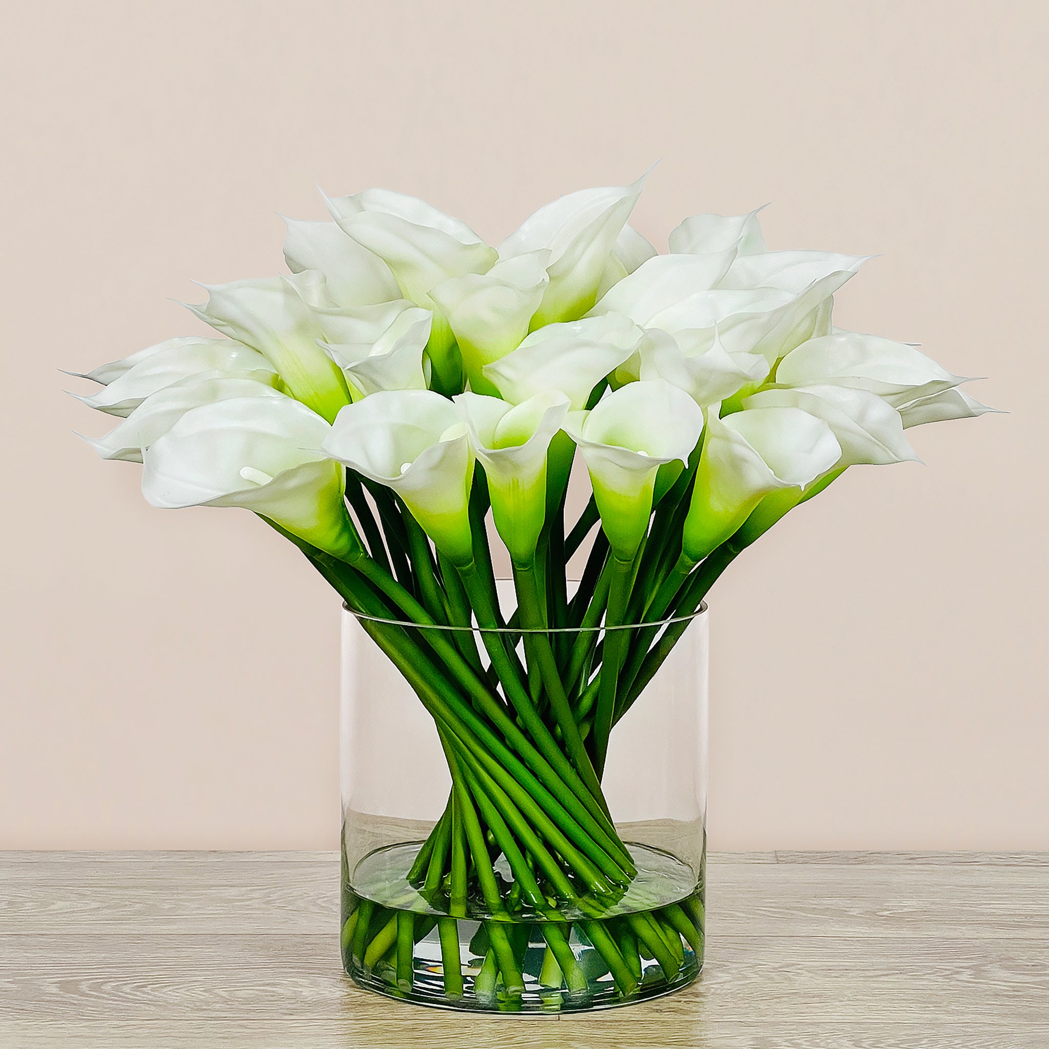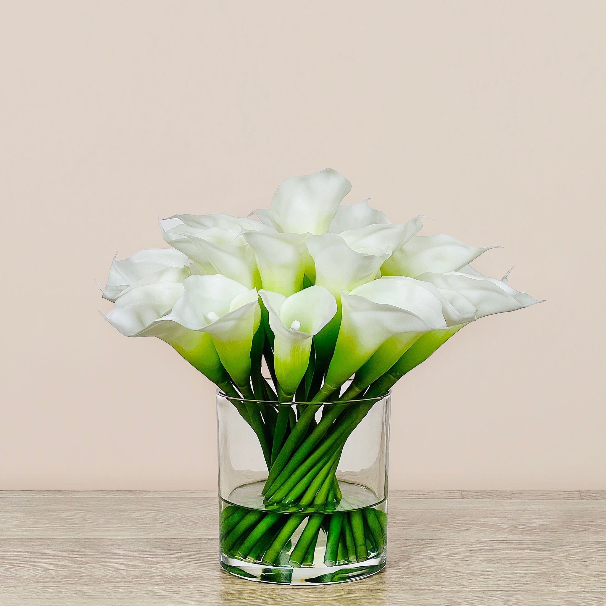 أضف لمسة من الأناقة الفورية إلى مساحتك مع هذا التنسيق الجاهز من زهور الكالا الاصطناعية.