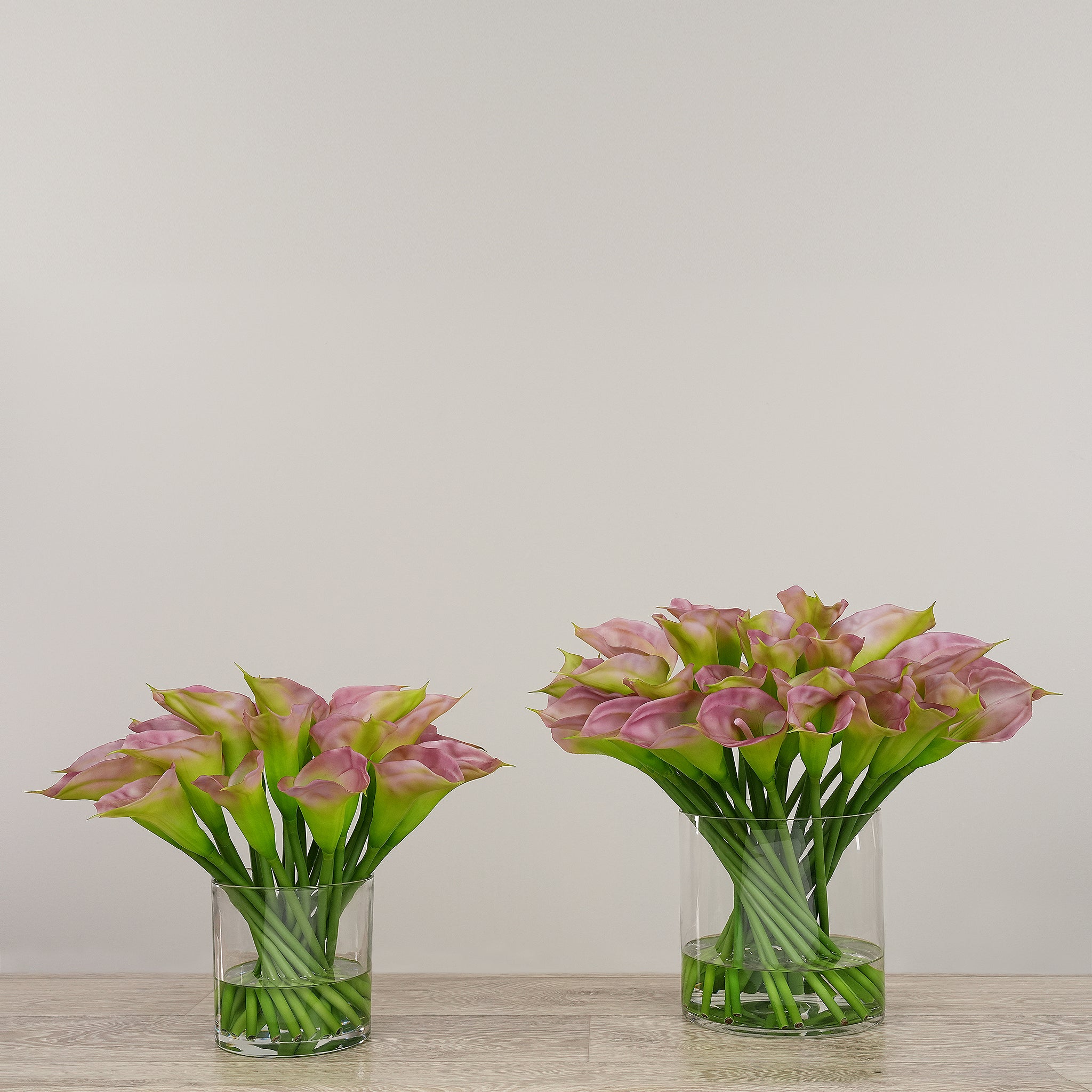 تنسيق زهور الكالا الاصطناعية في مزهرية زجاجية
