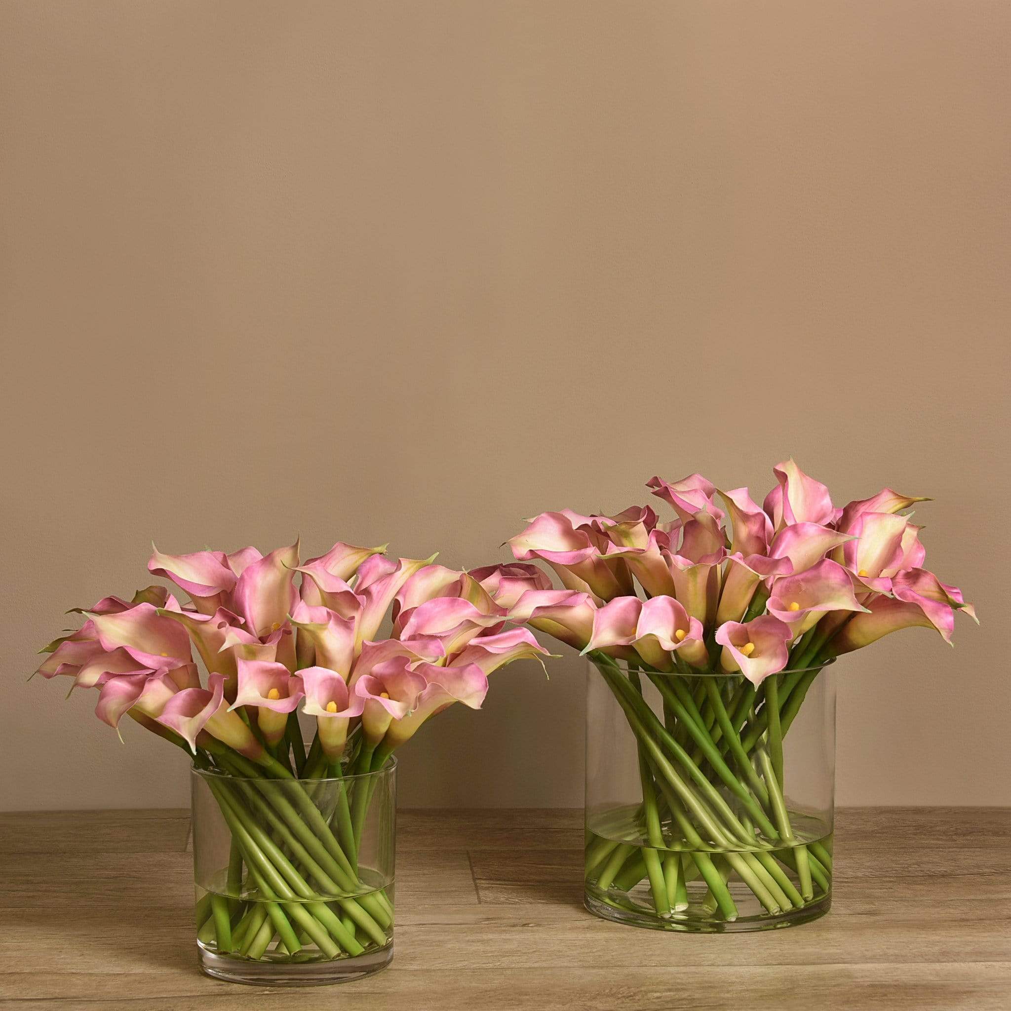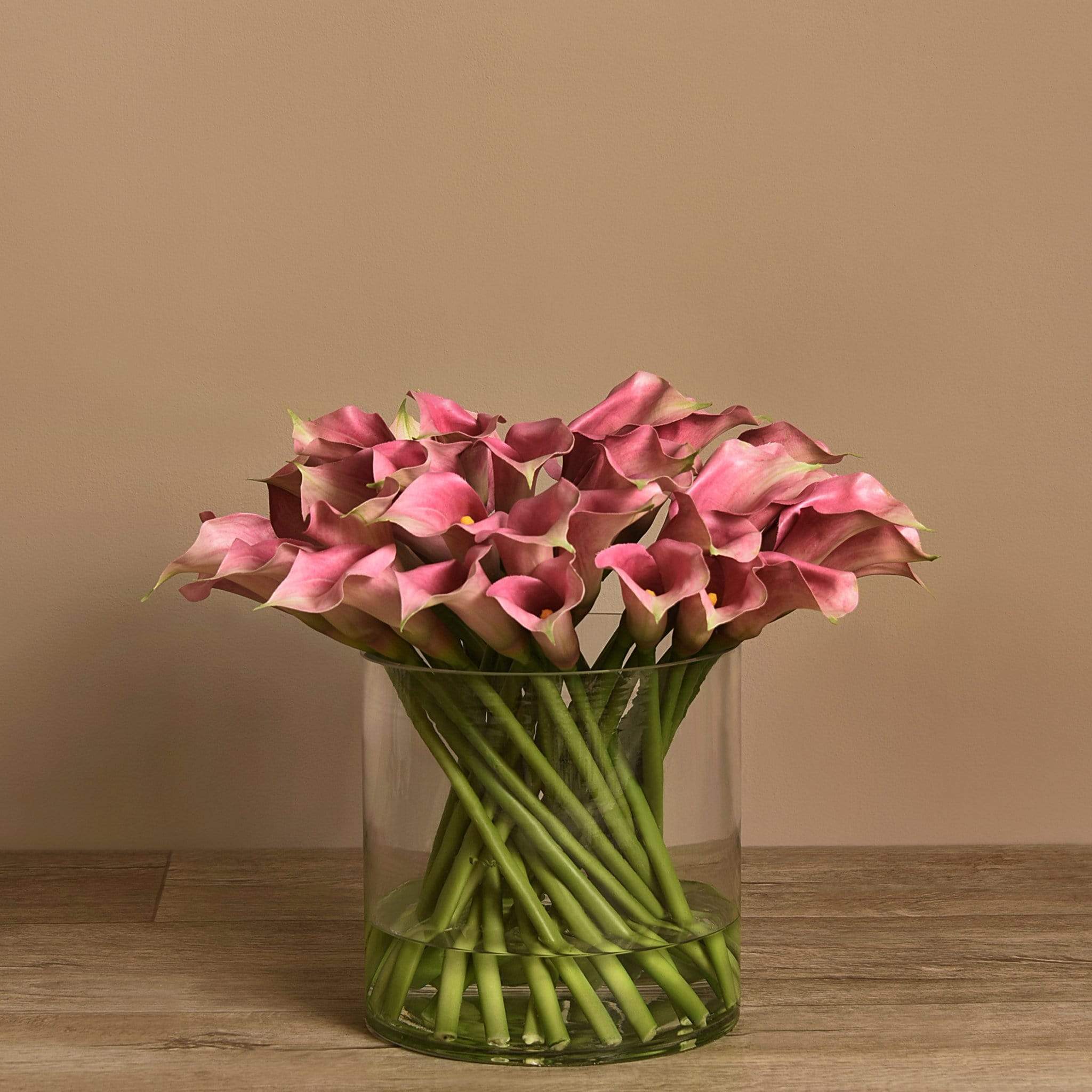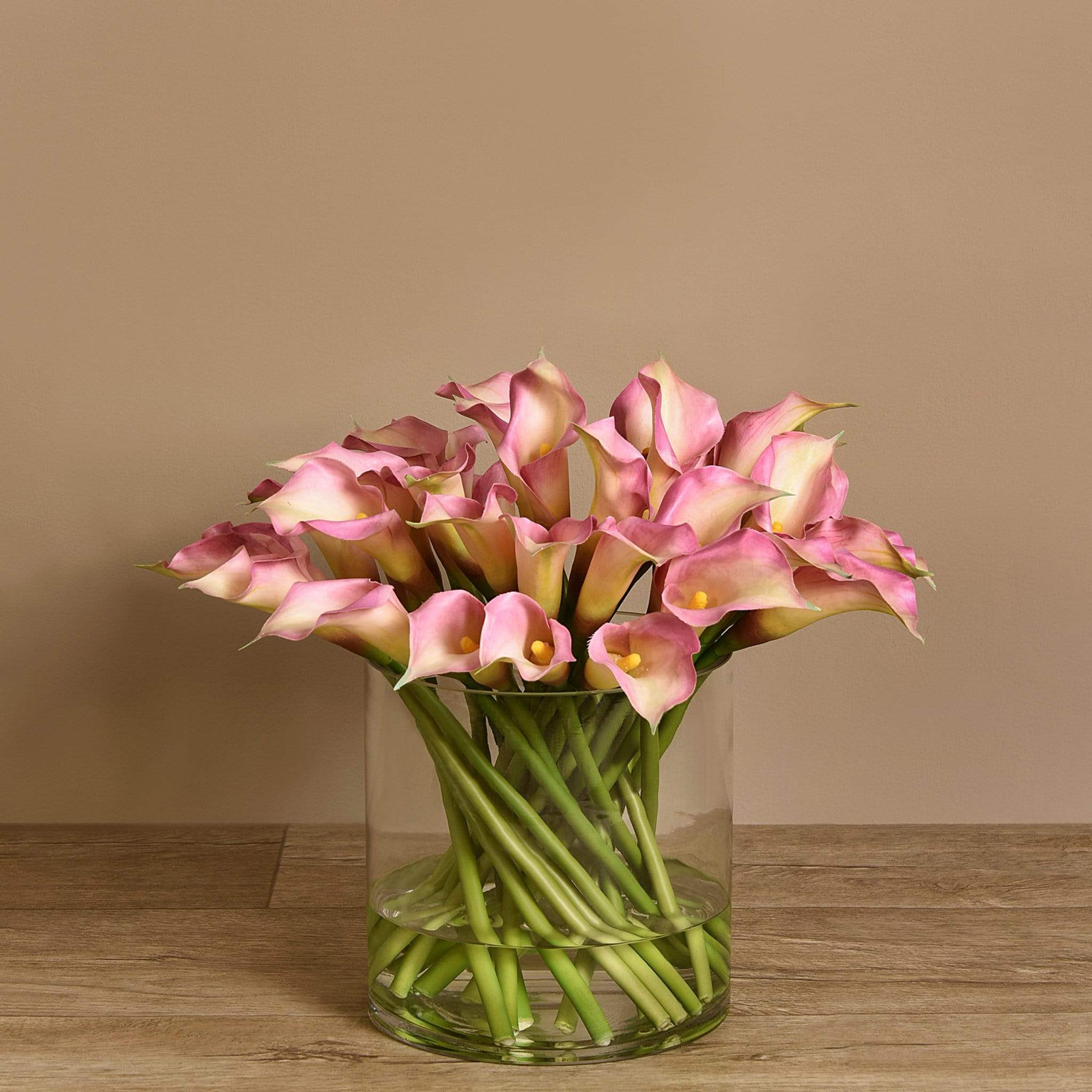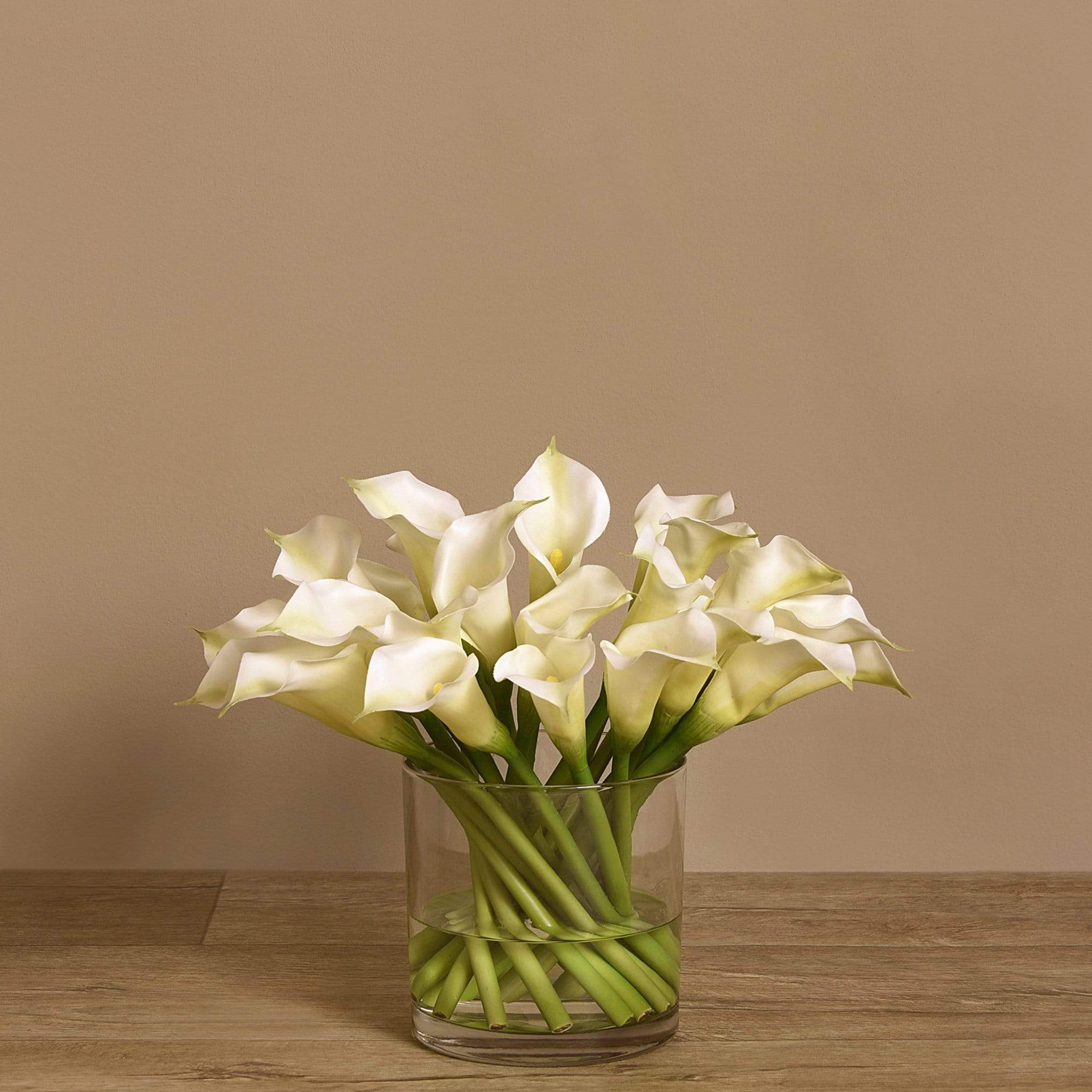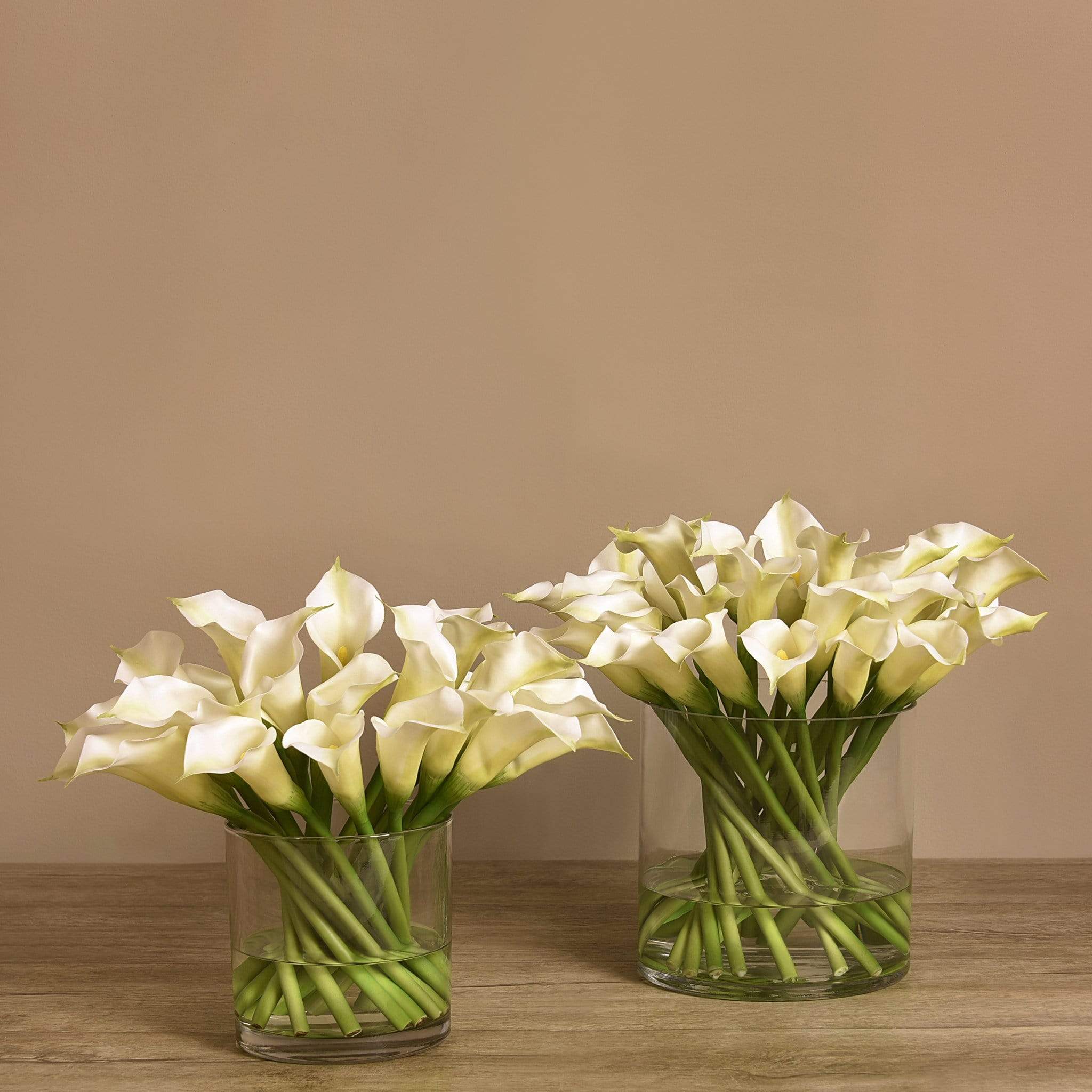 زهور كالا الاصطناعية هذه تجسد روح البعث والحياة، وتشكّل لمسة أنيقة وممتدة بمرور الفصول لمنزلك. مصممة لتبدو واقعية تماماً، وقد رتّبها خبراؤنا بعناية في مزهرية زجاجية رقيقة تزيدها فخامة ورُقي.